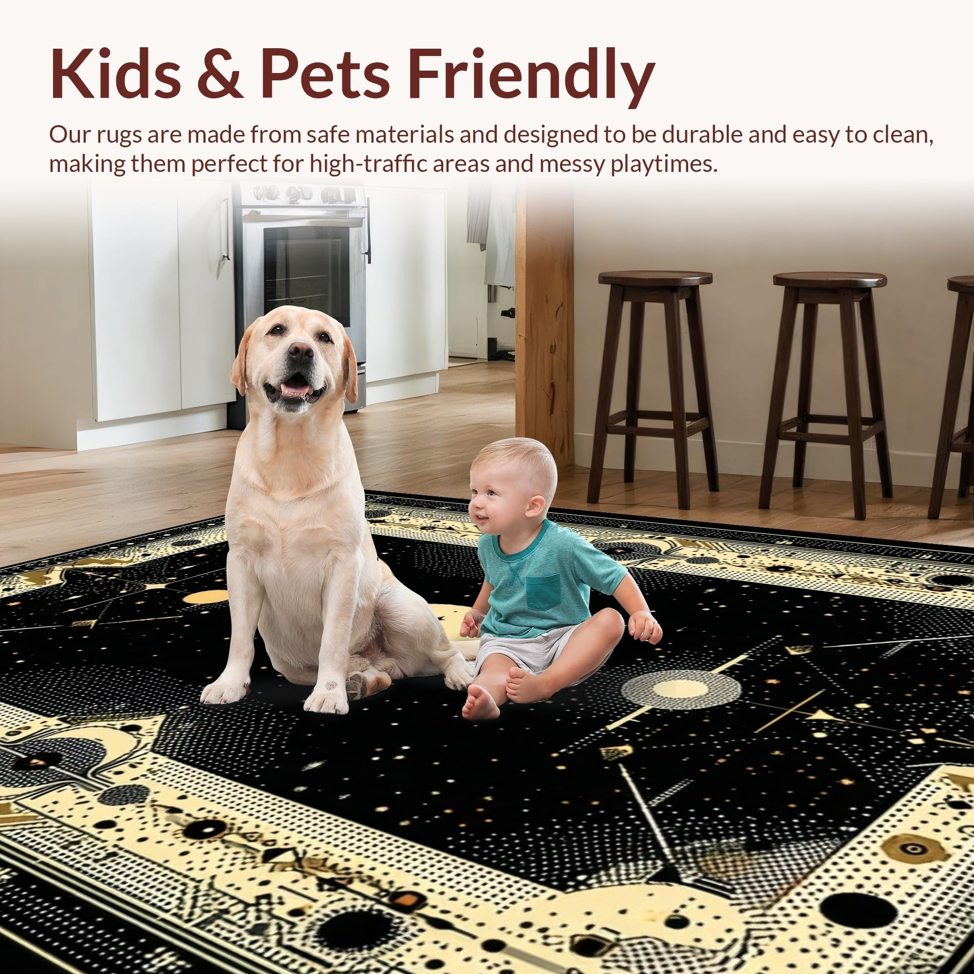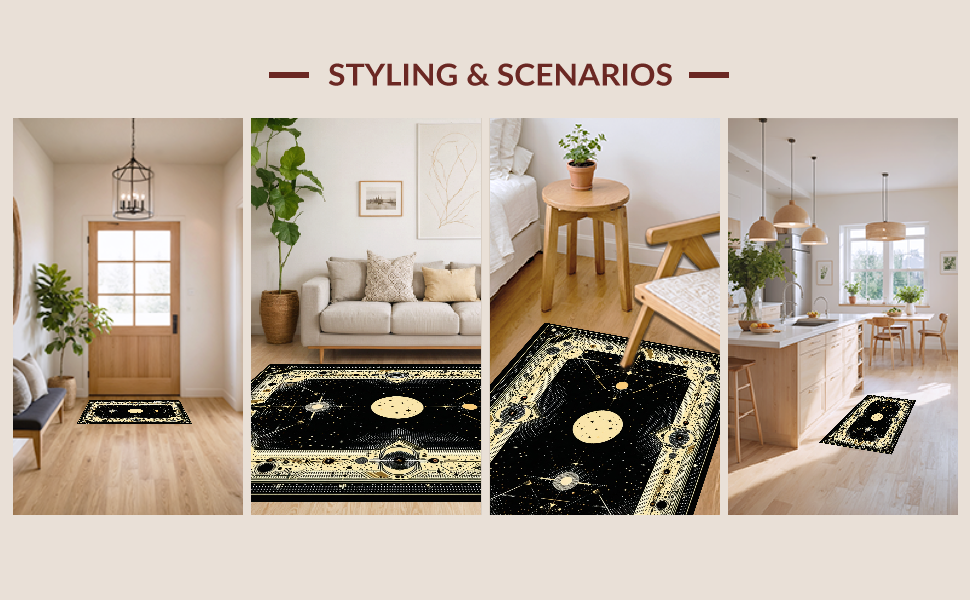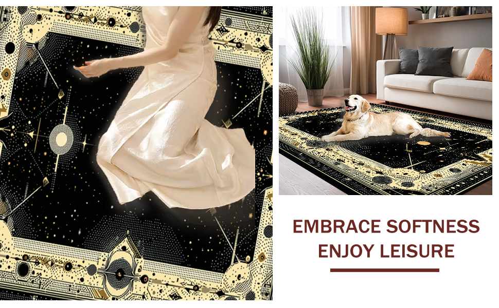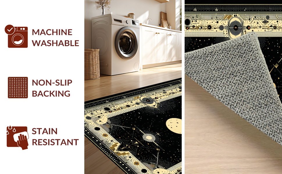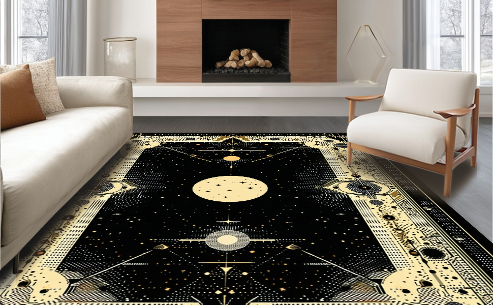 Ultra Soft Area Rug, Non Slip, Stain Resistant, Washable Area Rugs for Living Room, Bedroom, Contemporary Ethereal Patterned Runner(Black) Overview:
