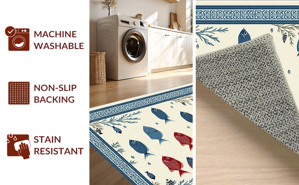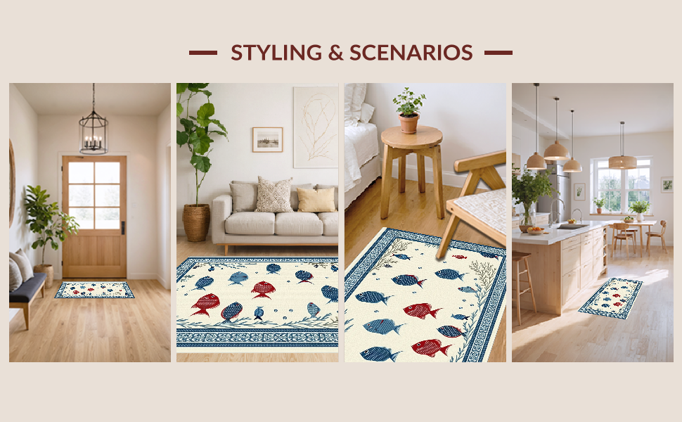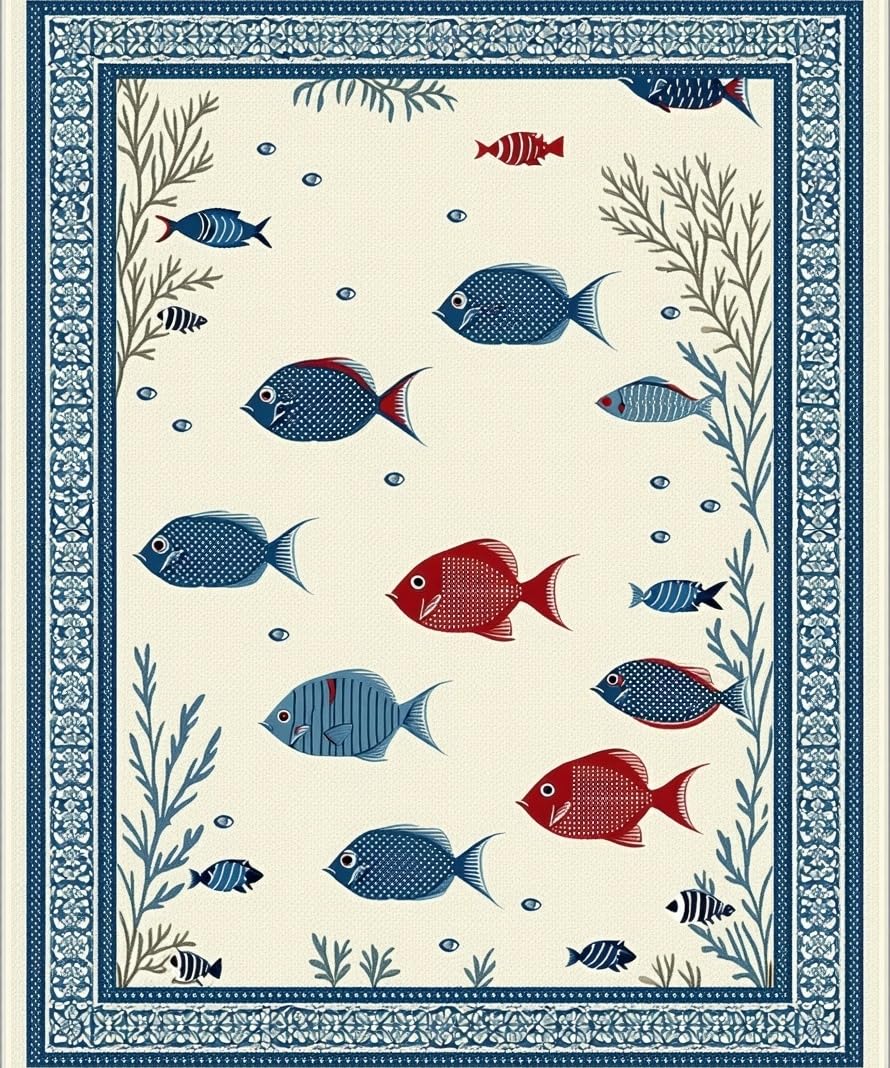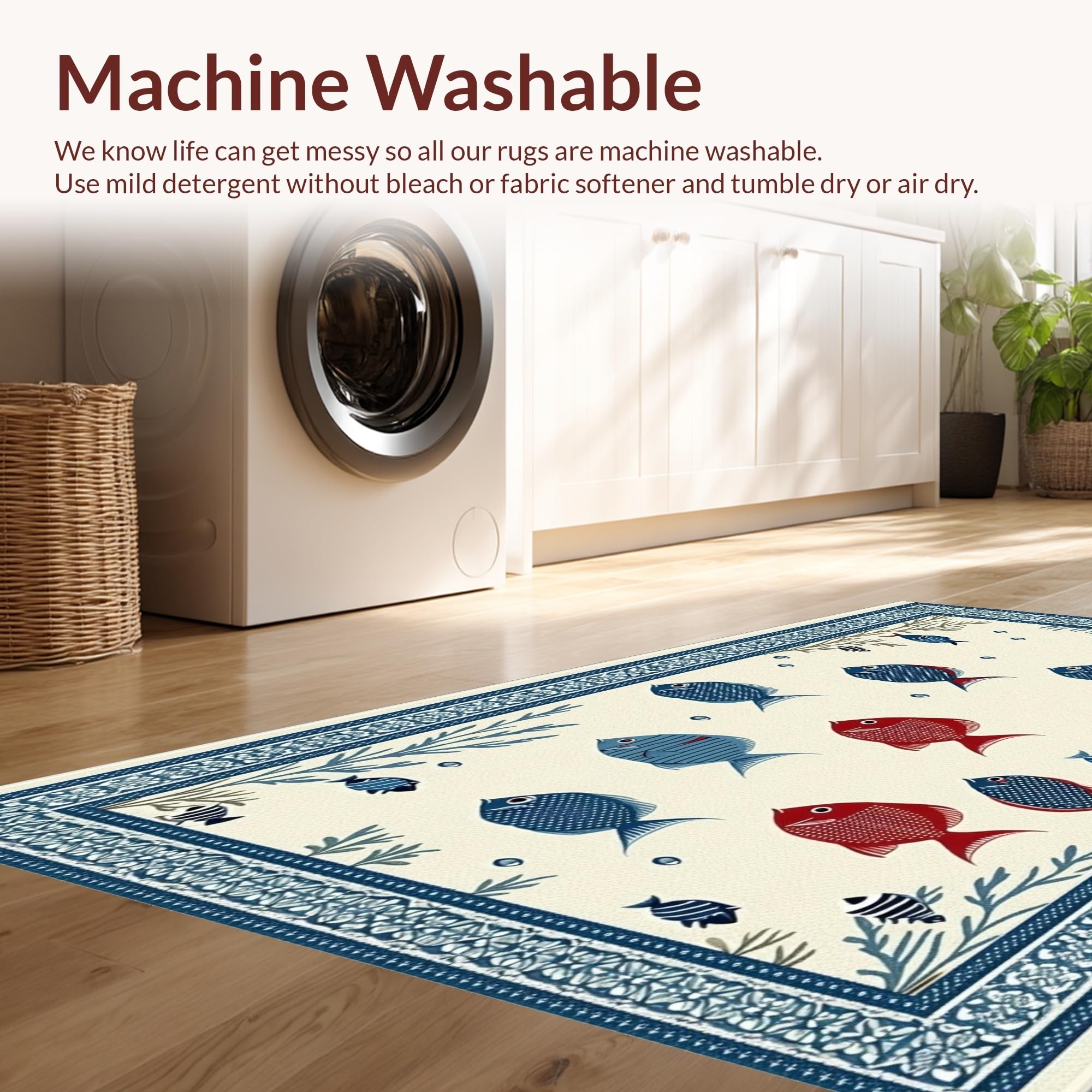 Ultra Soft Area Rug, Non Slip, Stain Resistant, Washable Area Rugs for Living Room, Bedroom, Contemporary Fish Patterned Statement Piece(Ivory) Overview: