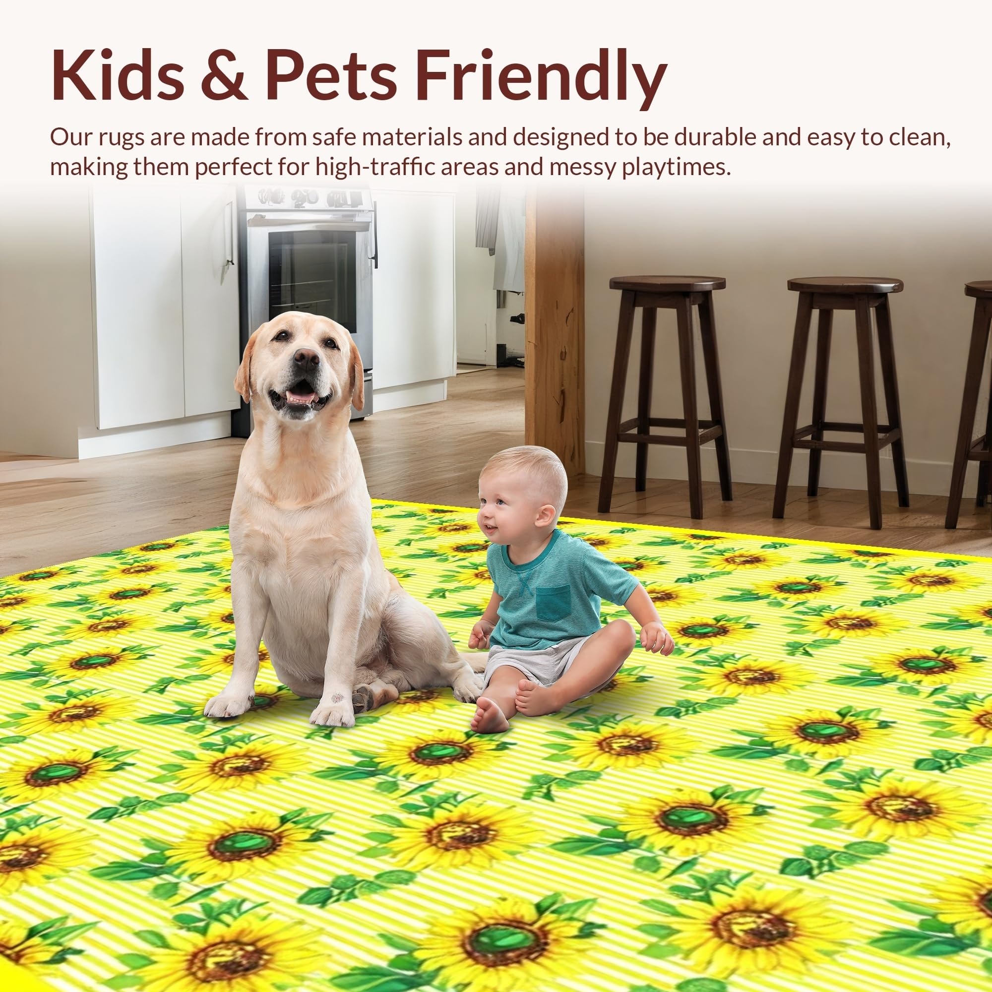 Ultra Soft Area Rug, Non Slip, Stain Resistant, Washable Area Rugs for Living Room, Bedroom, Contemporary Floral Pattern Blend(Yellow) Overview: