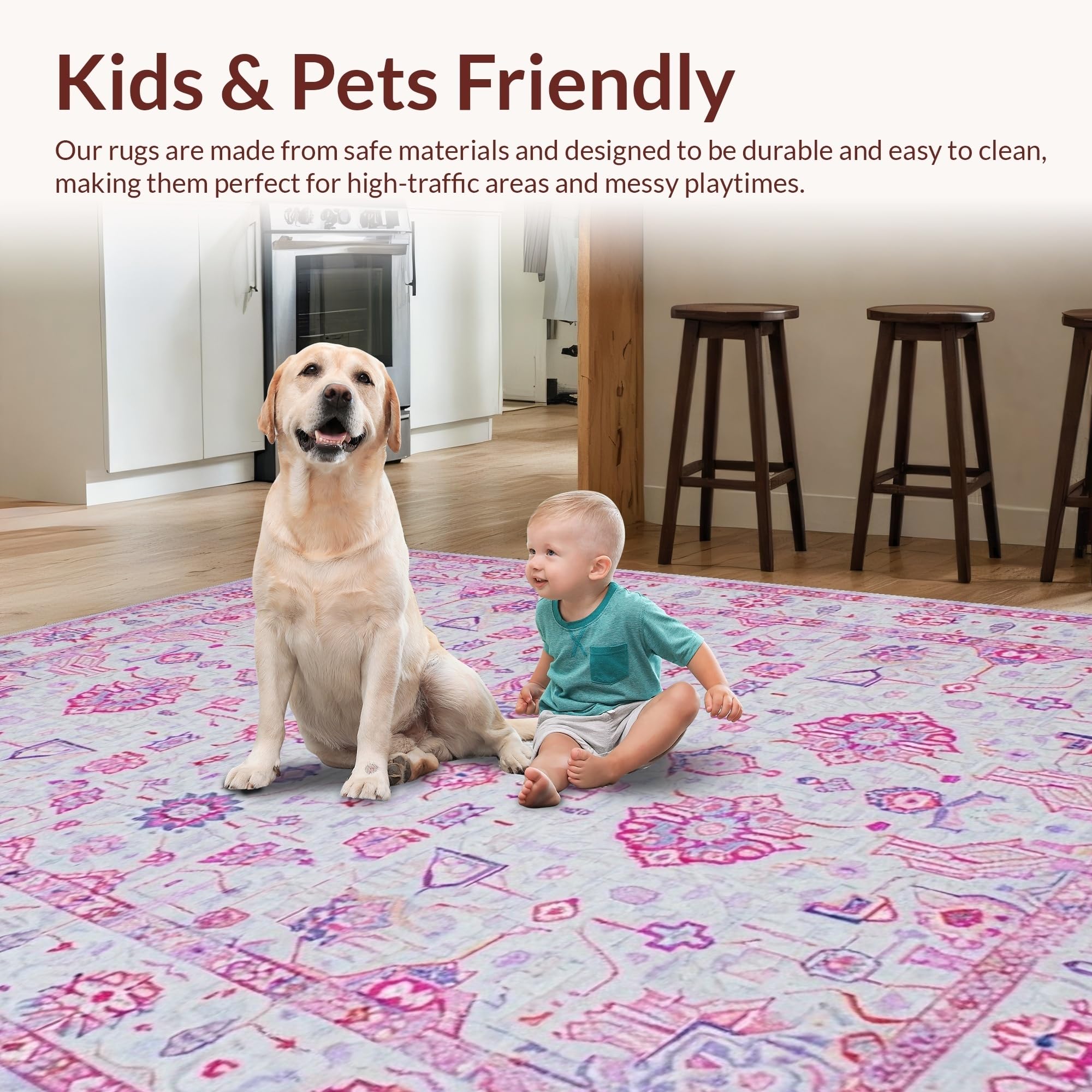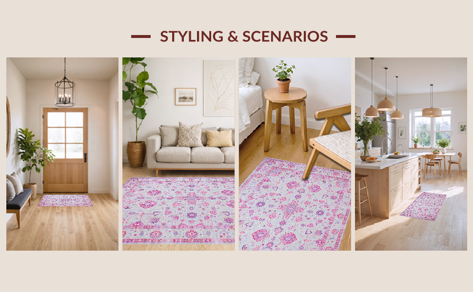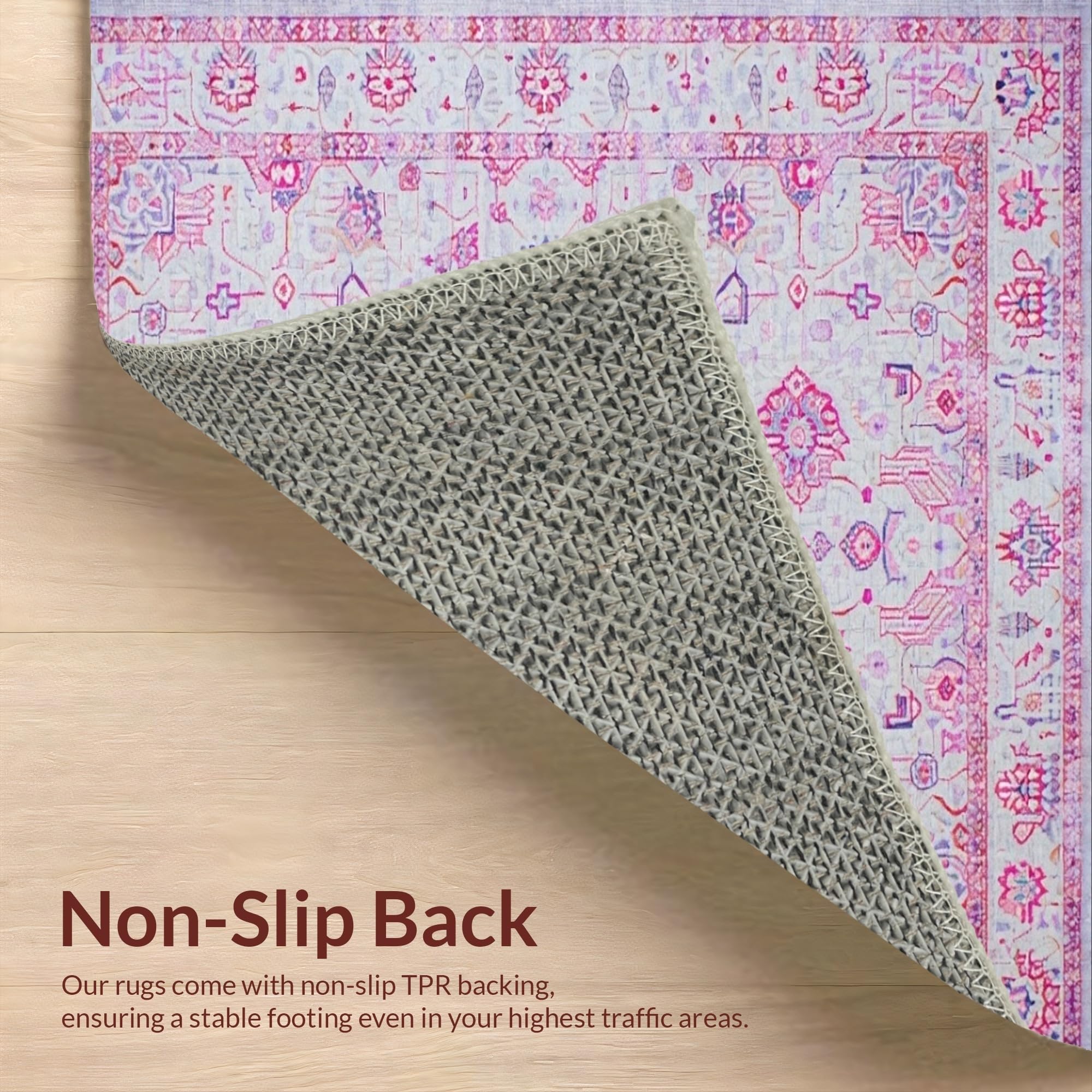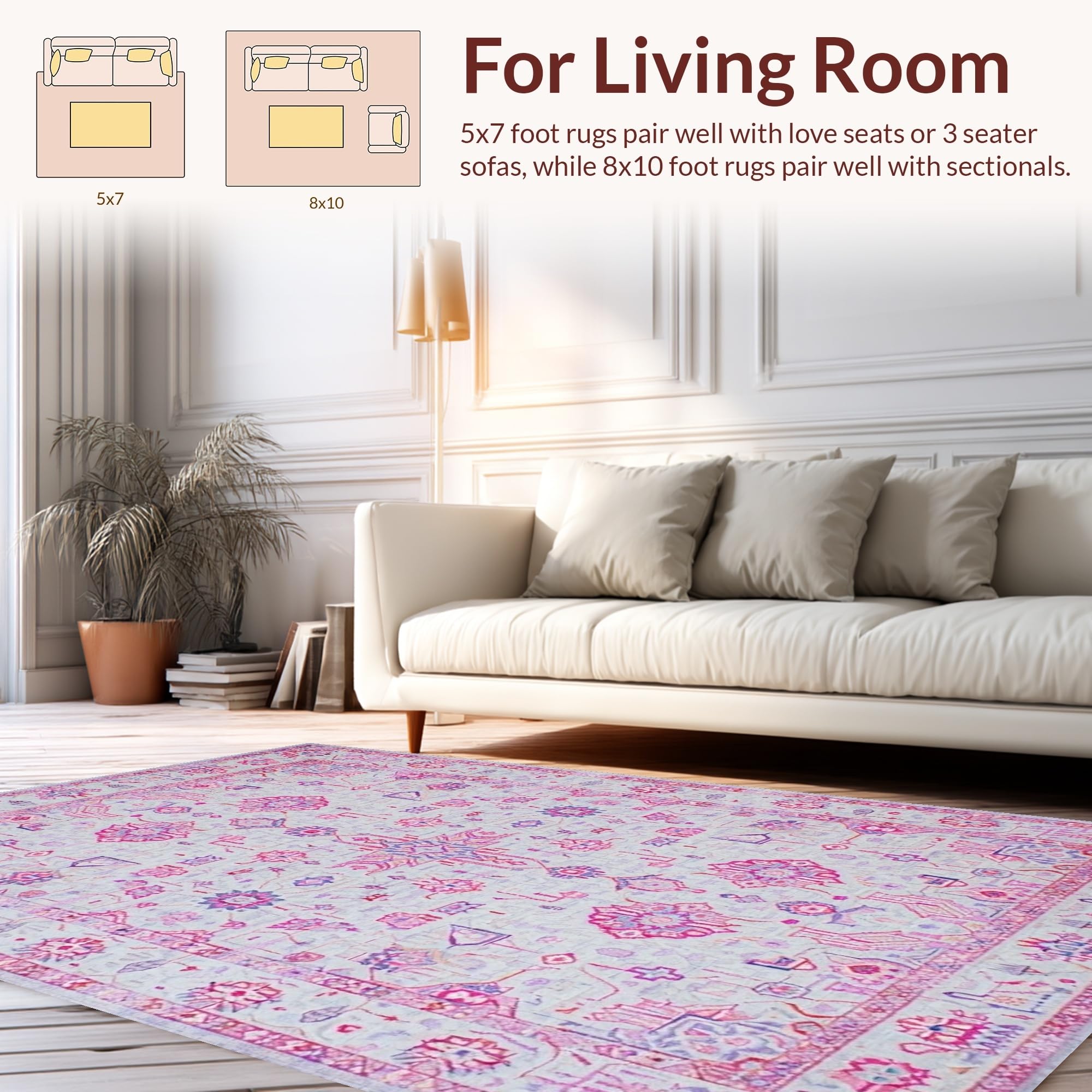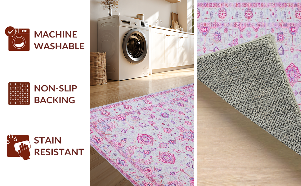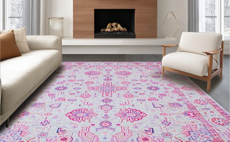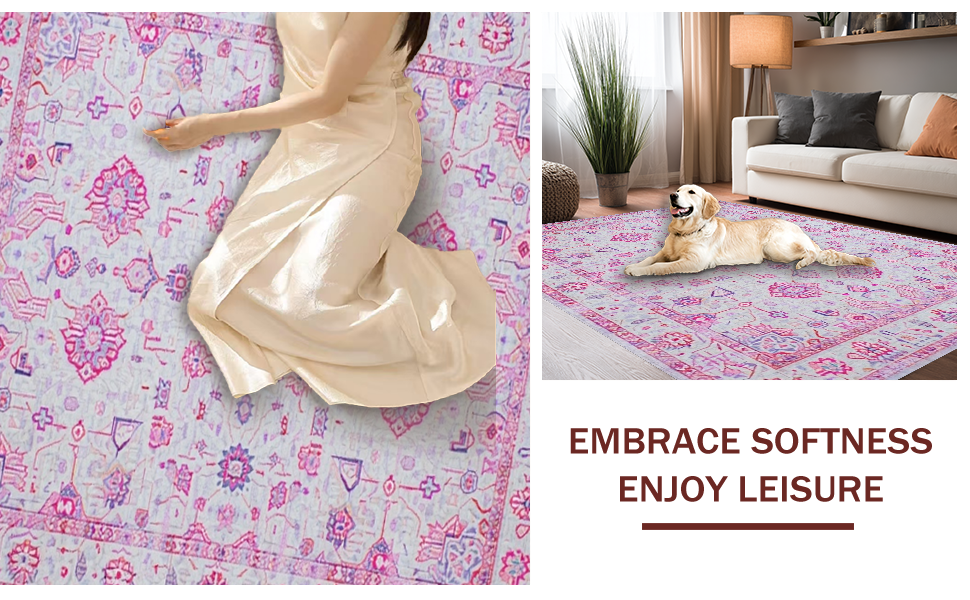 Ultra Soft Area Rug, Non Slip, Stain Resistant, Washable Area Rugs for Living Room, Bedroom, Contemporary Floral Symphony(Pink) Overview: