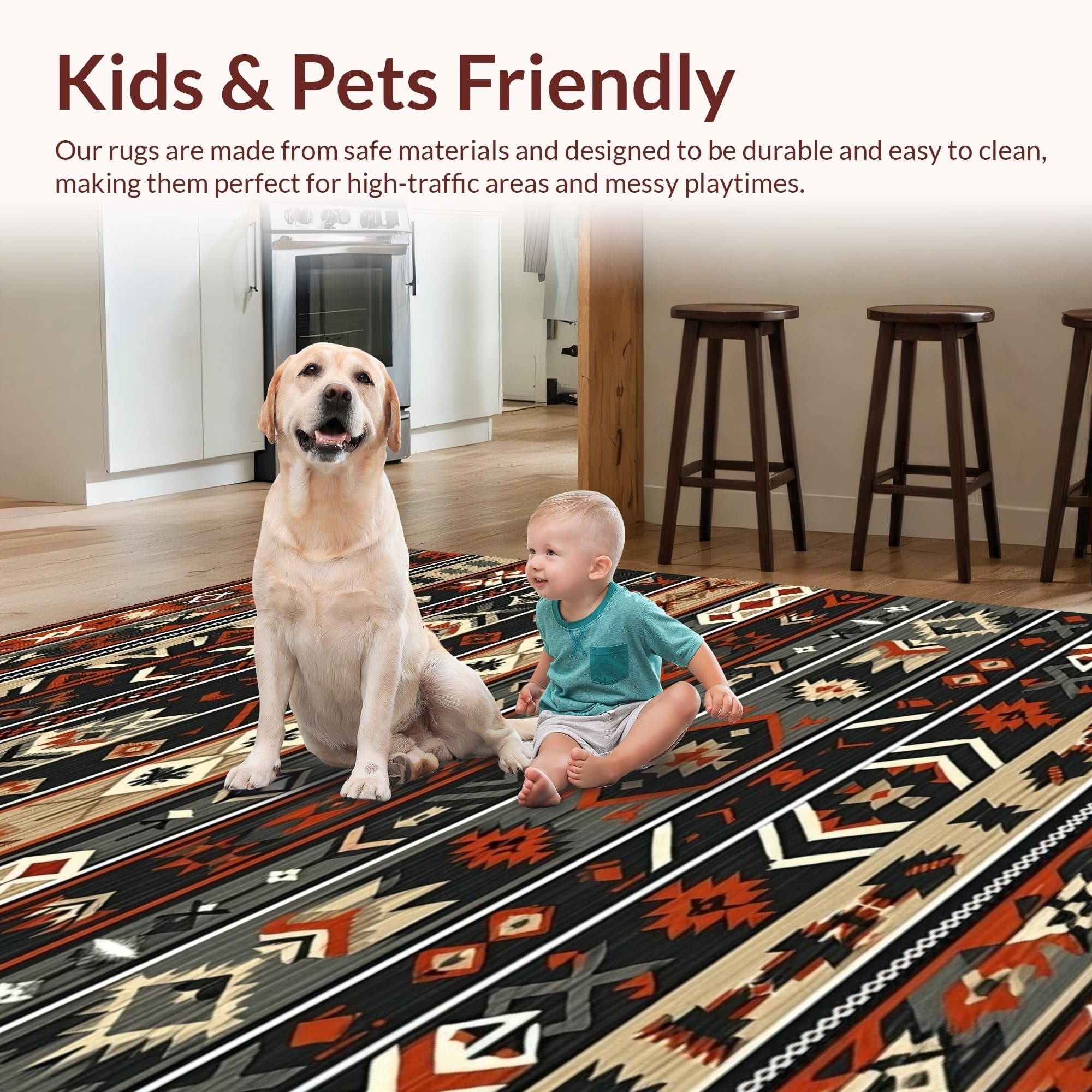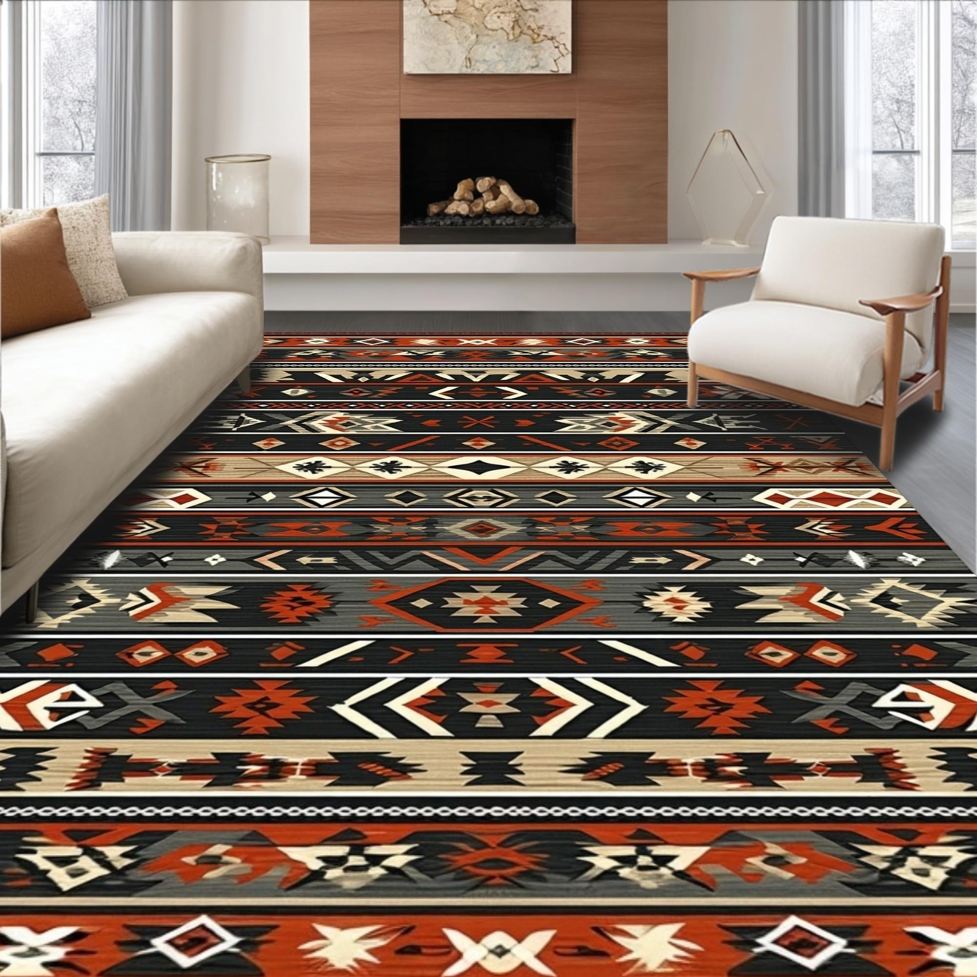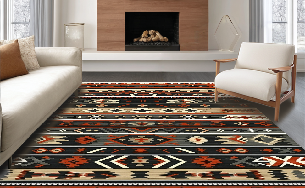 Ultra Soft Area Rug, Non Slip, Stain Resistant, Washable Area Rugs for Living Room, Bedroom, Contemporary Geometric Tiled Arrangement(Black) Overview: