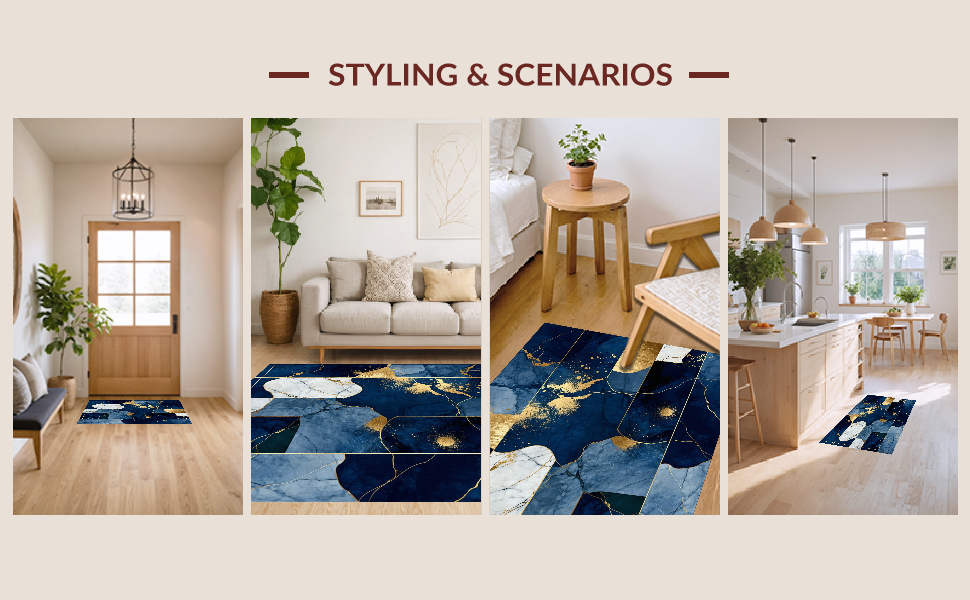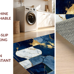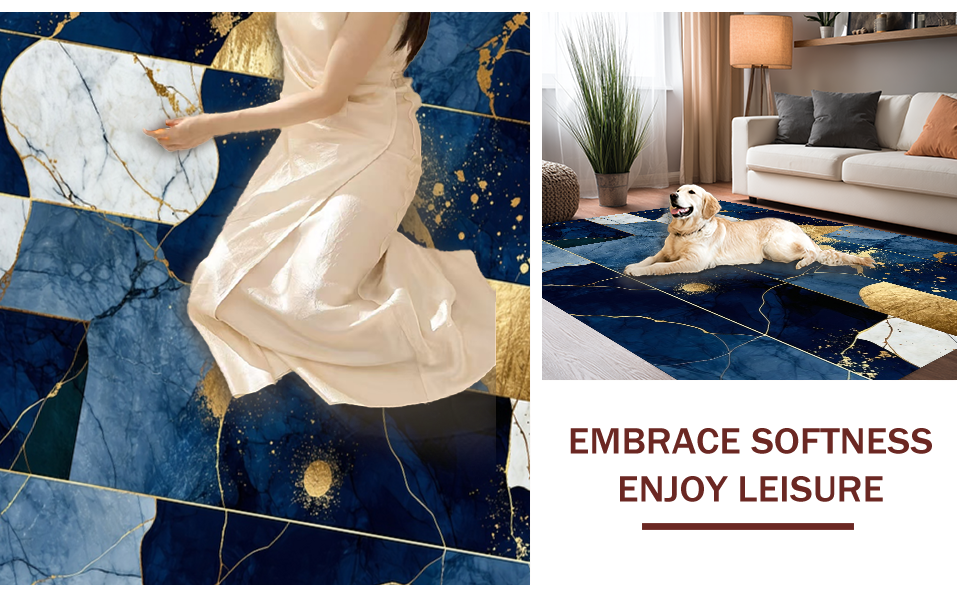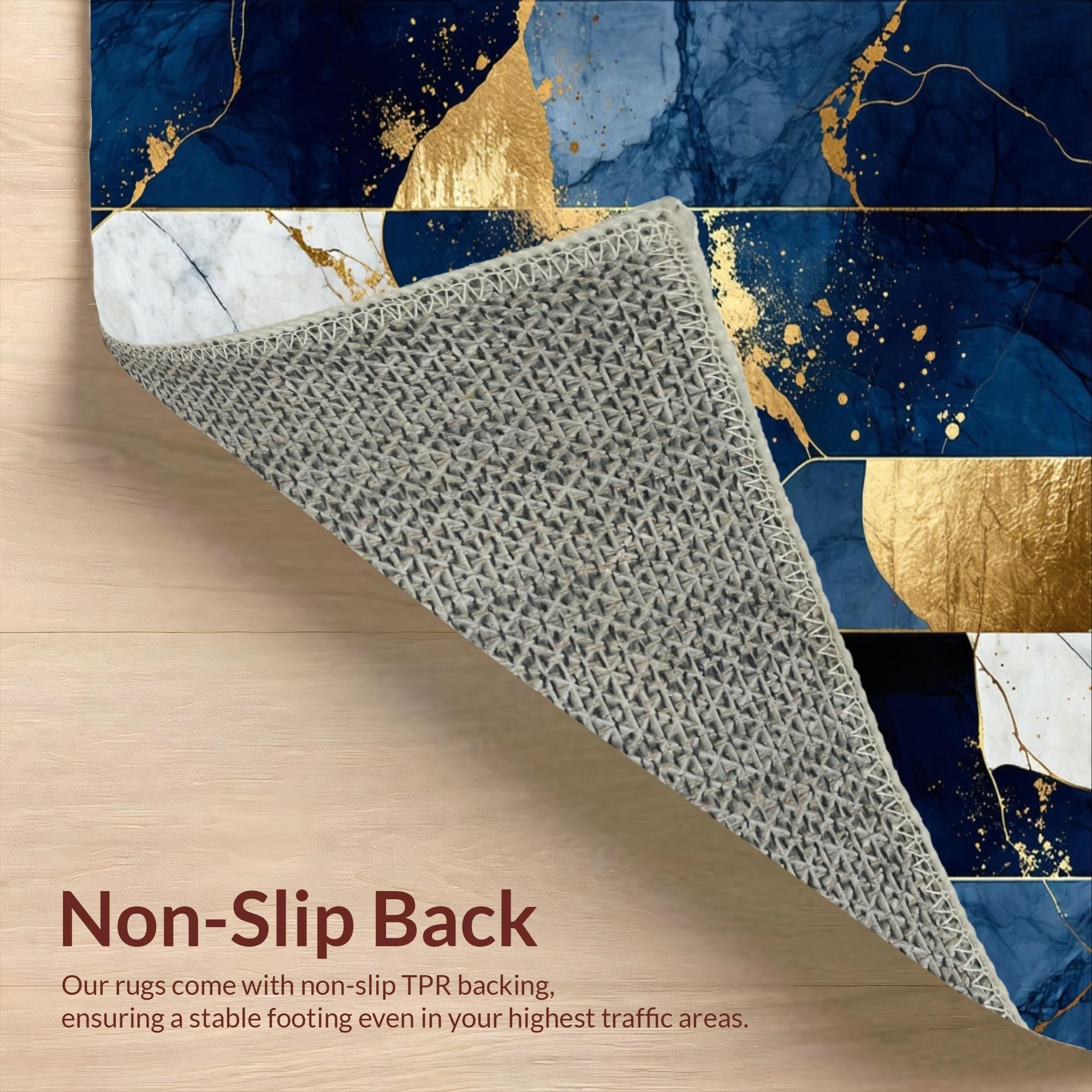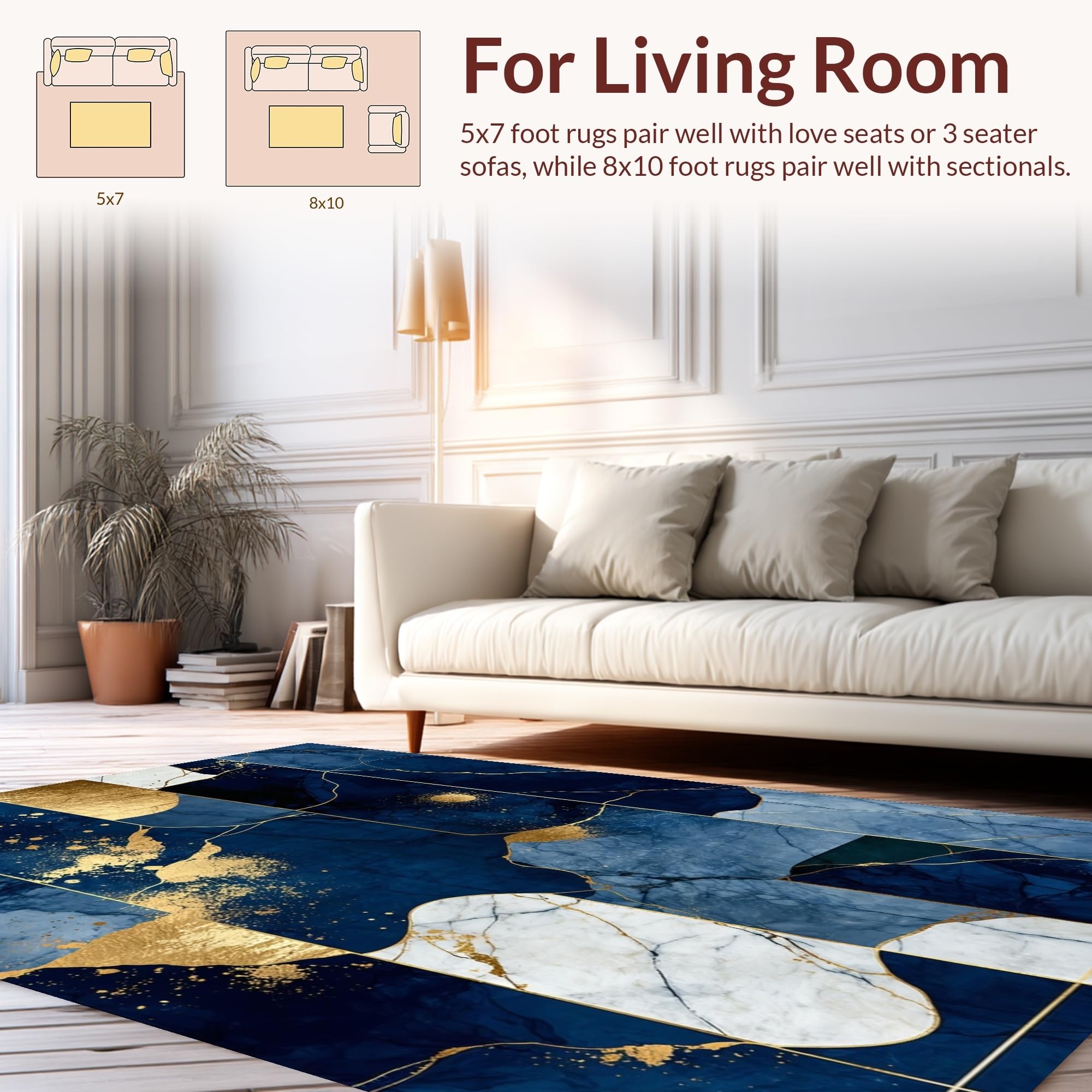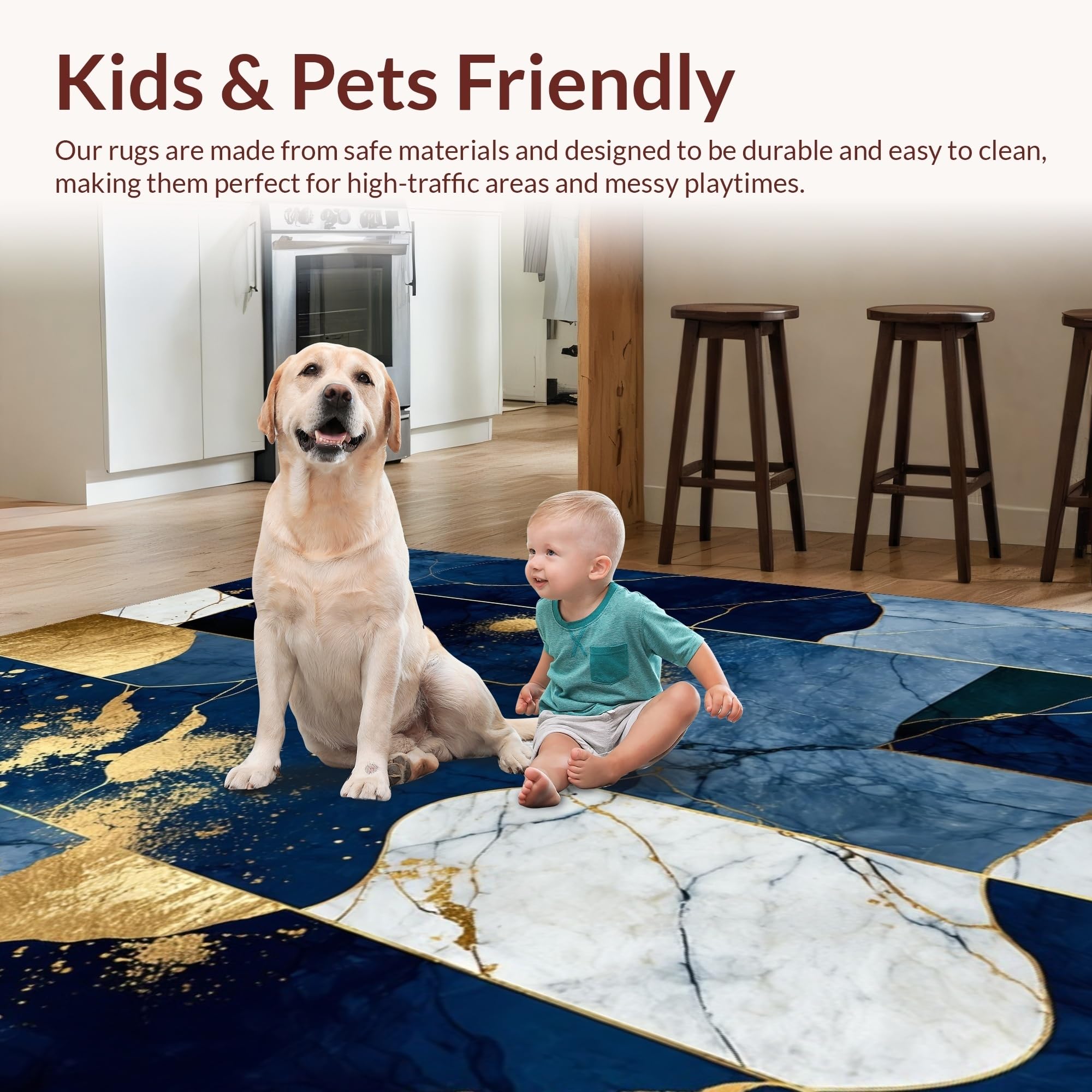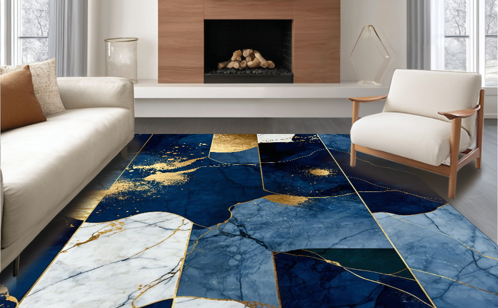 Ultra Soft Area Rug, Non Slip, Stain Resistant, Washable Area Rugs for Living Room, Bedroom, Contemporary Gold Swirl Art Piece(Blue) Overview: