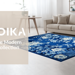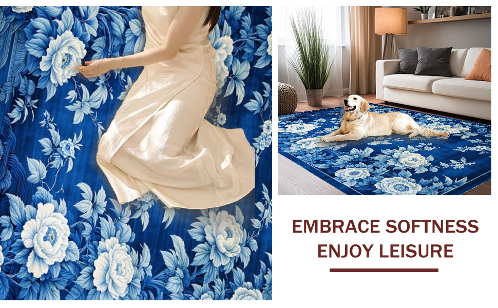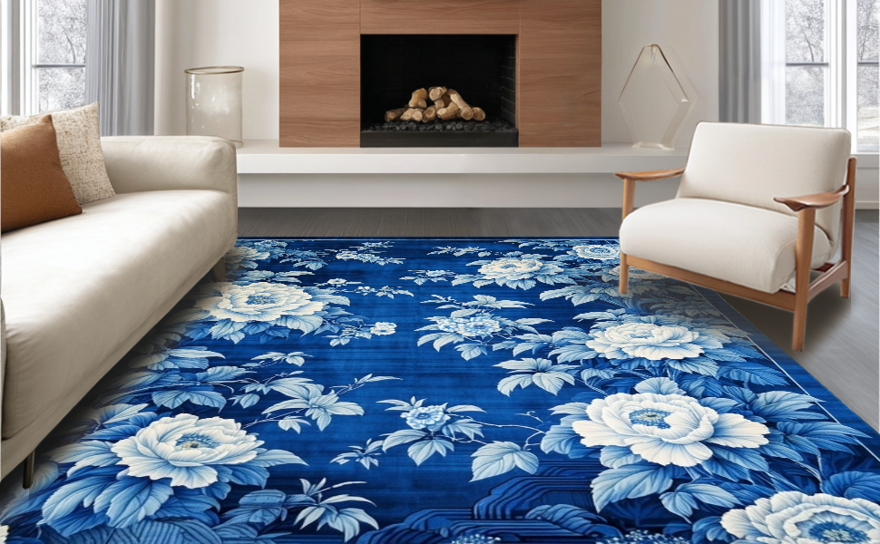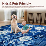Ultra Soft Area Rug, Non Slip, Stain Resistant, Washable Area Rugs for Living Room, Bedroom, Contemporary Gray Floral Pattern(Blue) Overview: