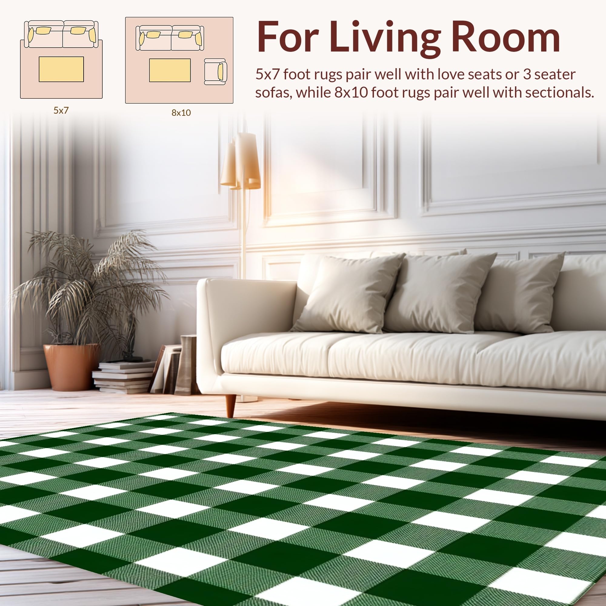 Ultra Soft Area Rug, Non Slip, Stain Resistant, Washable Area Rugs for Living Room, Bedroom, Contemporary Green Tartan Vibe(Green) Overview: