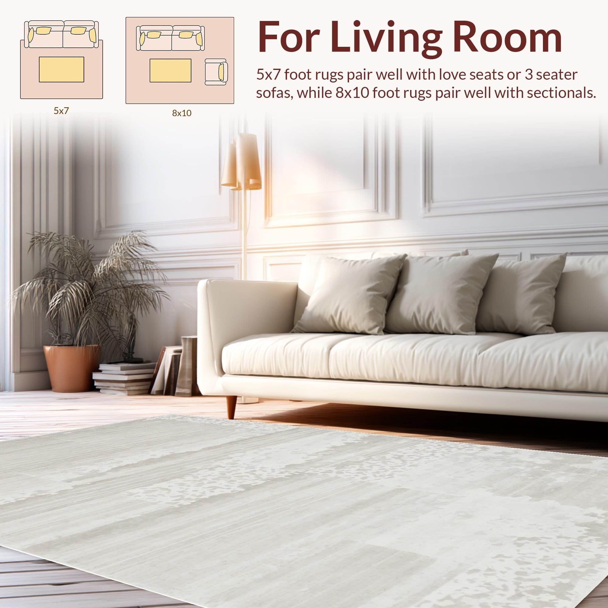 Ultra Soft Area Rug, Non Slip, Stain Resistant, Washable Area Rugs for Living Room, Bedroom, Contemporary Grey Living Room High Traffic Wool Rug(Beige) Overview: