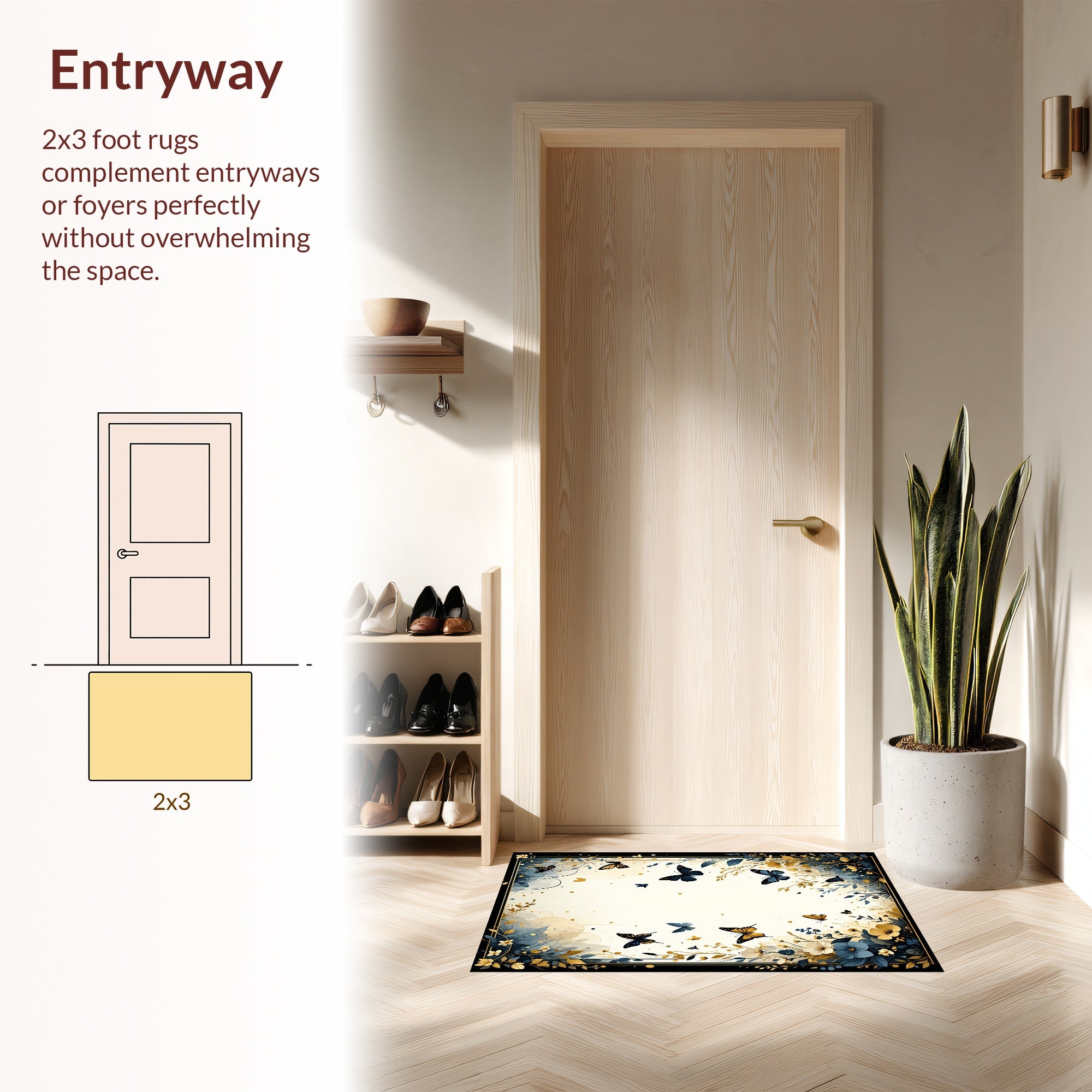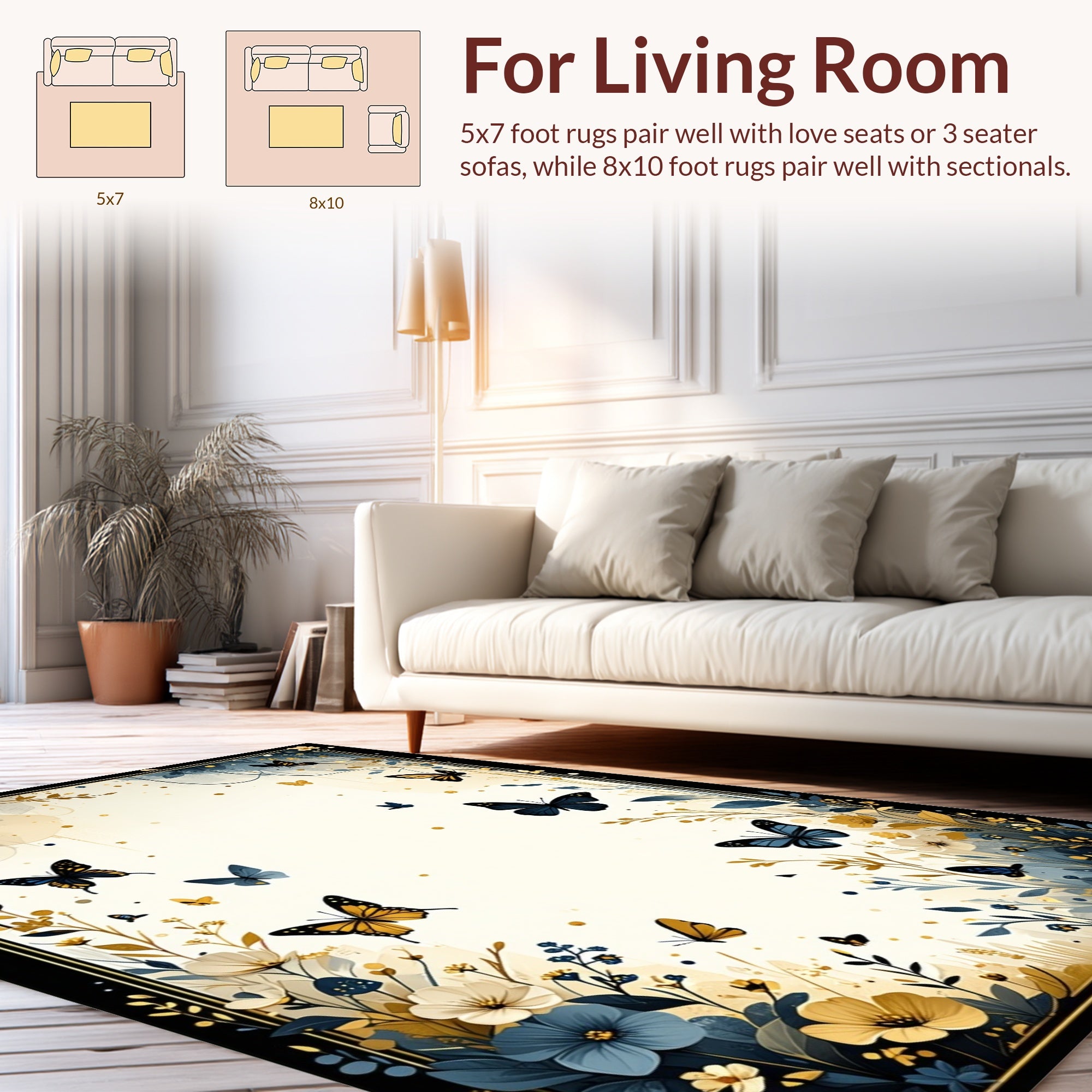 Flatwoven High Traffic Area Rug, Contemporary Insect Illustrative Design, Non Slip, Stain Resistant, Washable Area Rugs for Living Room, Bedroom (Gold) Overview: