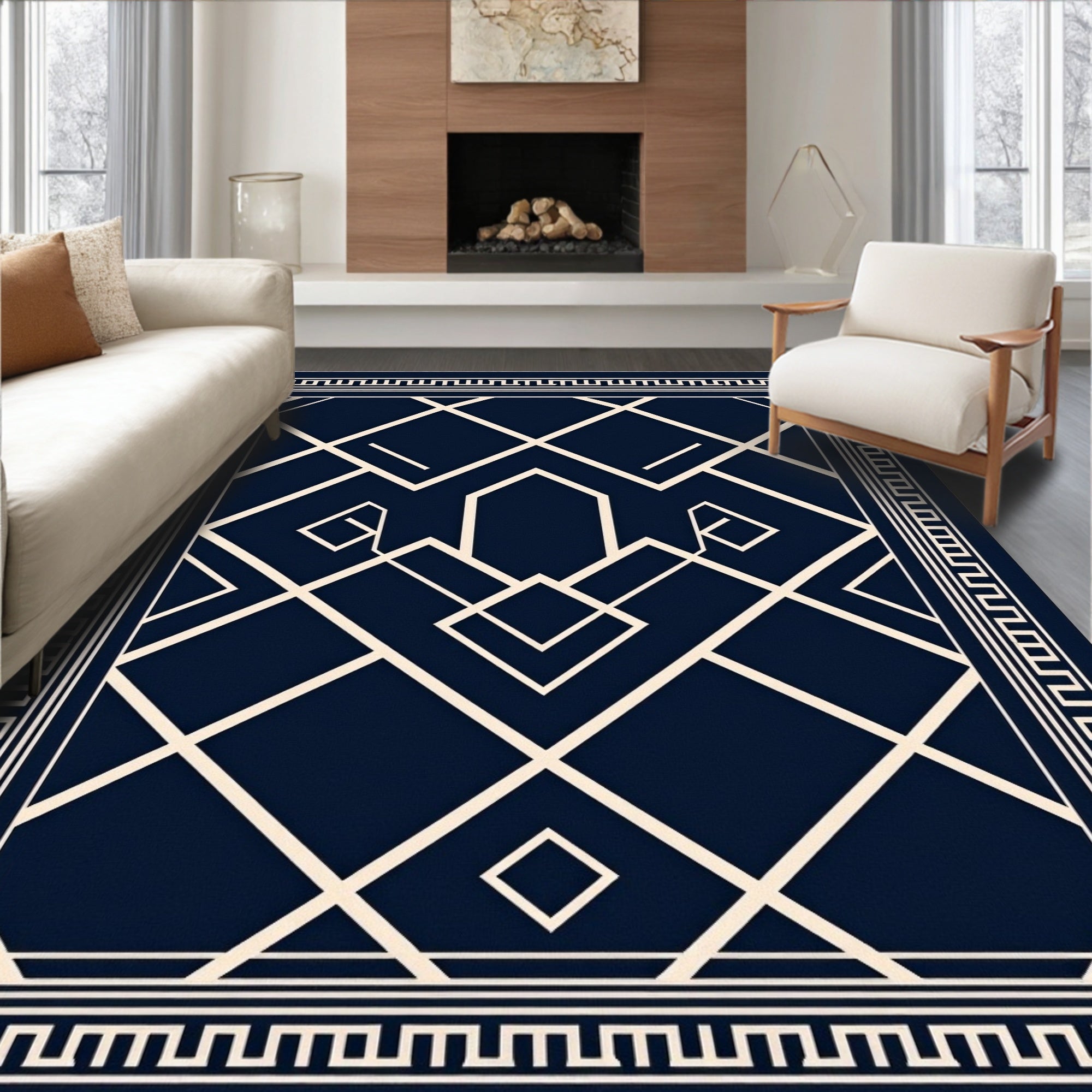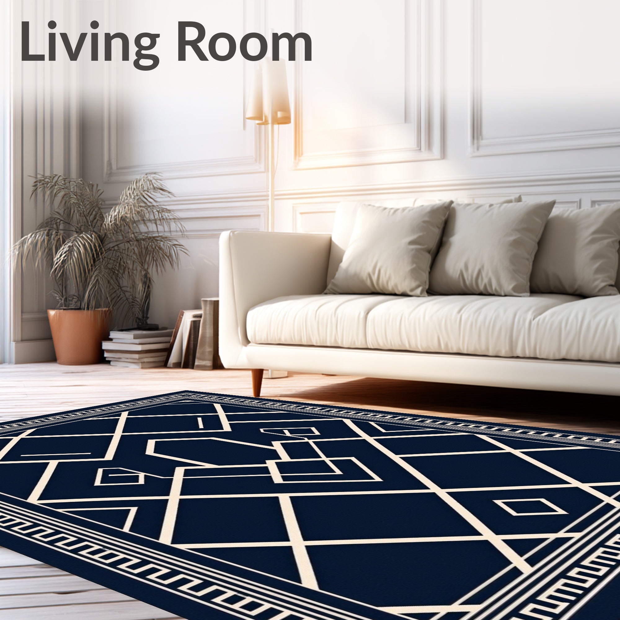 Ultra Soft Area Rug, Non Slip, Stain Resistant, Washable Area Rugs for Living Room, Bedroom, Contemporary Lattice Doorway Barrier With Interwoven Design(Blue) Overview: