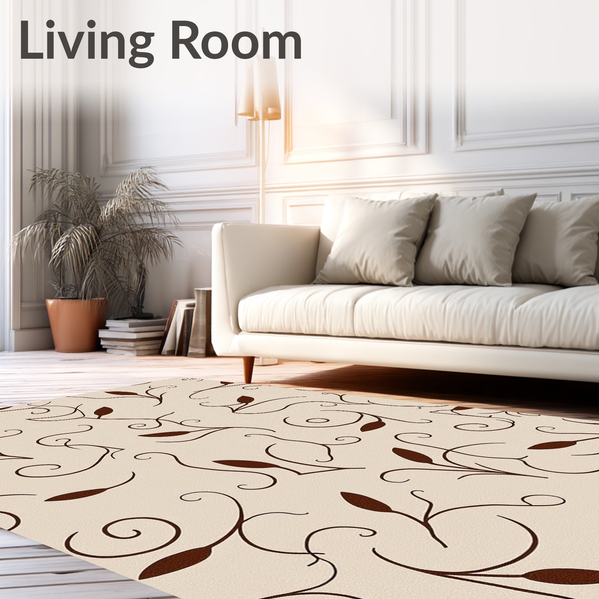 Ultra Soft Area Rug, Non Slip, Stain Resistant, Washable Area Rugs for Living Room, Bedroom, Contemporary Leaf Spray Mosaic with Abstract Petal Whorls(Beige) Overview: