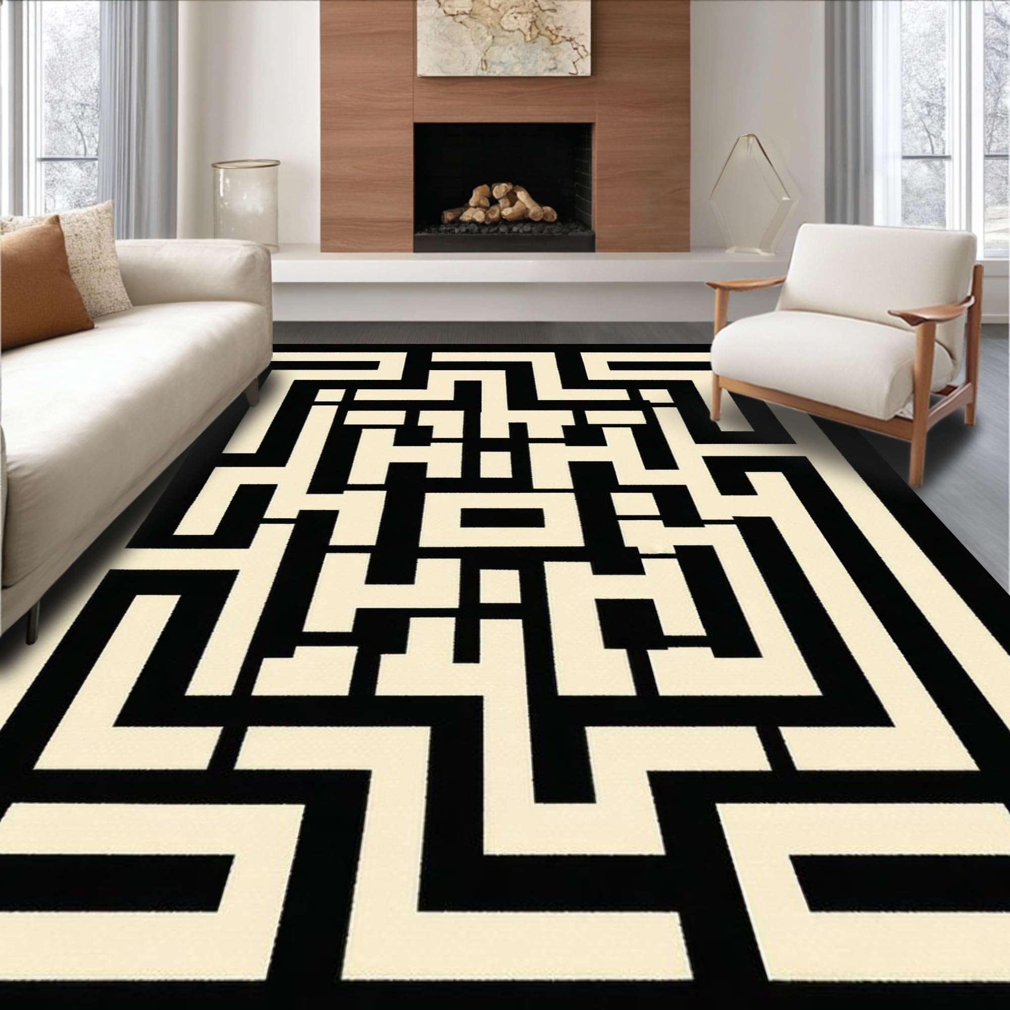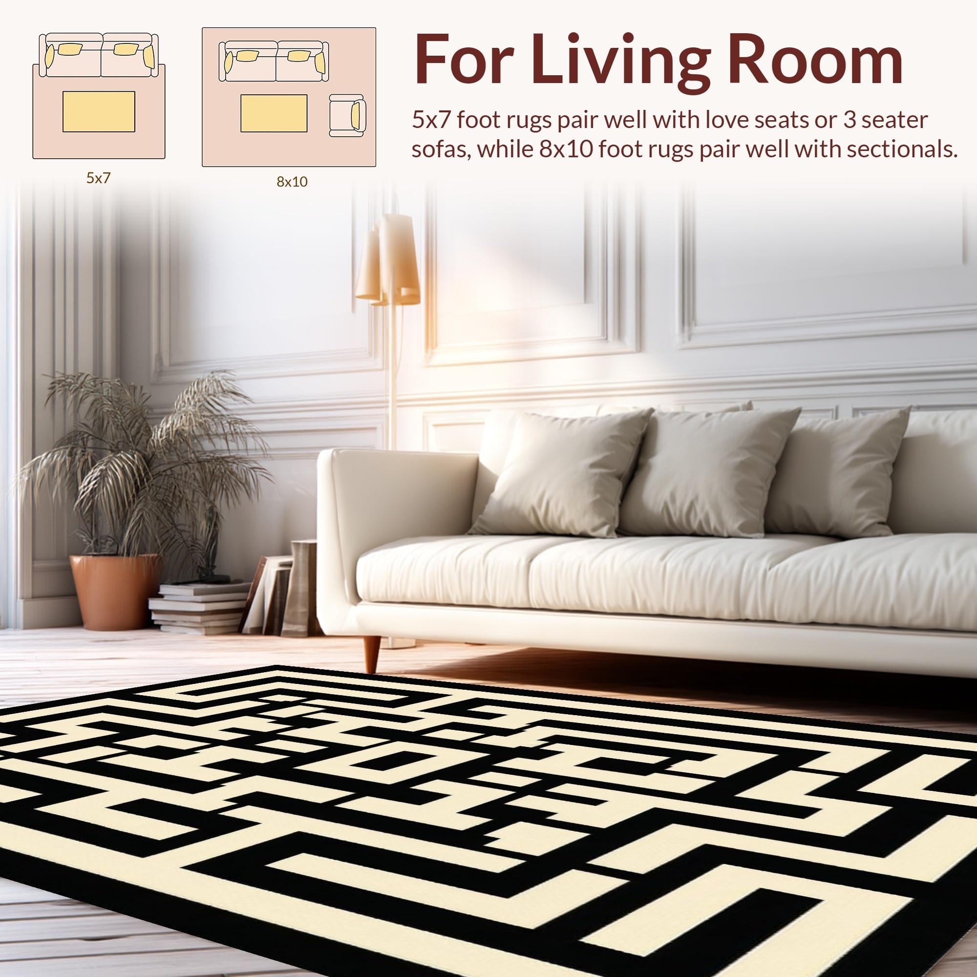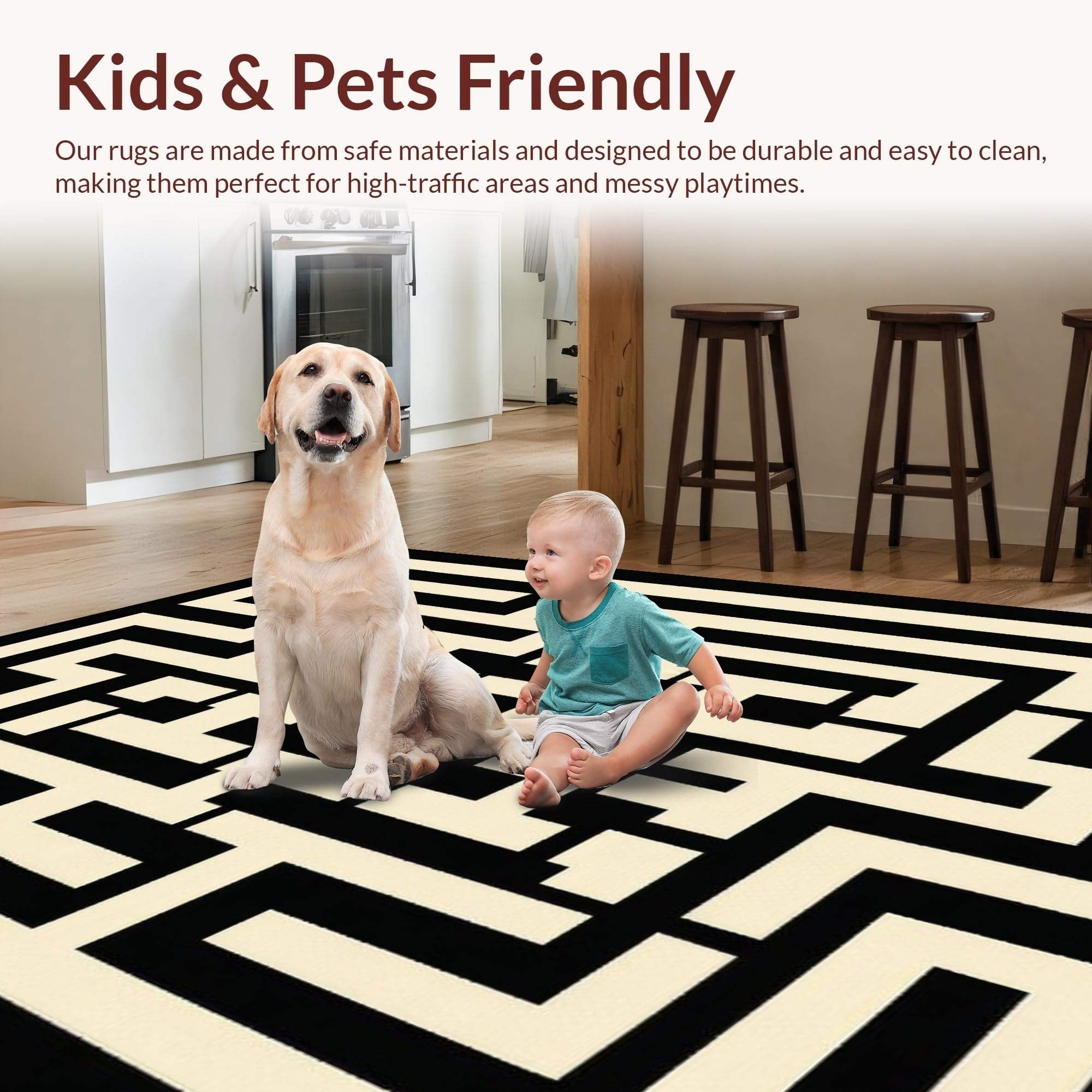 Ultra Soft Area Rug, Non Slip, Stain Resistant, Washable Area Rugs for Living Room, Bedroom, Contemporary Linear Geometric Motif(Beige) Overview: