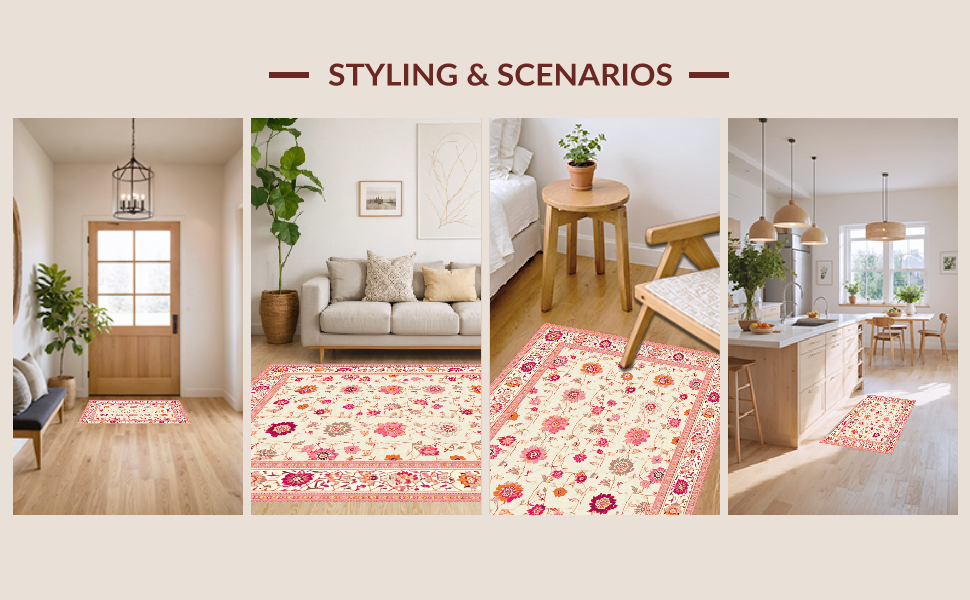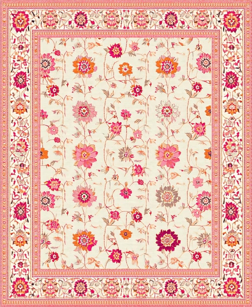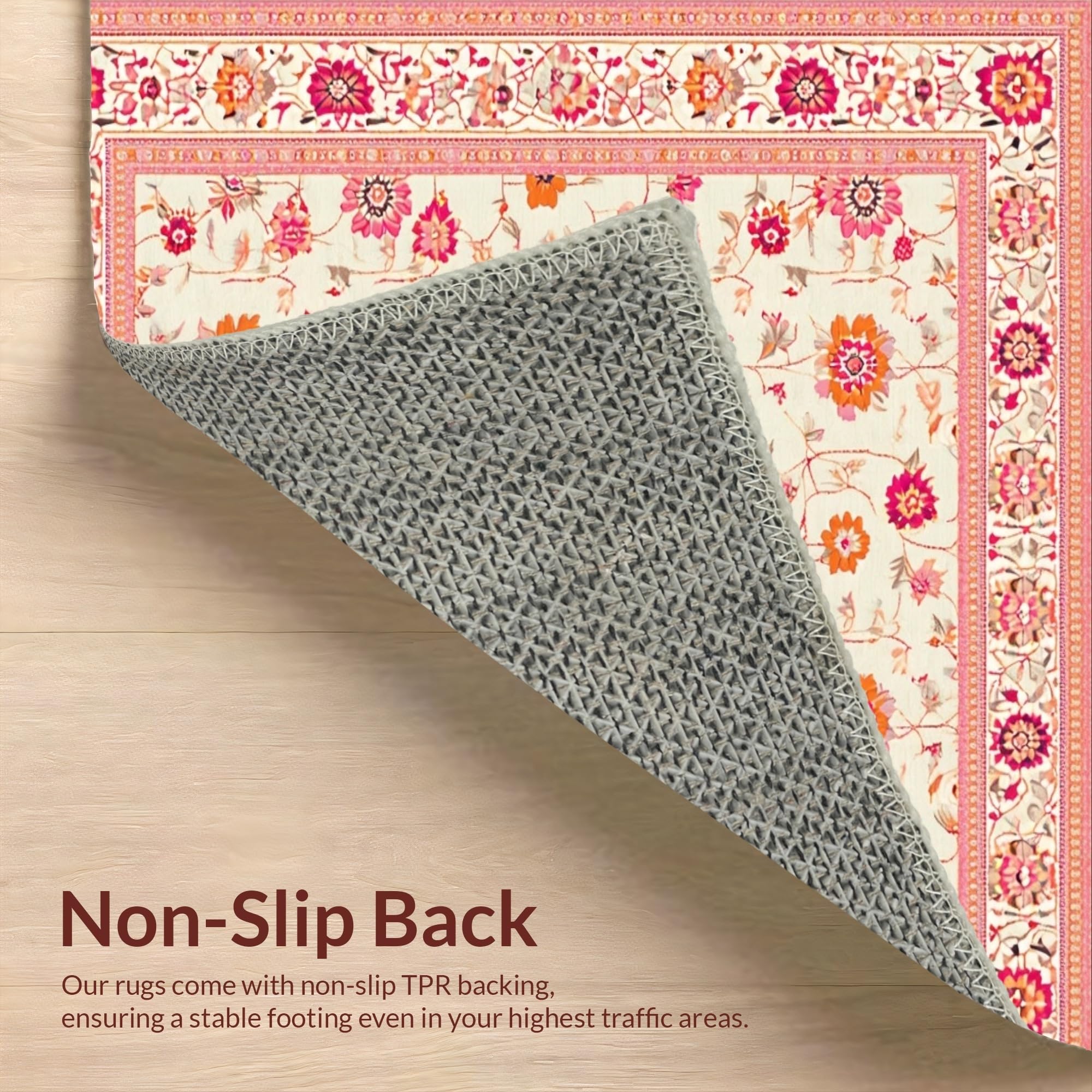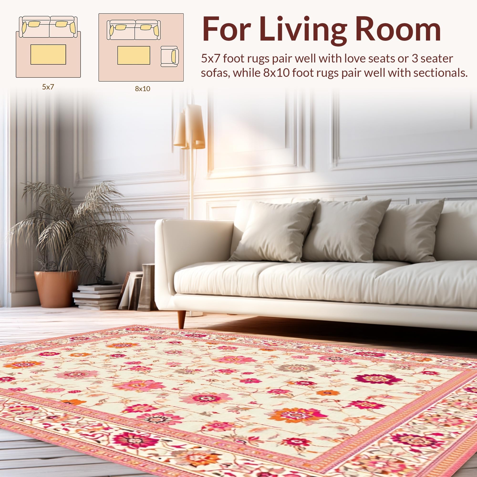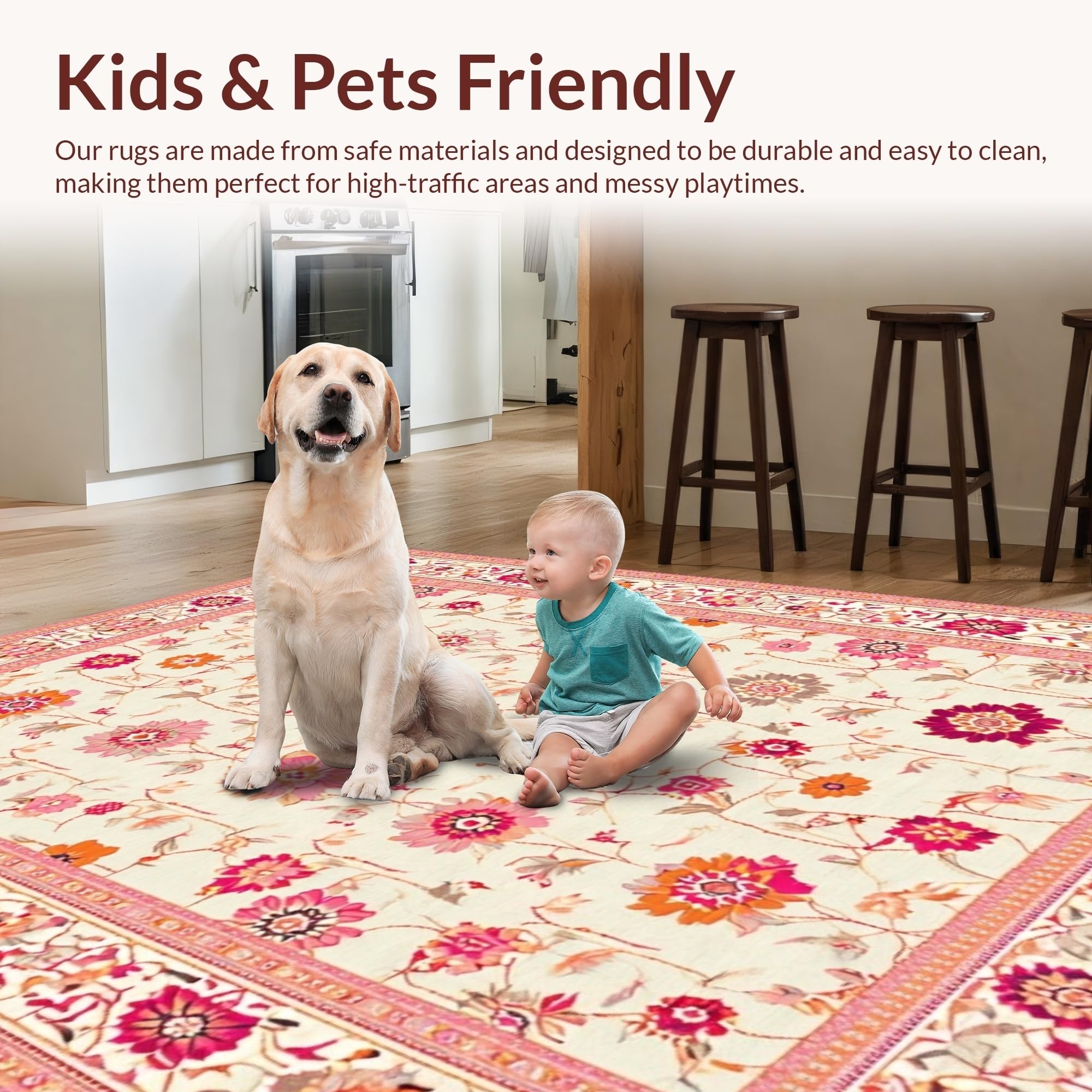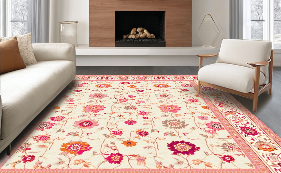 Ultra Soft Area Rug, Non Slip, Stain Resistant, Washable Area Rugs for Living Room, Bedroom, Contemporary Lush Flower Imagery(Ivory) Overview: