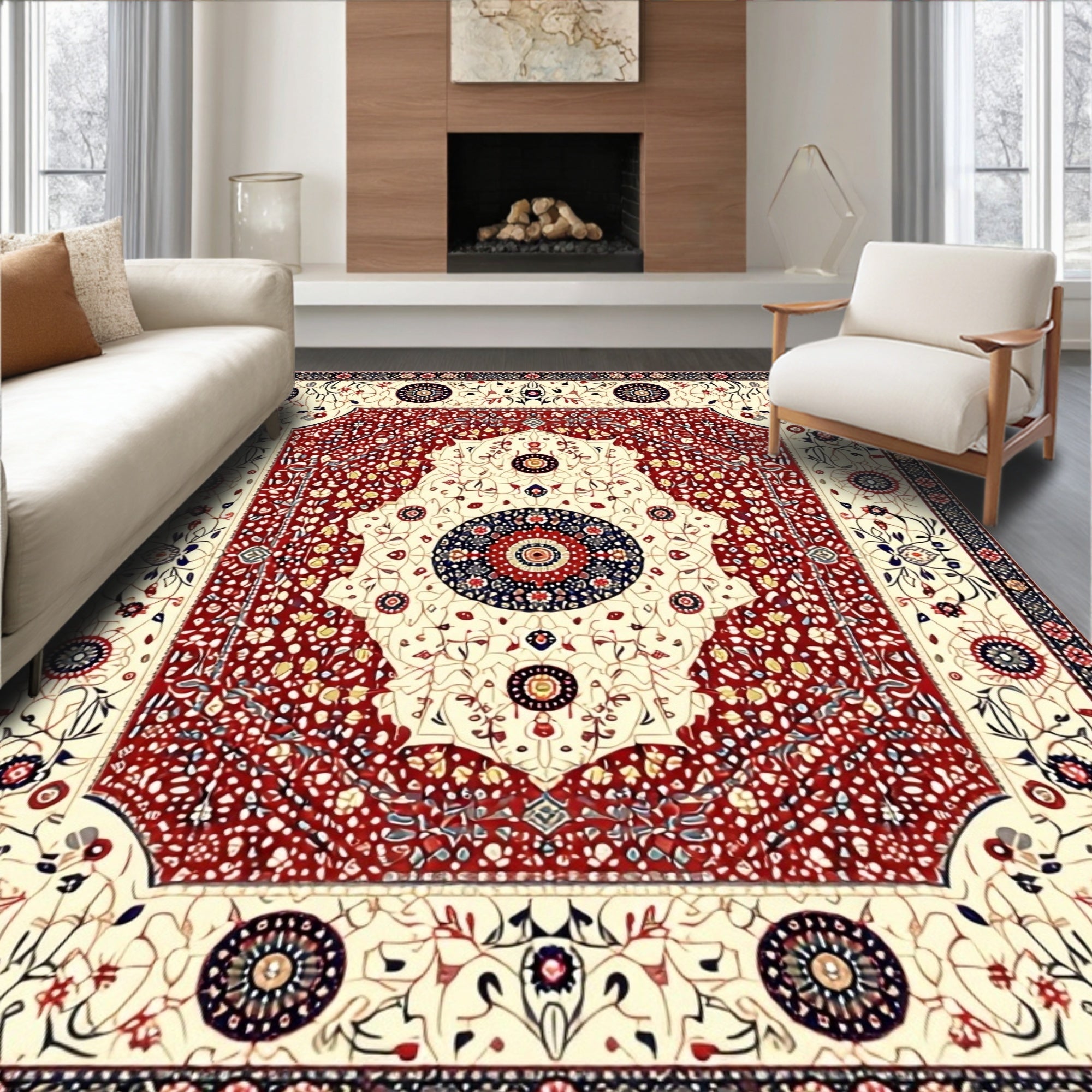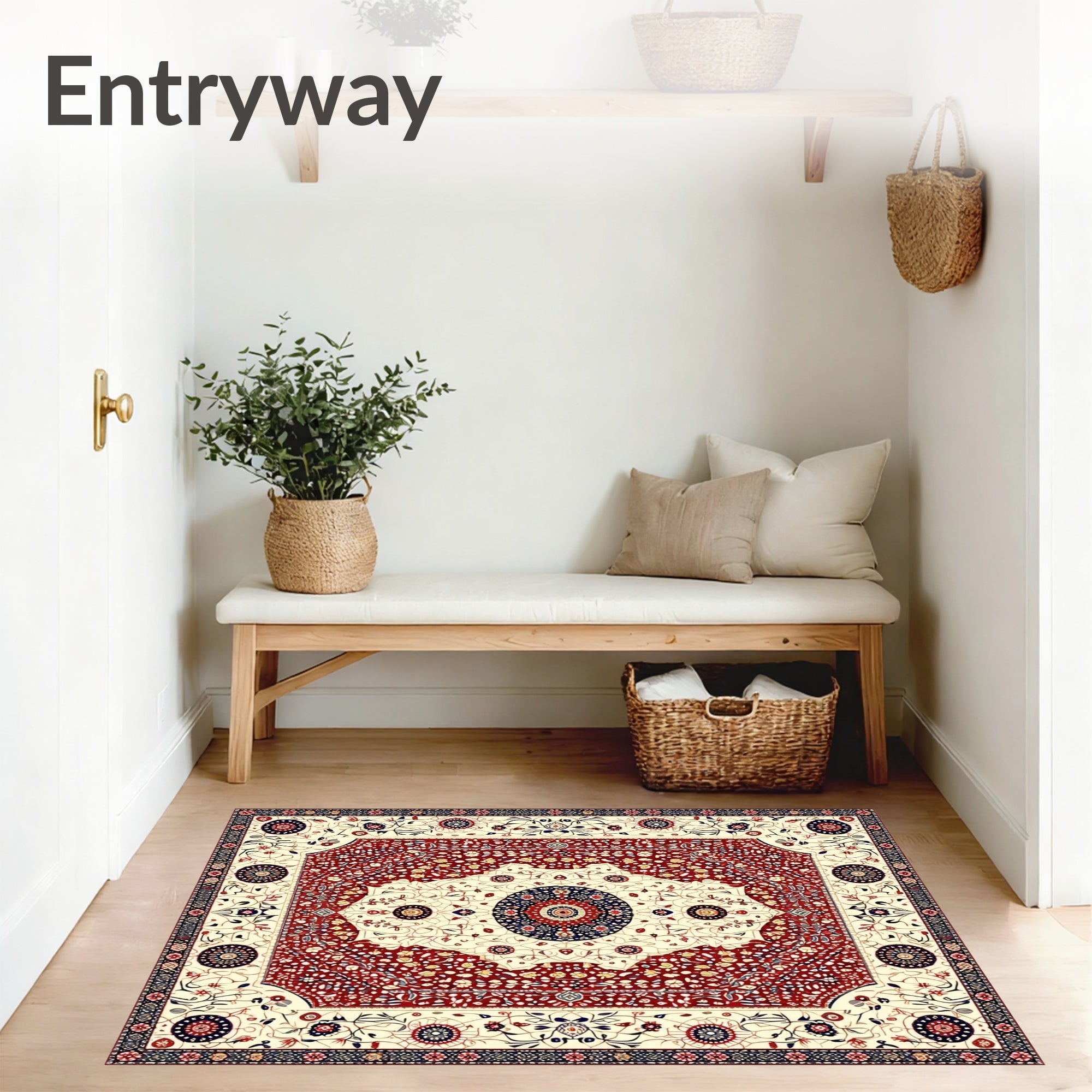 Ultra Soft Area Rug, Non Slip, Stain Resistant, Washable Area Rugs for Living Room, Bedroom, Contemporary Medallion Area Pet & Kid Ready Simple Care(Red) Overview: