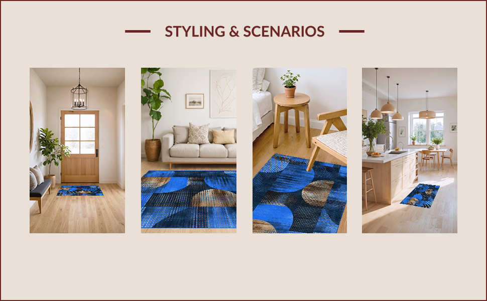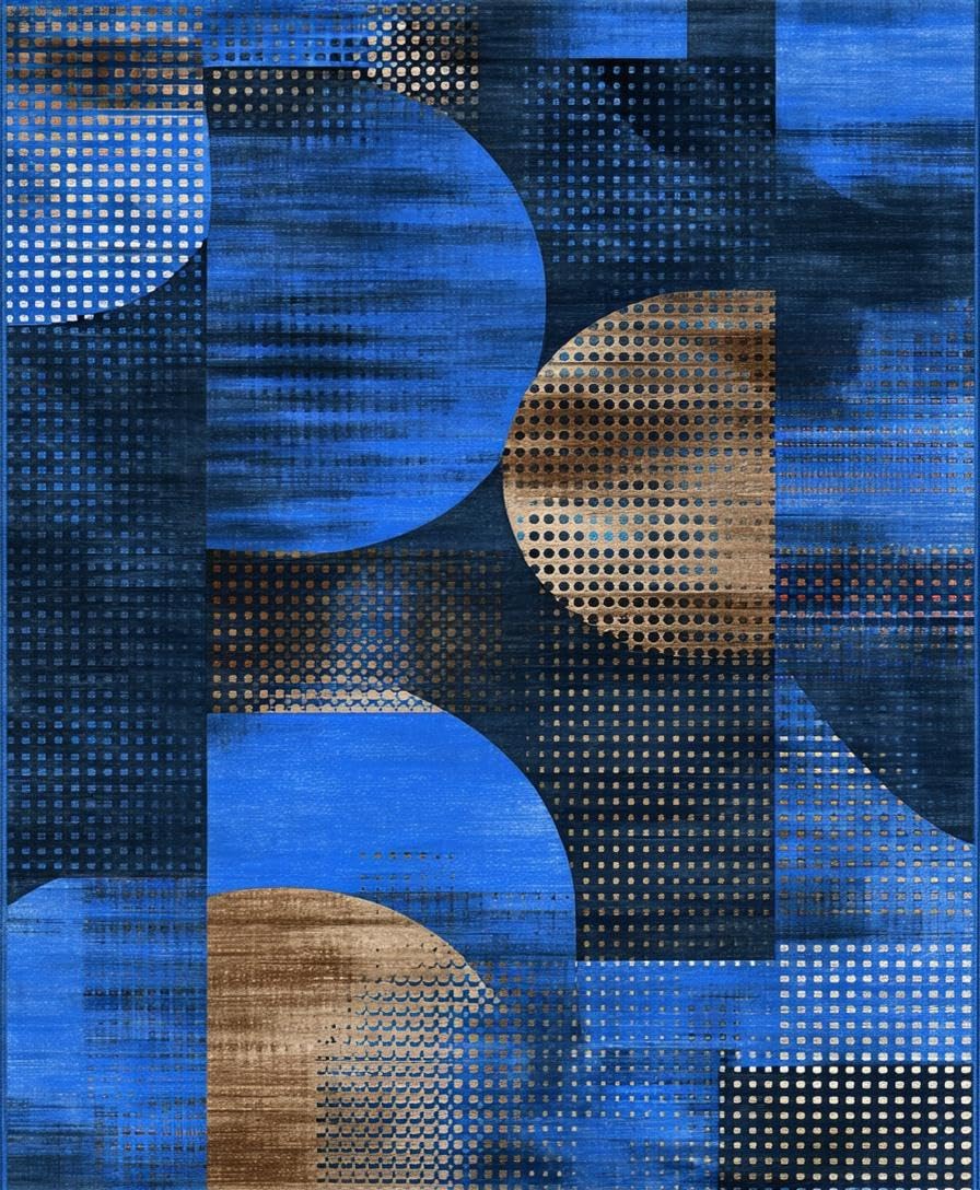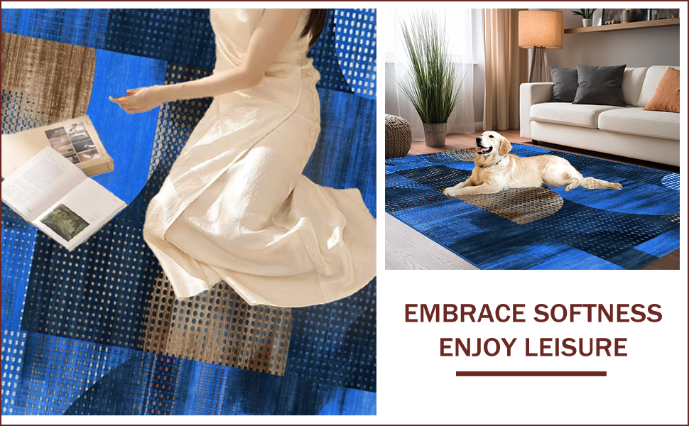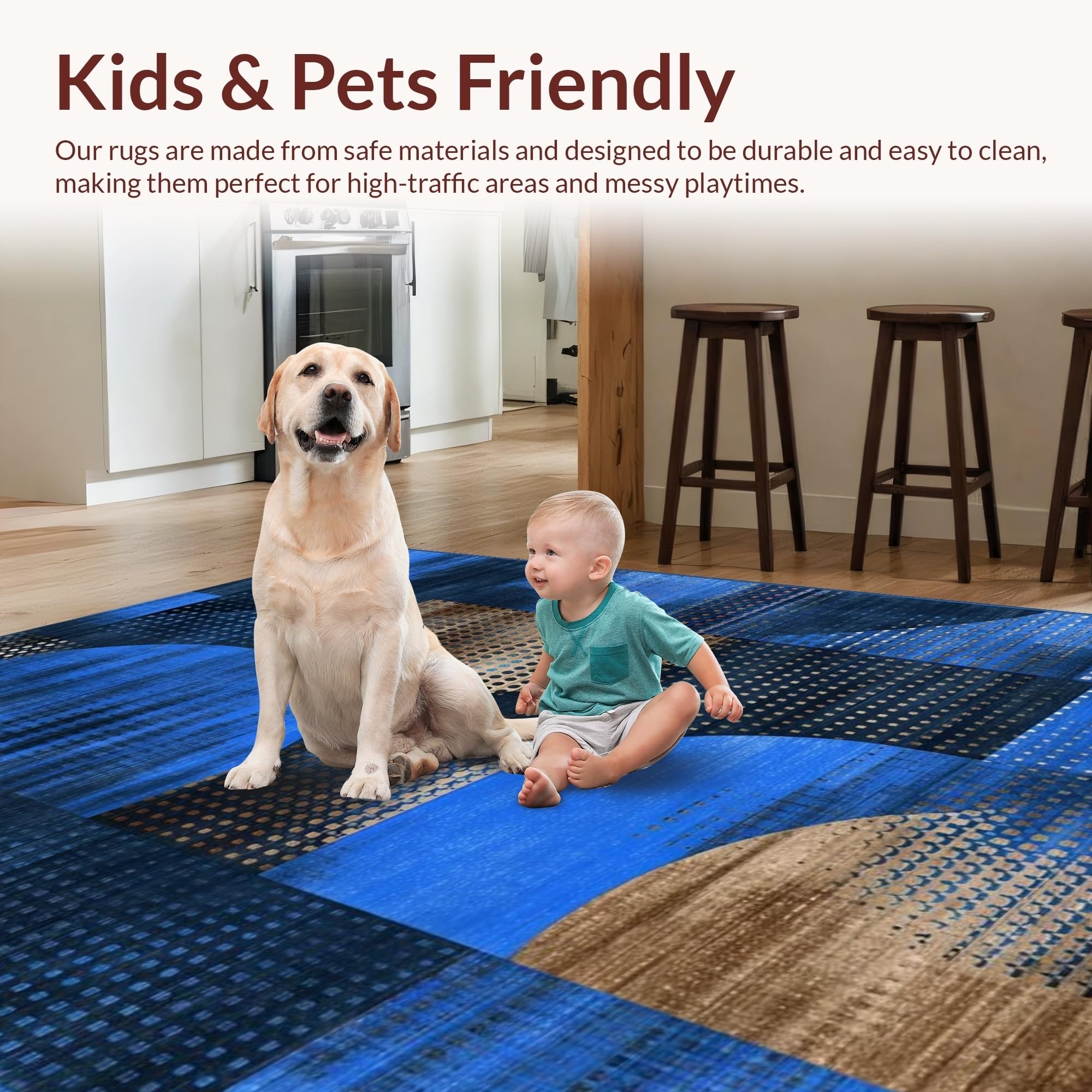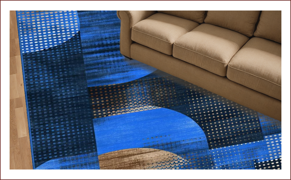 Ultra Soft Area Rug, Non Slip, Stain Resistant, Washable Area Rugs for Living Room, Bedroom, Contemporary Multi-Tonal Geometric Style(Blue) Overview: