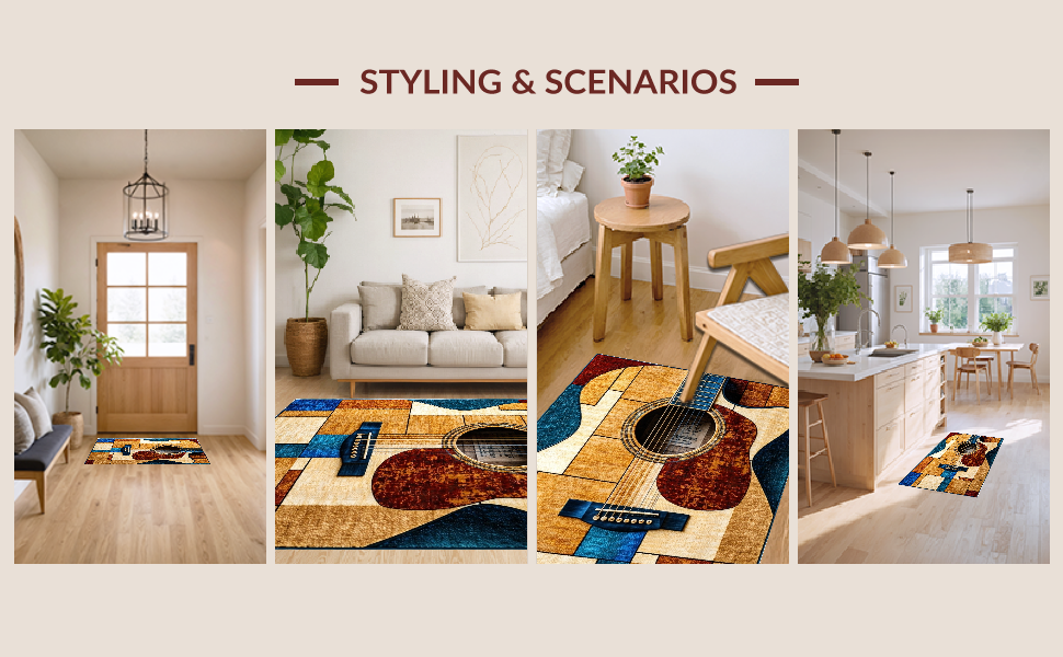 Ultra Soft Area Rug, Non Slip, Stain Resistant, Washable Area Rugs for Living Room, Bedroom, Contemporary Musical Notes Design(Brown) Overview: