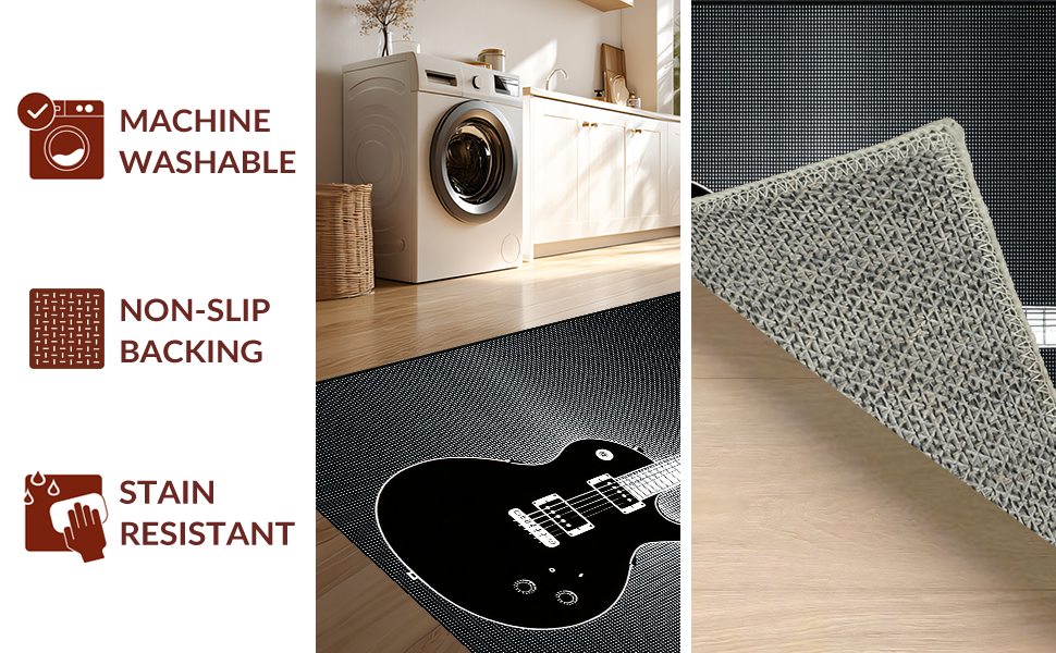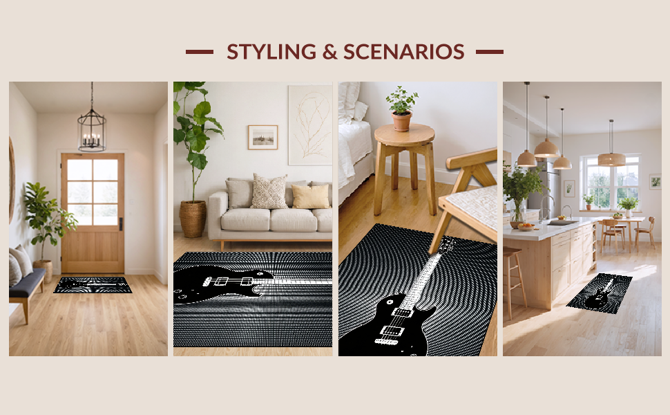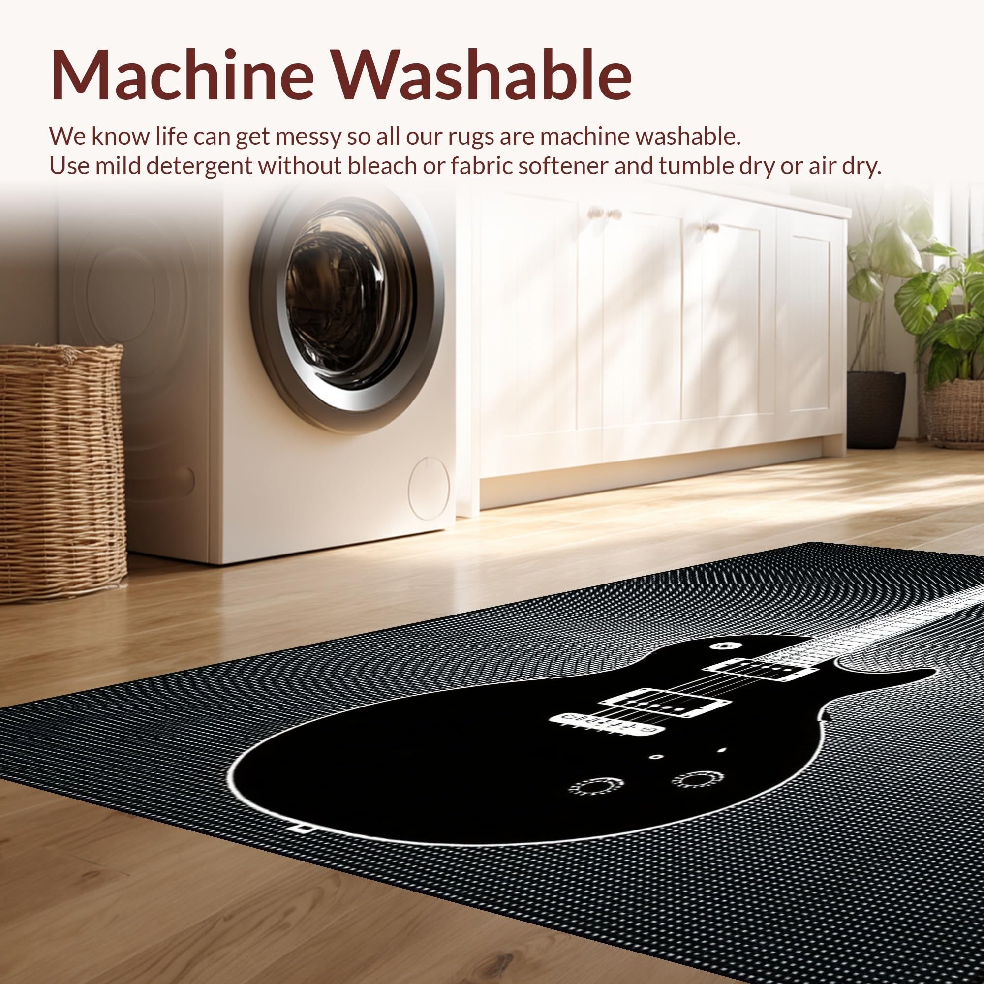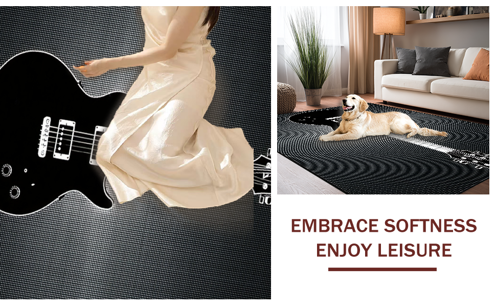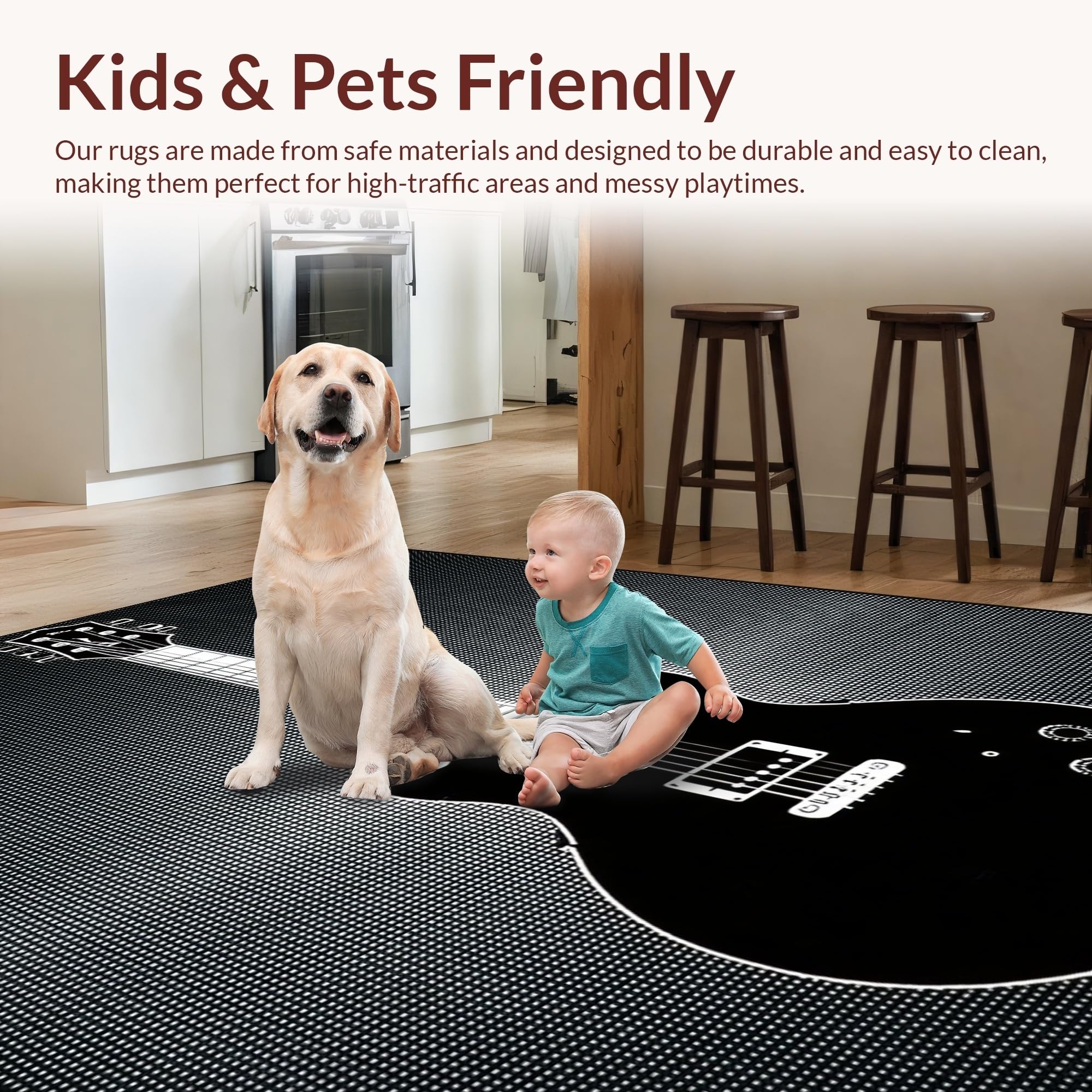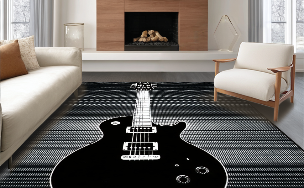 Ultra Soft Area Rug, Non Slip, Stain Resistant, Washable Area Rugs for Living Room, Bedroom, Contemporary Musical Theme Decor(Black) Overview:
