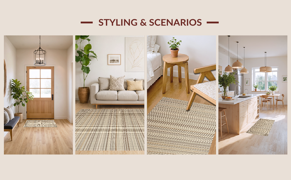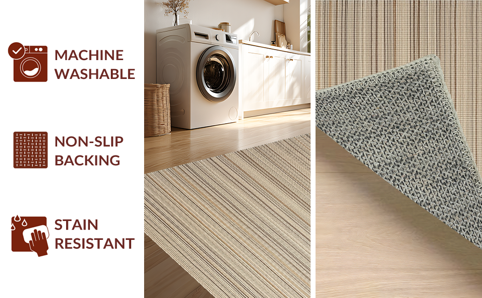 Ultra Soft Area Rug, Non Slip, Stain Resistant, Washable Area Rugs for Living Room, Bedroom, Contemporary Natural Fiber Design(Beige) Overview: