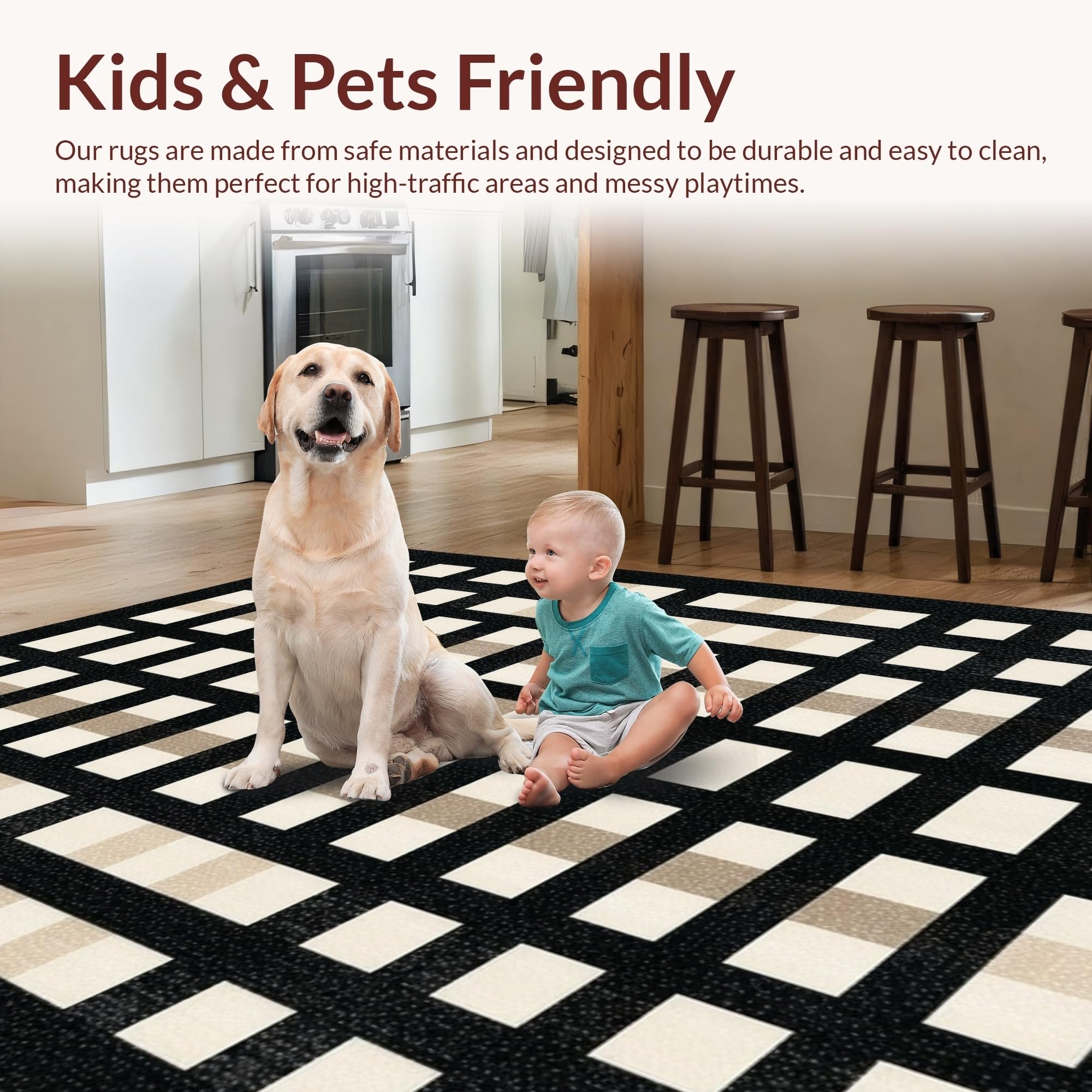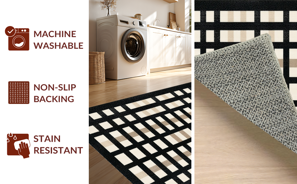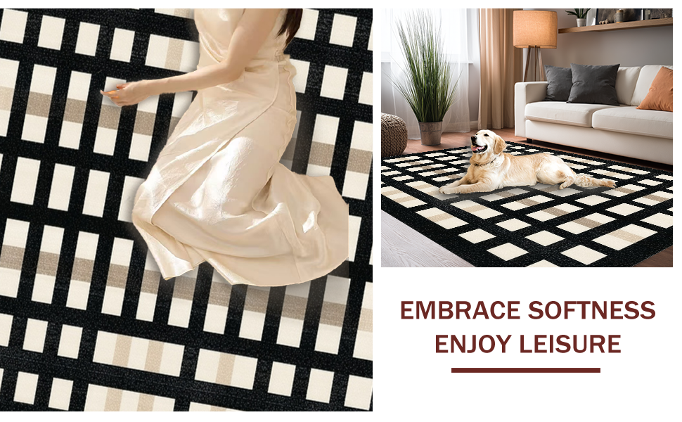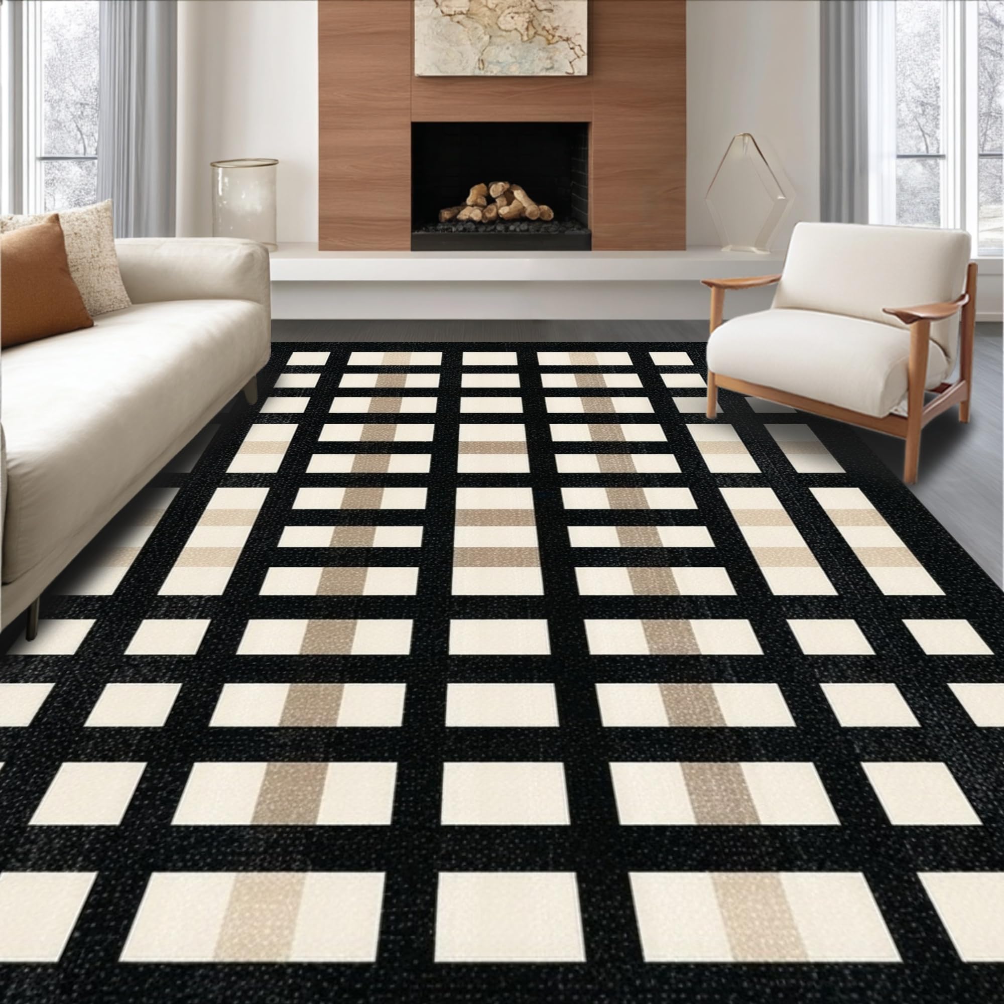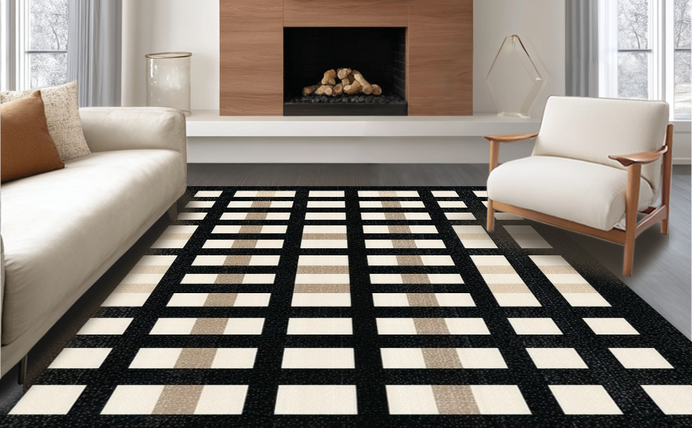 Ultra Soft Area Rug, Non Slip, Stain Resistant, Washable Area Rugs for Living Room, Bedroom, Contemporary Neutral Tiled Pattern(Black) Overview: