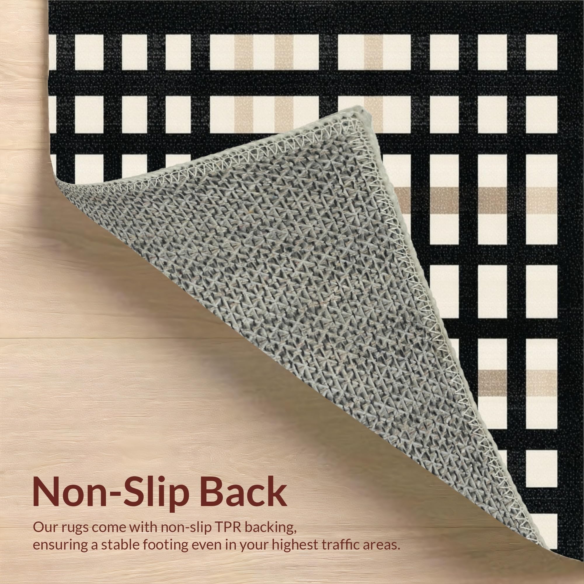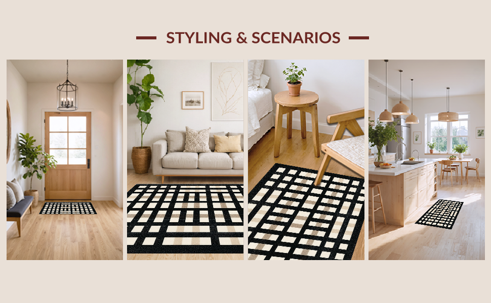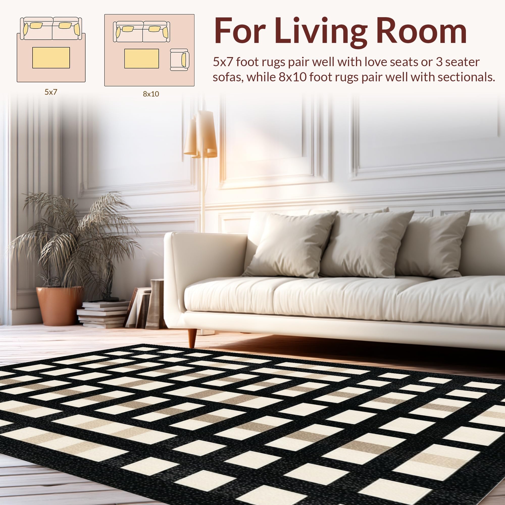 Ultra Soft Area Rug, Non Slip, Stain Resistant, Washable Area Rugs for Living Room, Bedroom, Contemporary Neutral Tiled Pattern(Black) Overview: