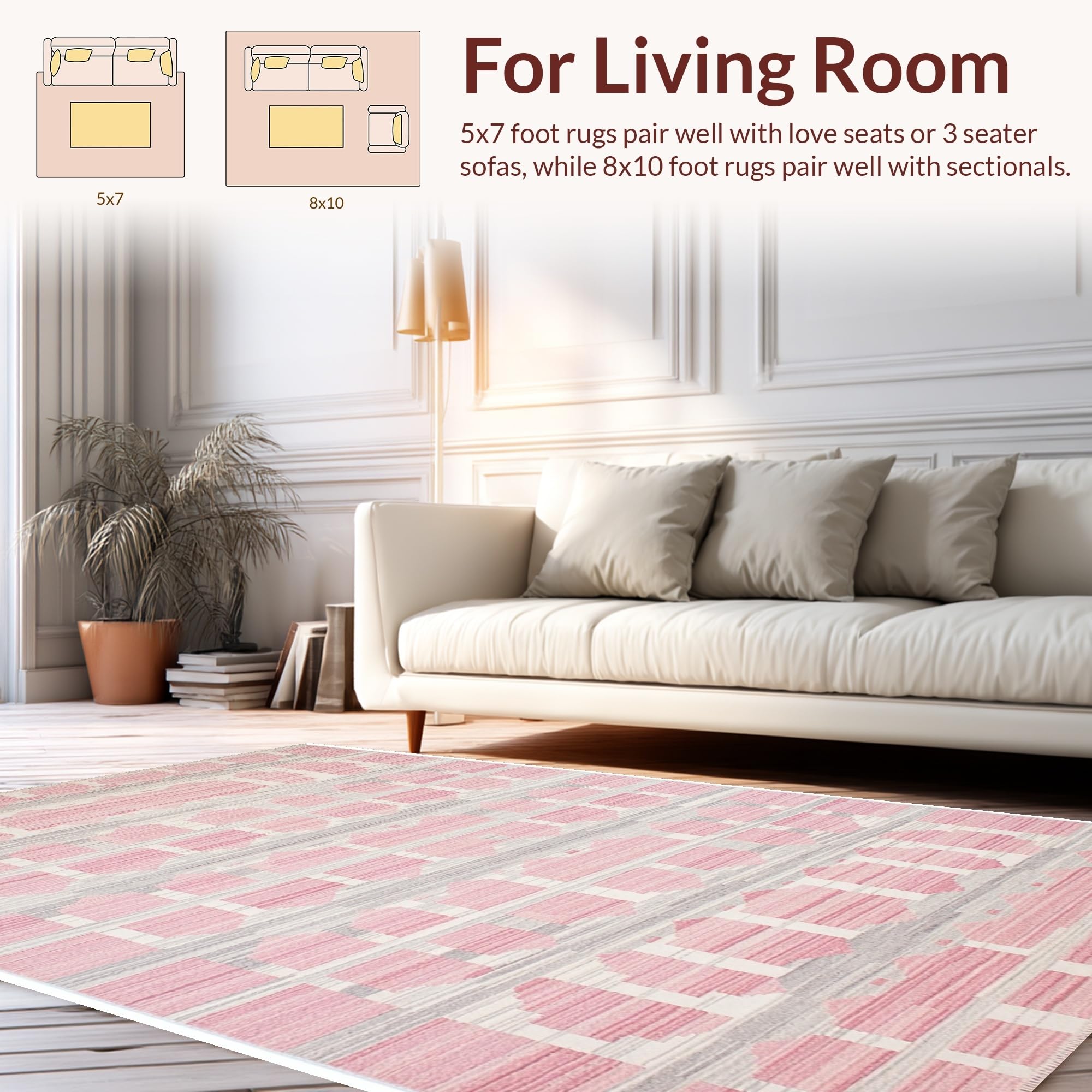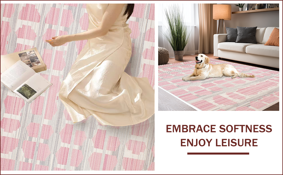 Ultra Soft Area Rug, Non Slip, Stain Resistant, Washable Area Rugs for Living Room, Bedroom, Contemporary Pastel Shaggy Design(Pink) Overview: