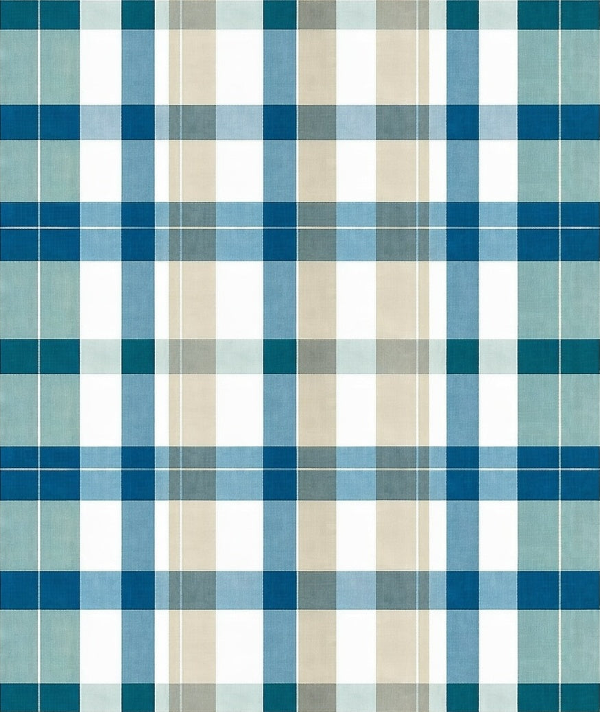 Contemporary Plaid Area with Layered Blue and Beige Checkered Design(Blue)