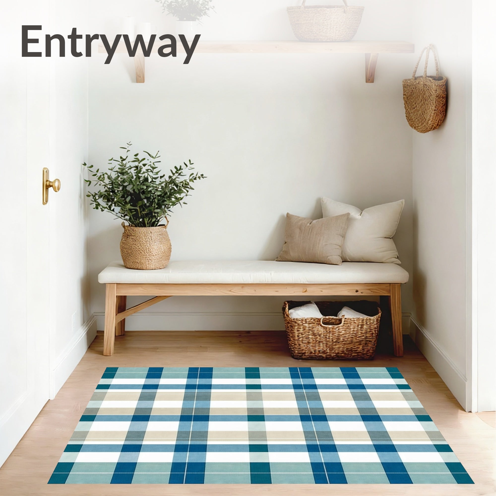 Ultra Soft Area Rug, Non Slip, Stain Resistant, Washable Area Rugs for Living Room, Bedroom, Contemporary Plaid Area with Layered Blue and Beige Checkered Design(Blue) Overview: