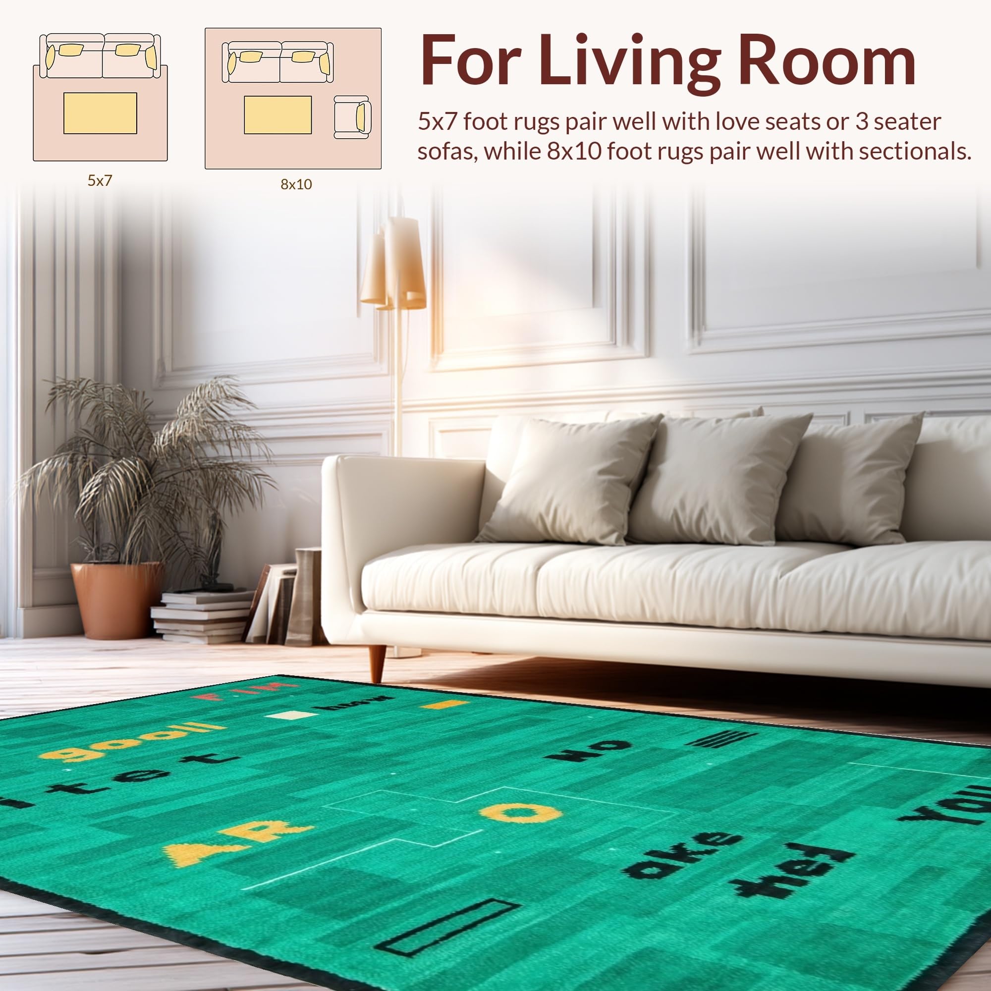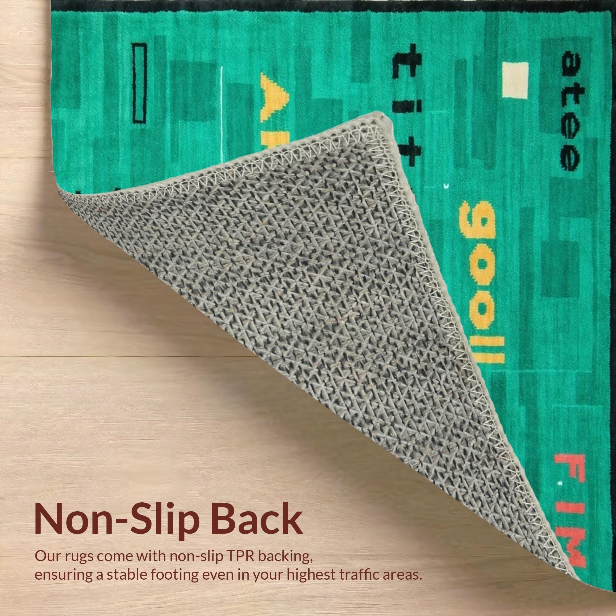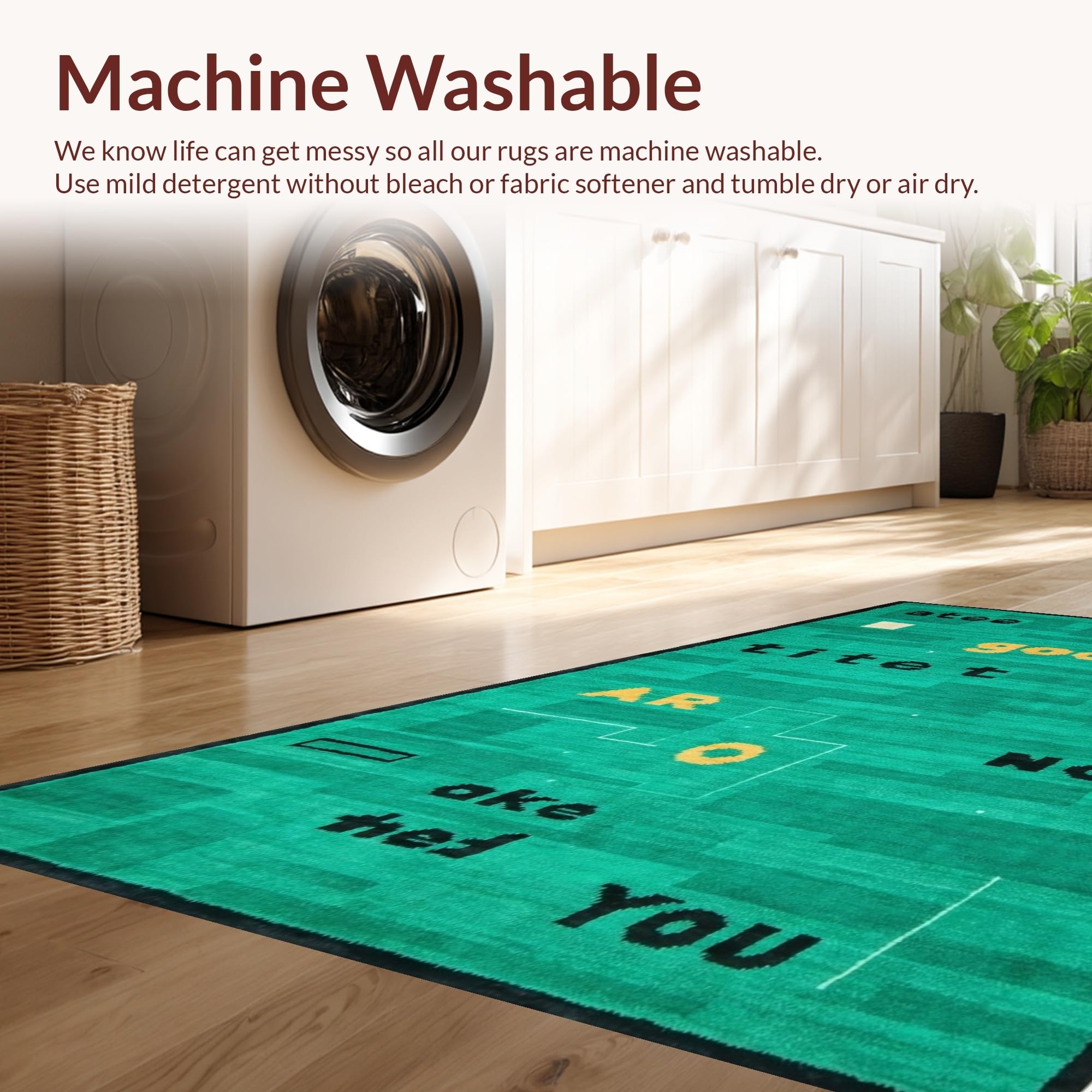 Ultra Soft Area Rug, Non Slip, Stain Resistant, Washable Area Rugs for Living Room, Bedroom, Contemporary Playful Script Design(Green) Overview: