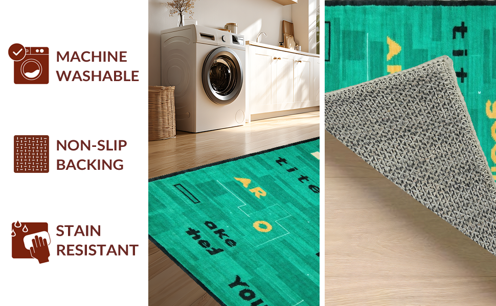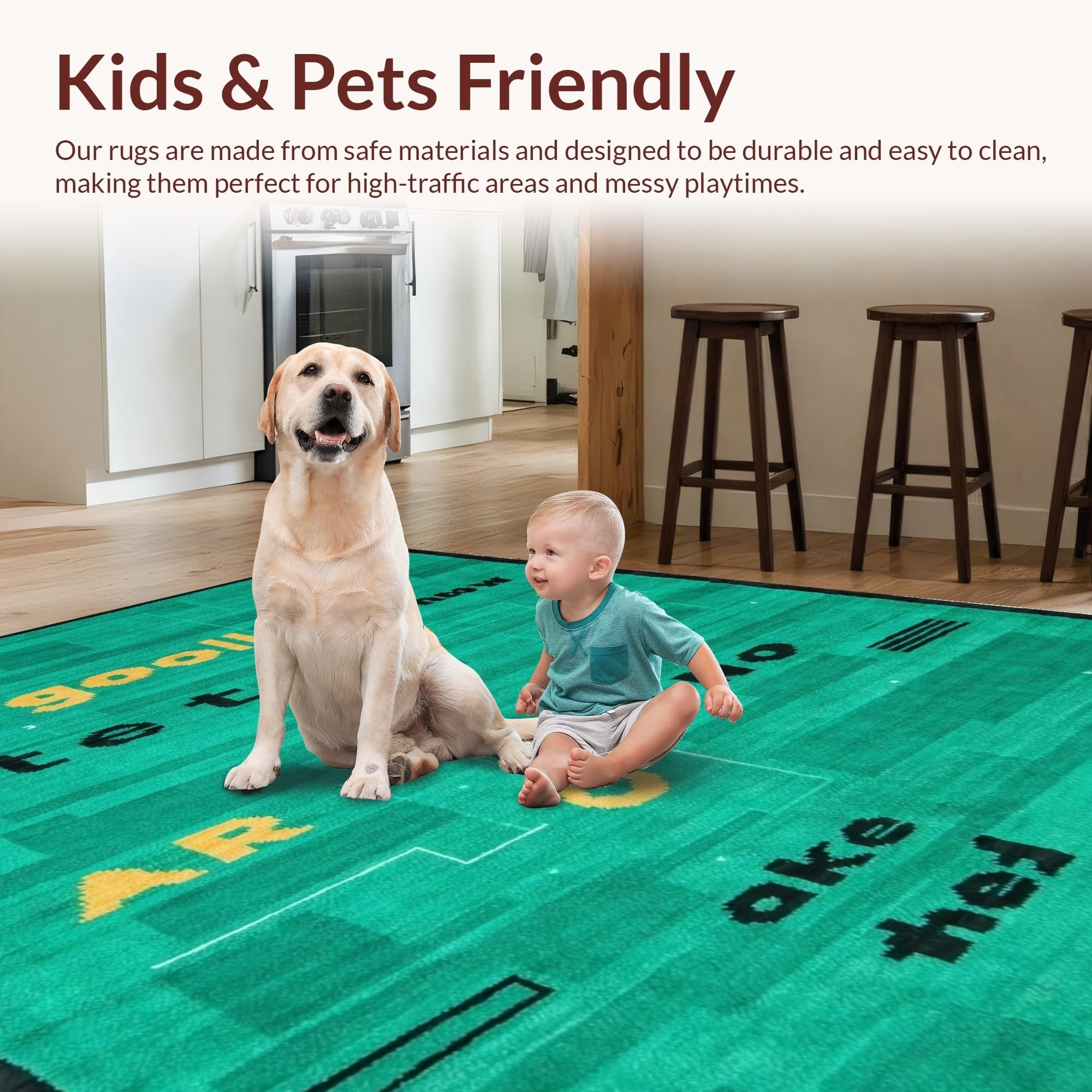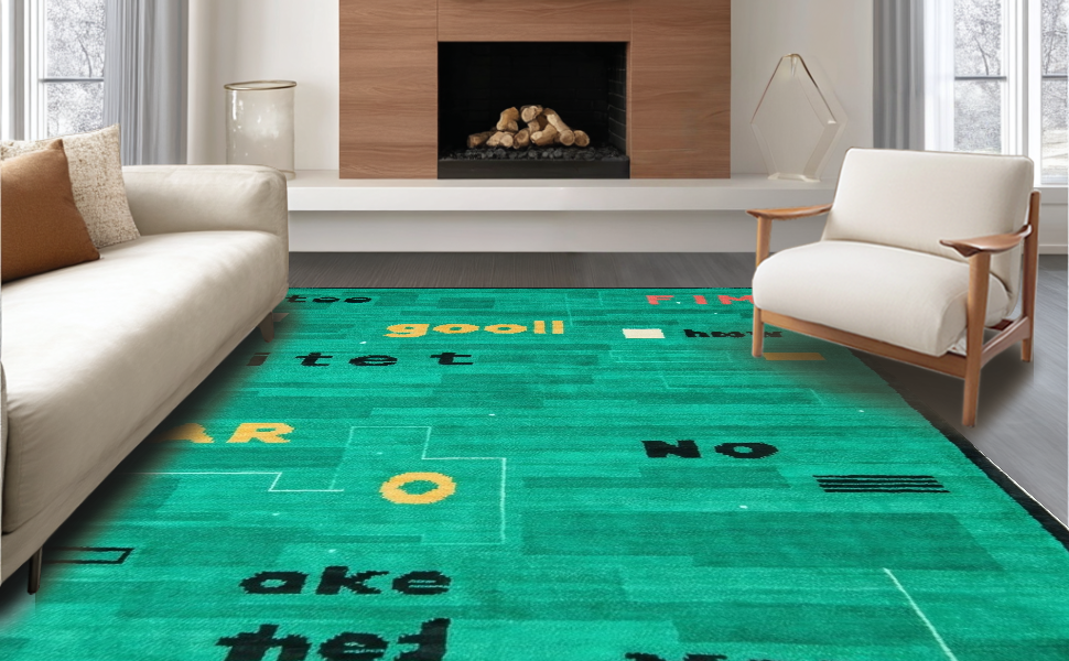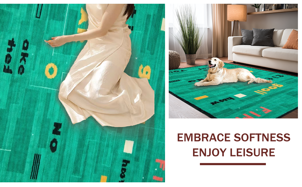 Ultra Soft Area Rug, Non Slip, Stain Resistant, Washable Area Rugs for Living Room, Bedroom, Contemporary Playful Script Design(Green) Overview: