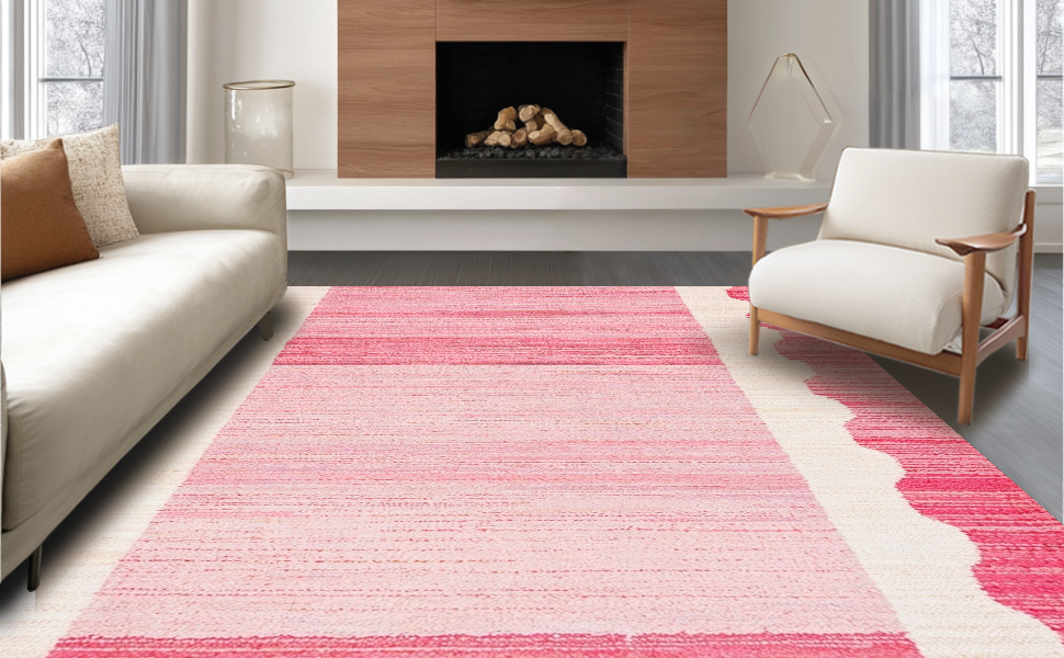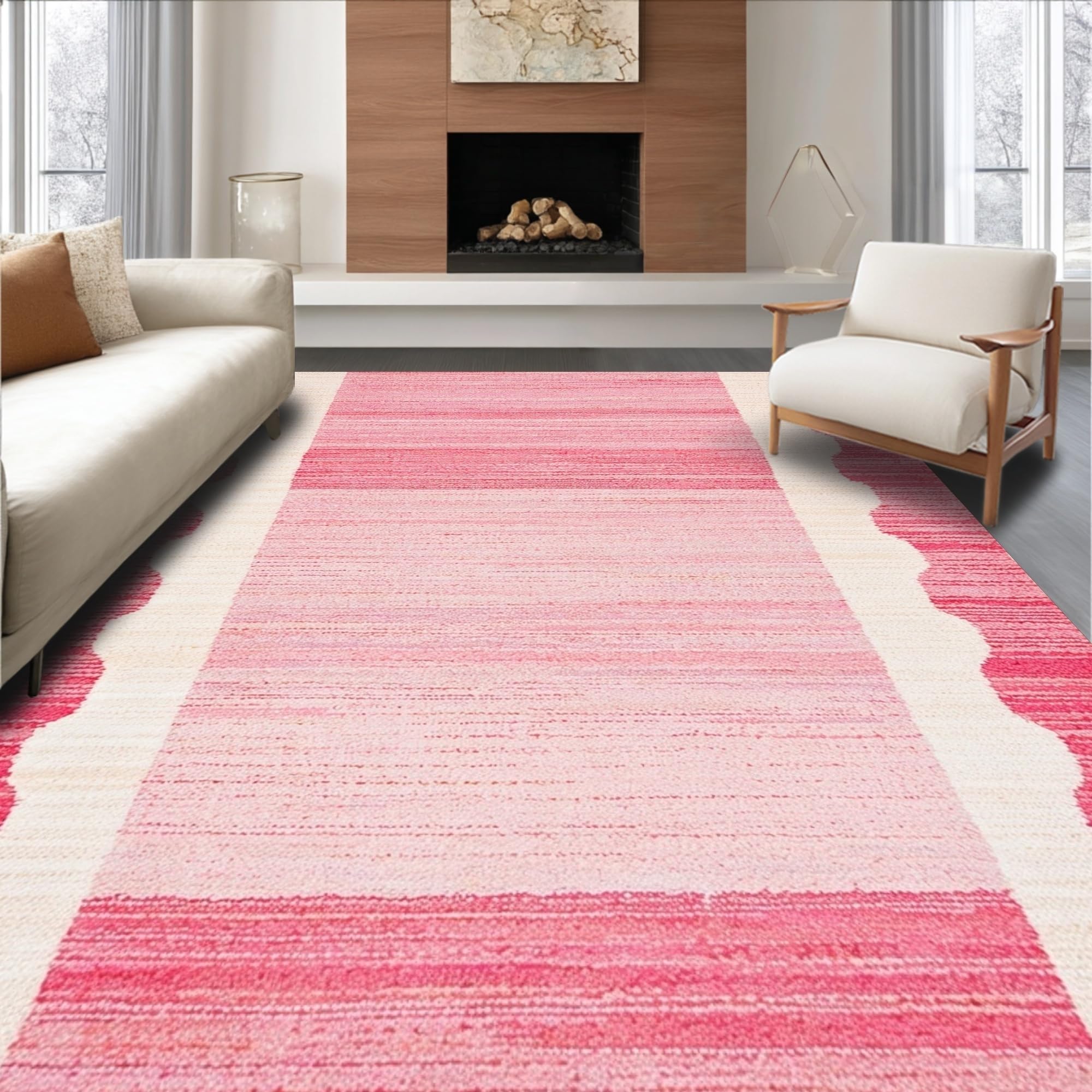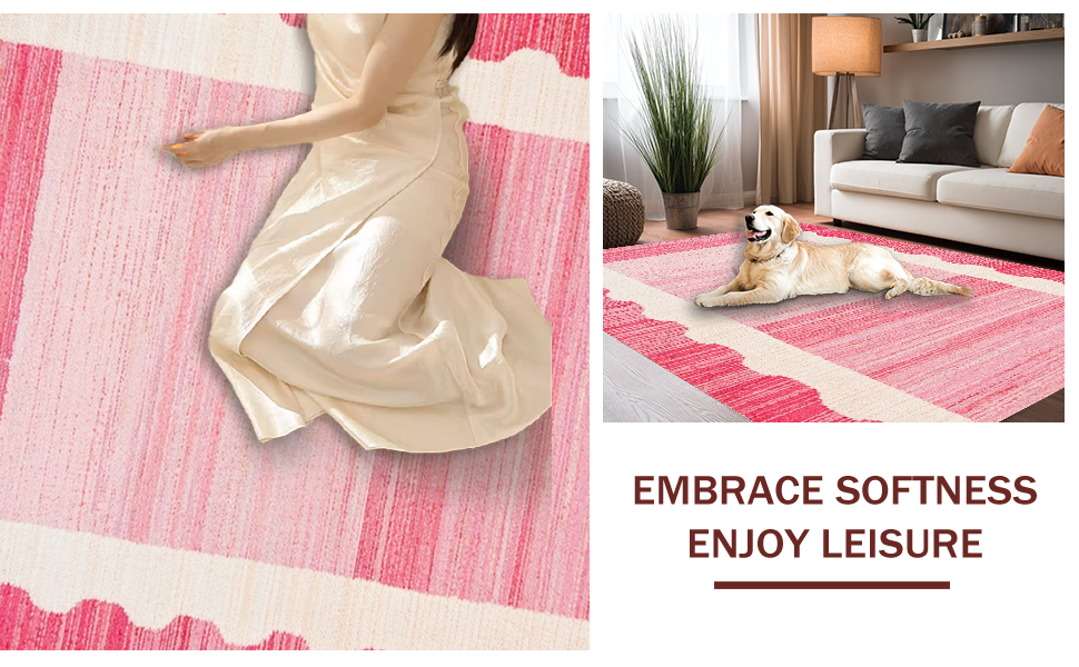 Ultra Soft Area Rug, Non Slip, Stain Resistant, Washable Area Rugs for Living Room, Bedroom, Contemporary Playful Soft Edge Design(Pink) Overview: