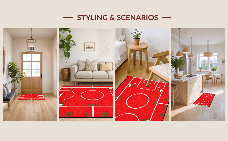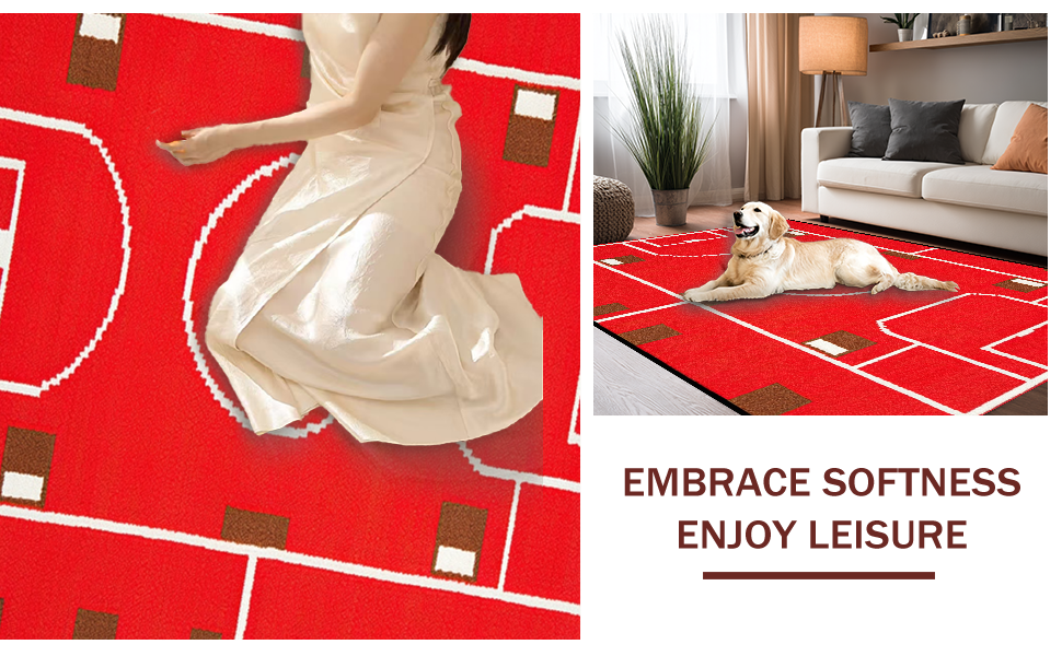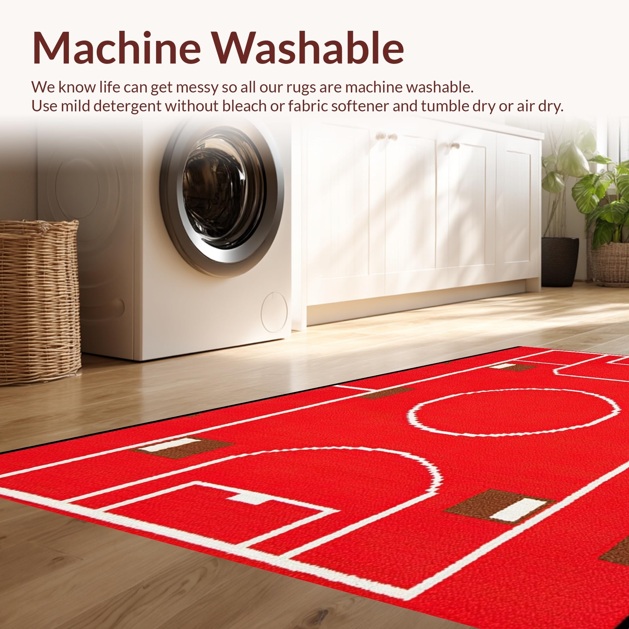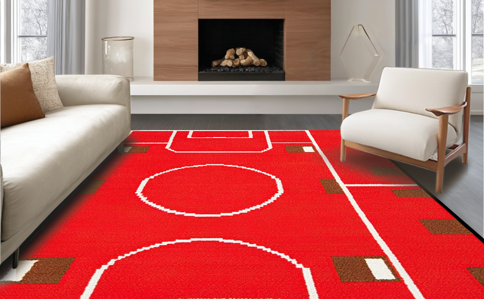 Ultra Soft Area Rug, Non Slip, Stain Resistant, Washable Area Rugs for Living Room, Bedroom, Contemporary Playful Sports Imagery(Red) Overview: