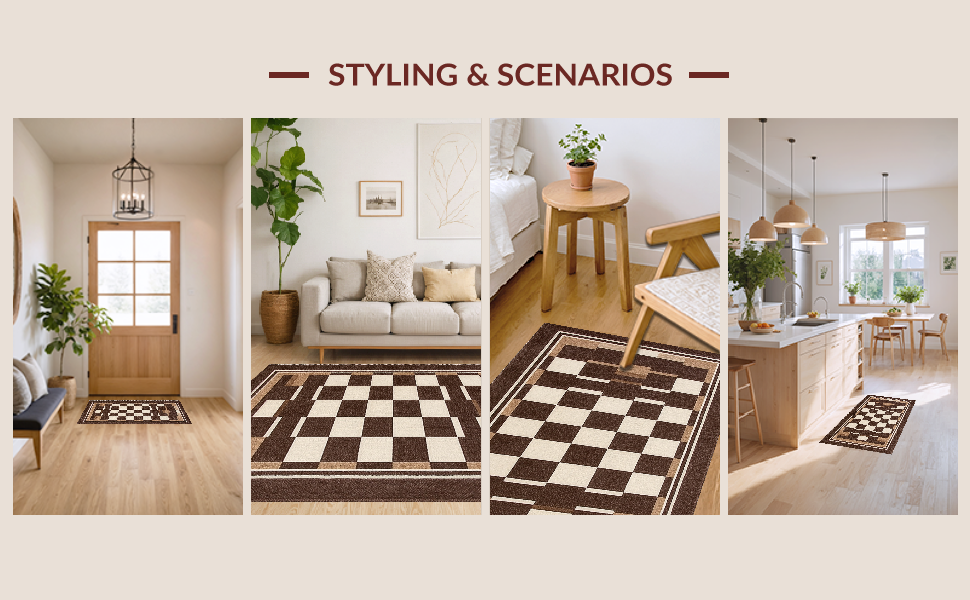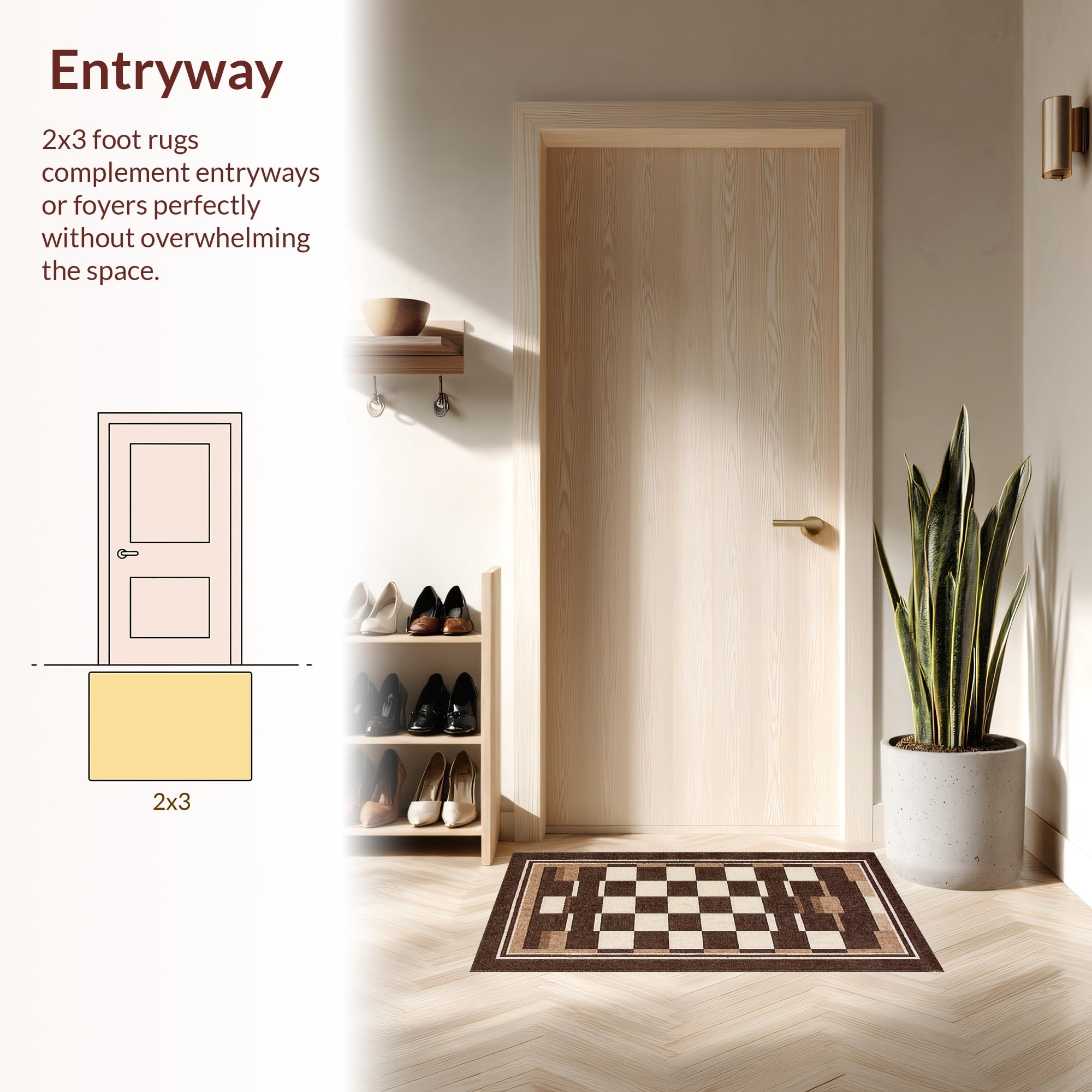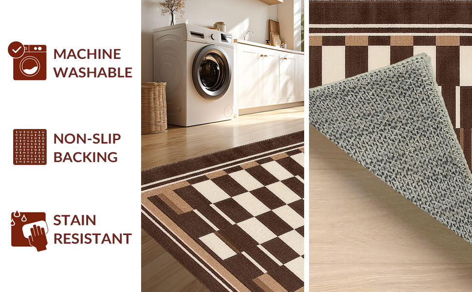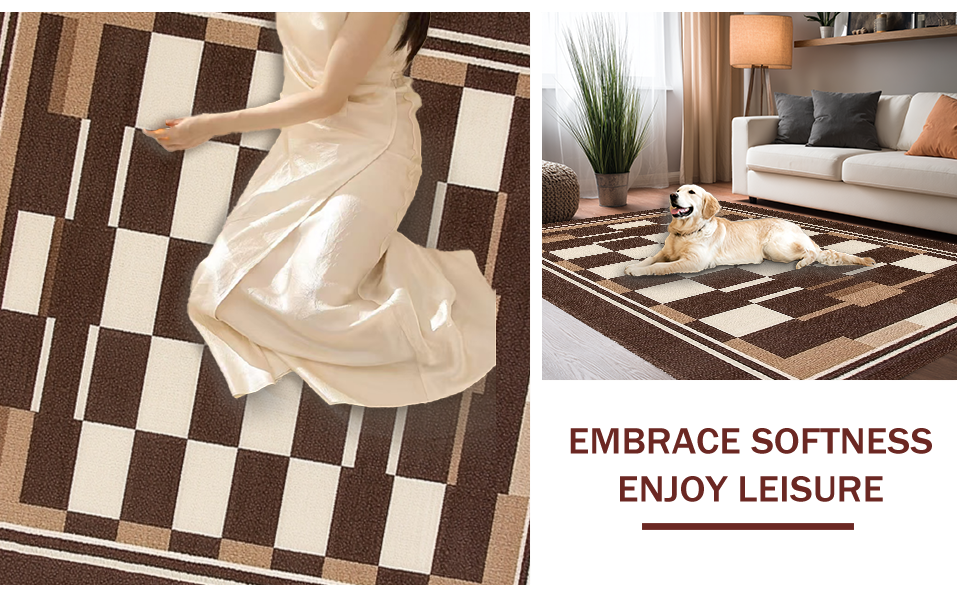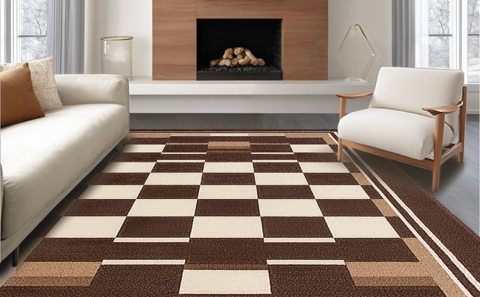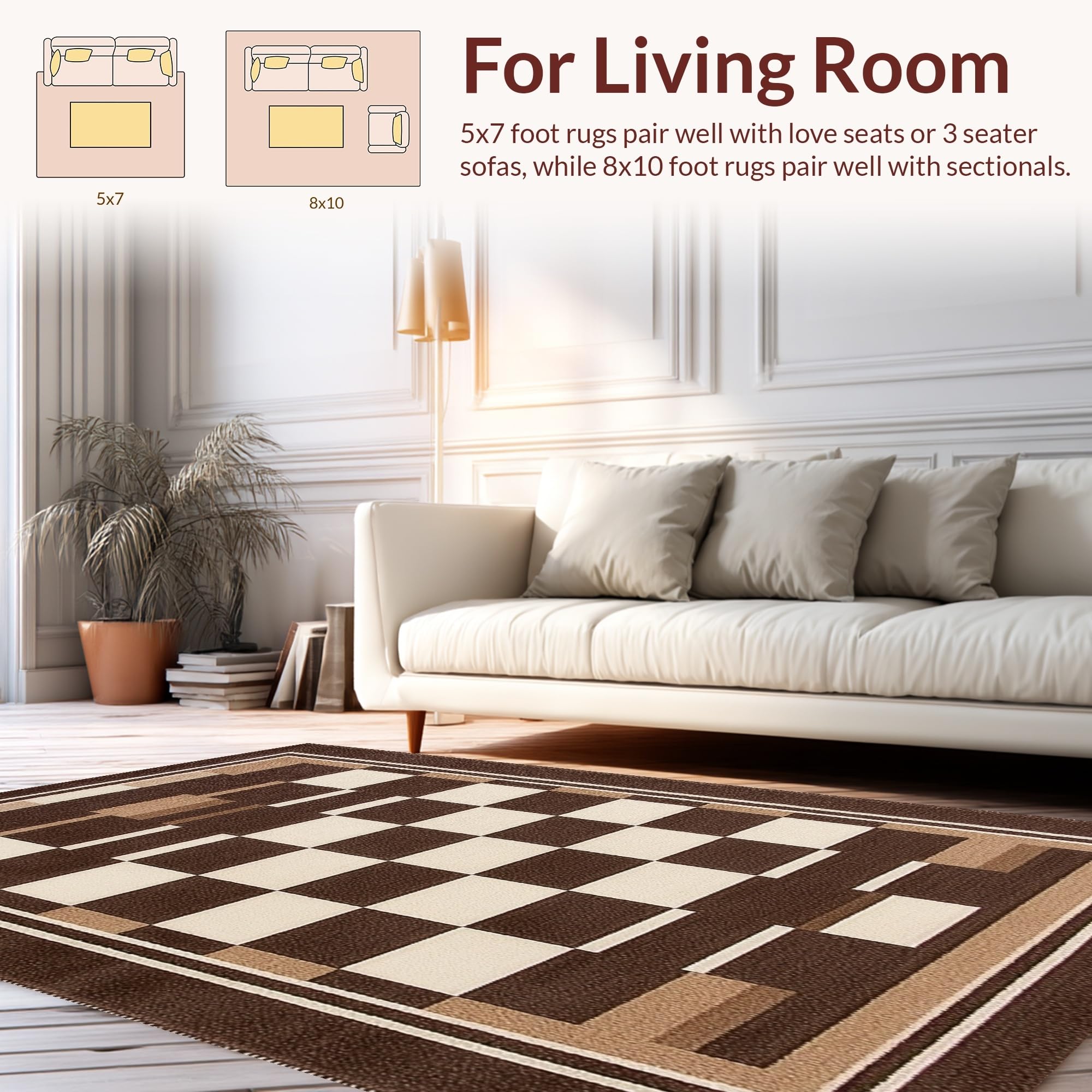 Ultra Soft Area Rug, Non Slip, Stain Resistant, Washable Area Rugs for Living Room, Bedroom, Contemporary Playful Tiled Arrangement(Beige) Overview: