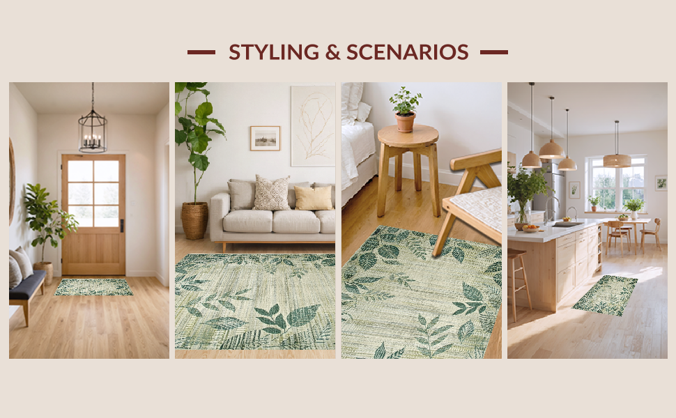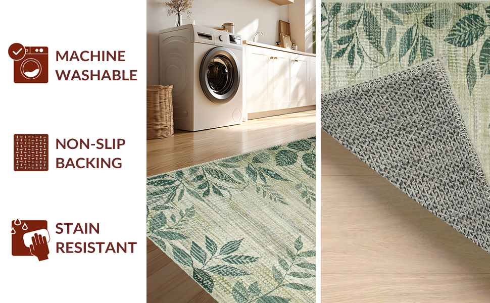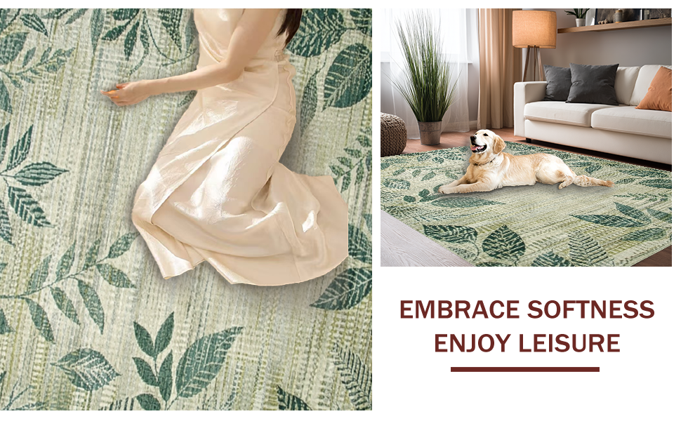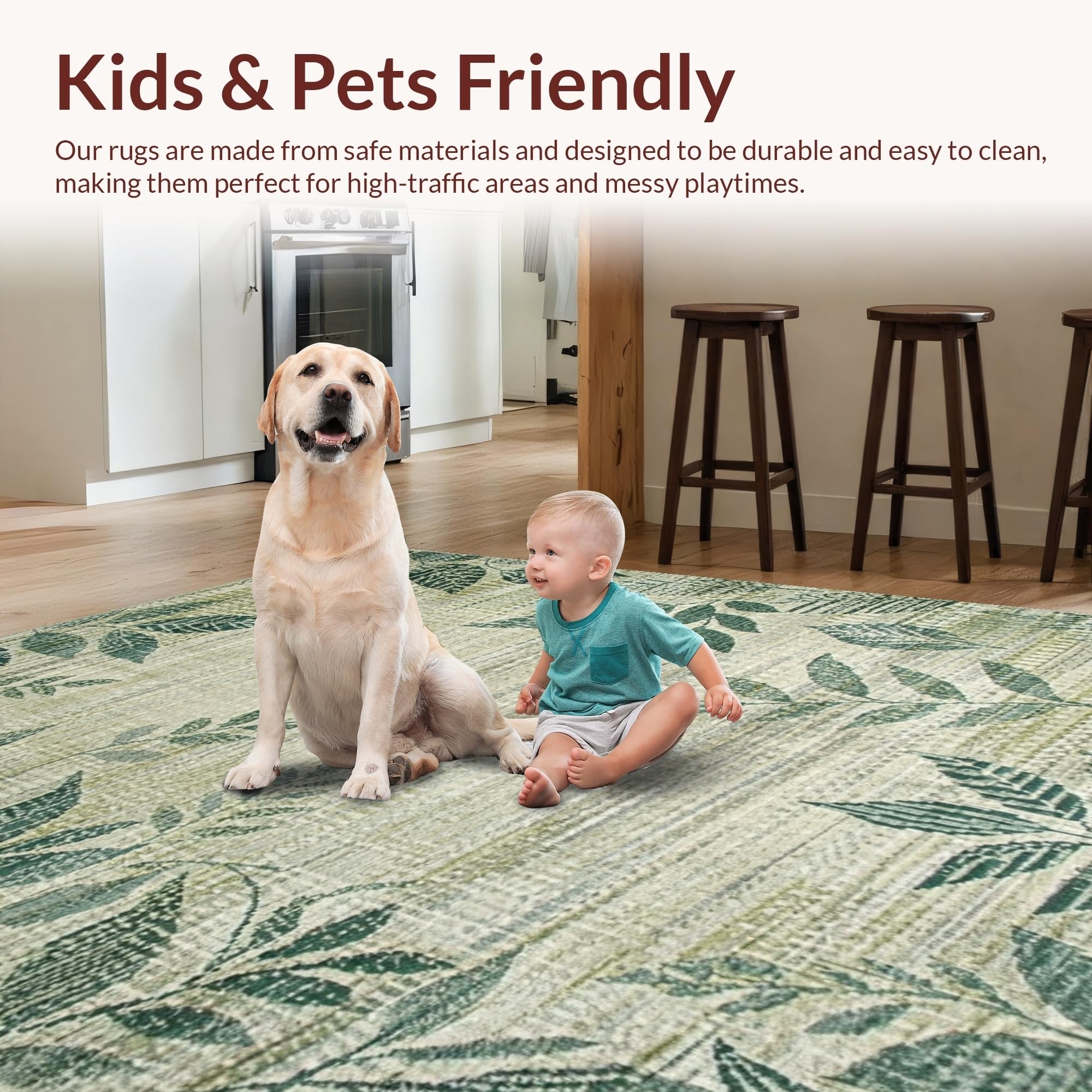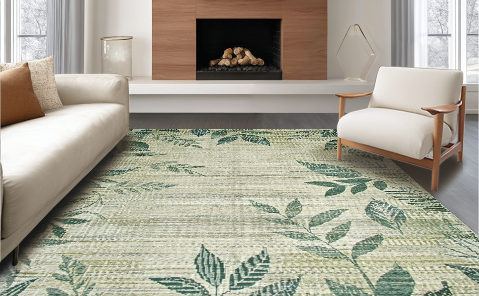 Ultra Soft Area Rug, Non Slip, Stain Resistant, Washable Area Rugs for Living Room, Bedroom, Contemporary Plush Green Vibe(Beige) Overview: