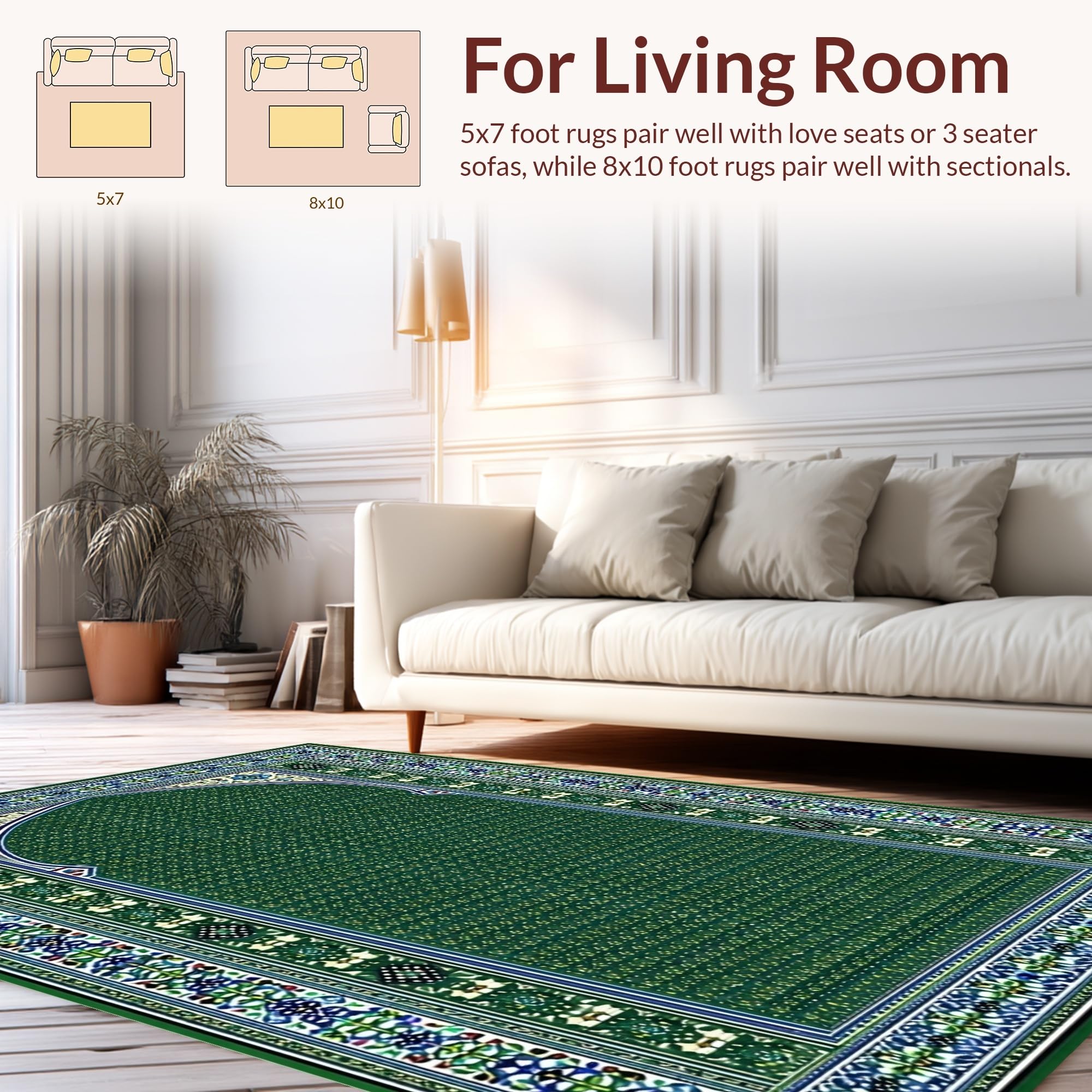 Ultra Soft Area Rug, Non Slip, Stain Resistant, Washable Area Rugs for Living Room, Bedroom, Contemporary Quilted Symmetrical Patterns(Green) Overview: