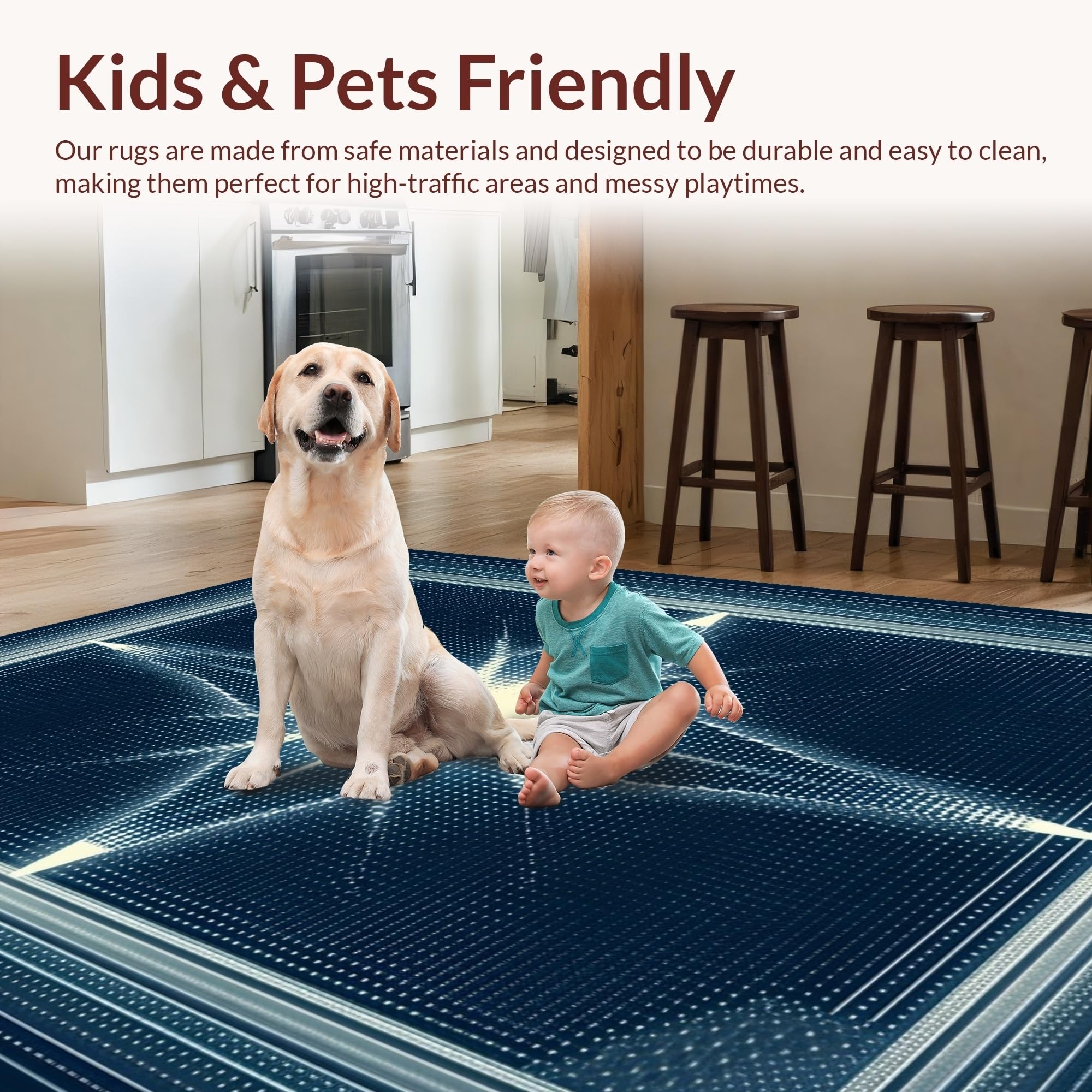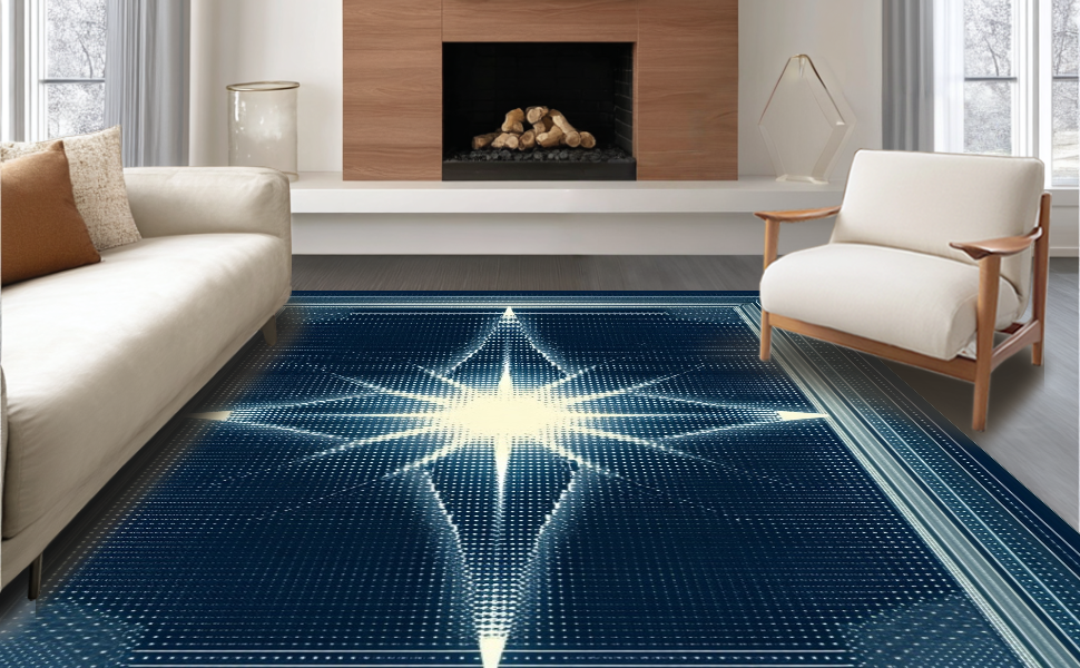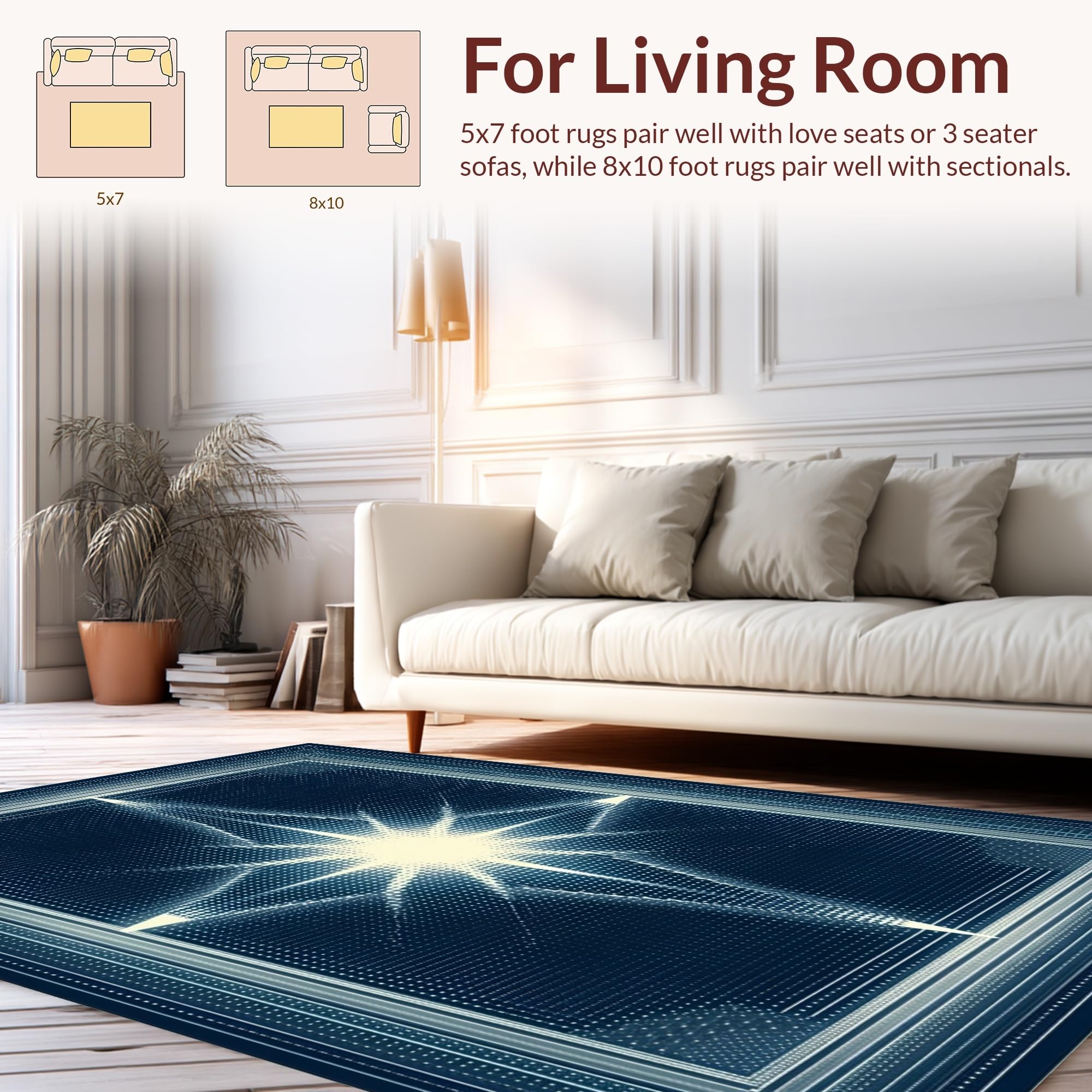 Ultra Soft Area Rug, Non Slip, Stain Resistant, Washable Area Rugs for Living Room, Bedroom, Contemporary Round Patterned Aesthetic(Blue) Overview: