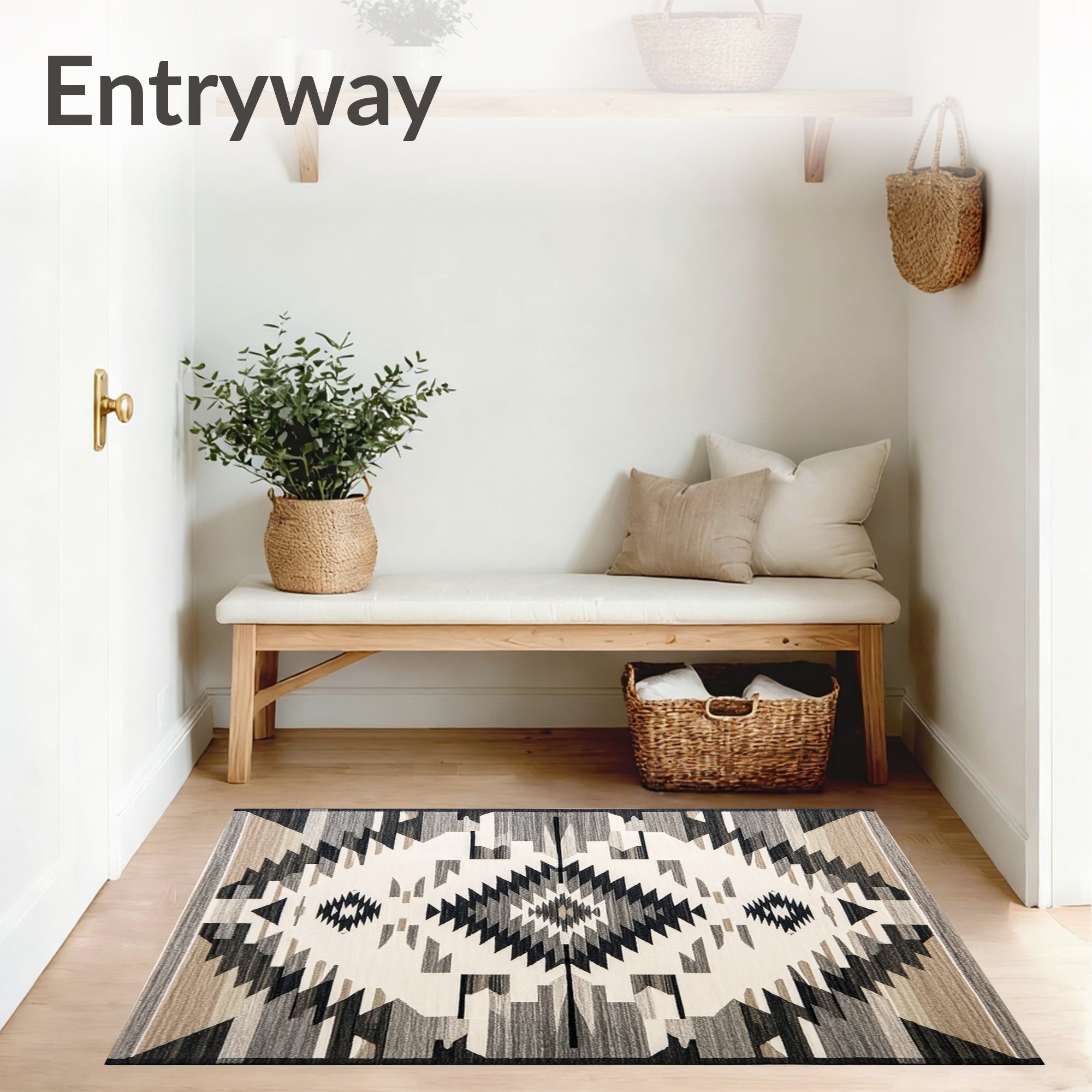 Ultra Soft Area Rug, Non Slip, Stain Resistant, Washable Area Rugs for Living Room, Bedroom, Contemporary Round With Bold Southwestern Inspired Geometric Weaves(Gray) Overview: