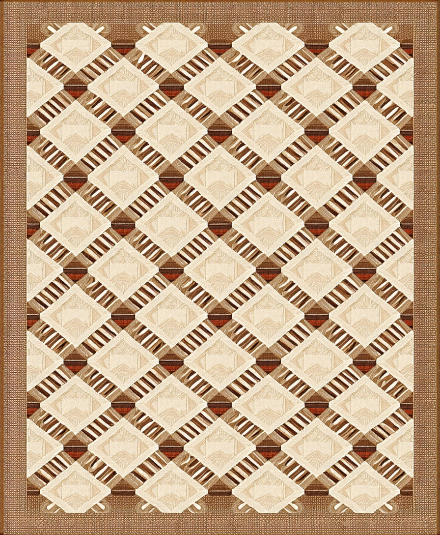 Contemporary Round with Geometric Diamond Motifs(Beige)