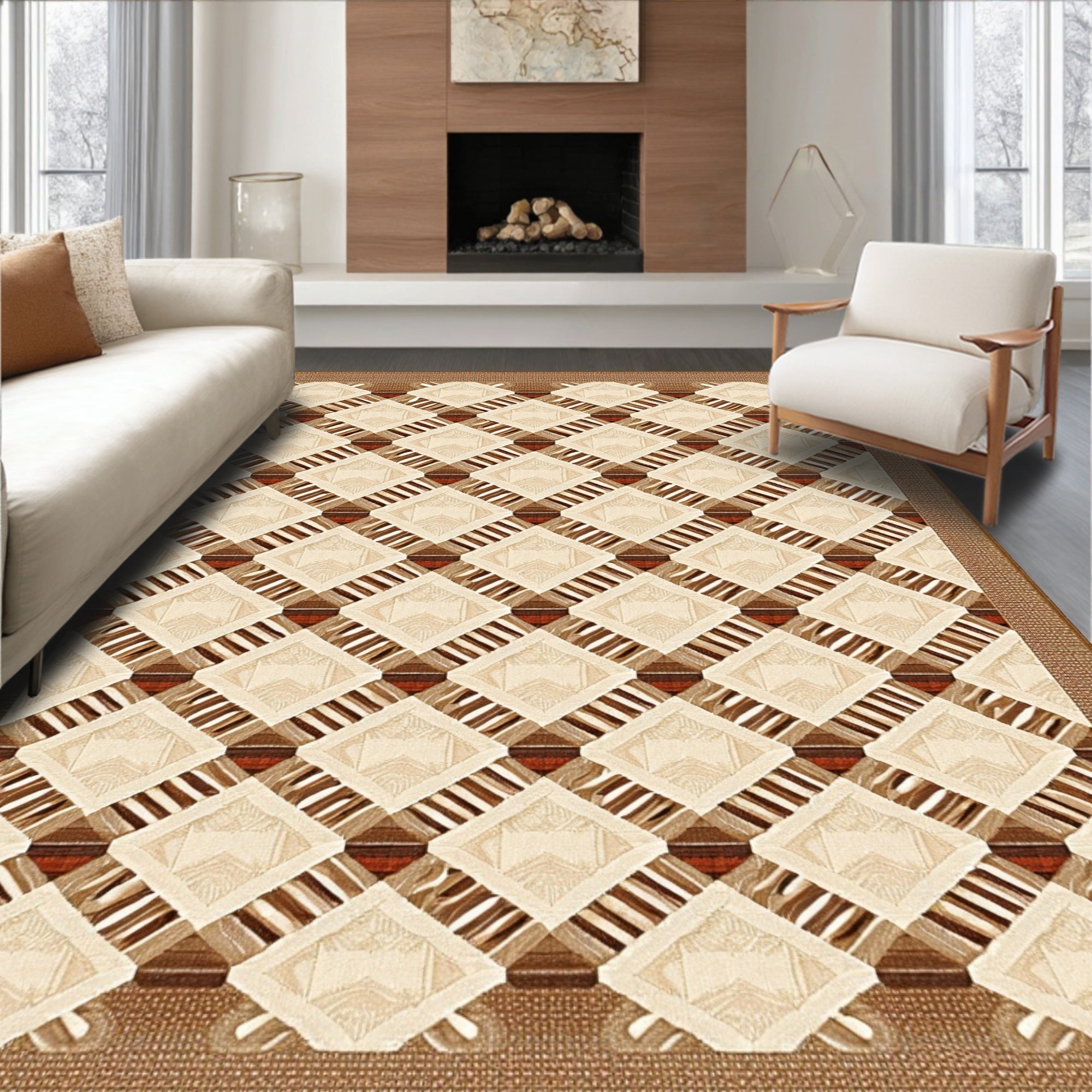 Ultra Soft Area Rug, Non Slip, Stain Resistant, Washable Area Rugs for Living Room, Bedroom, Contemporary Round with Geometric Diamond Motifs(Beige) Overview:
