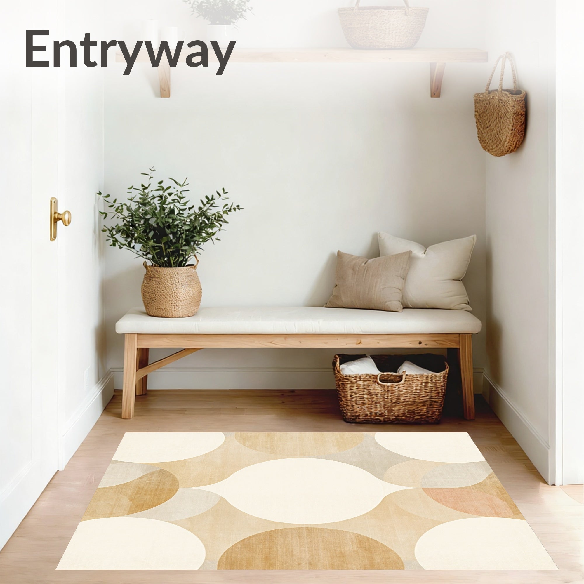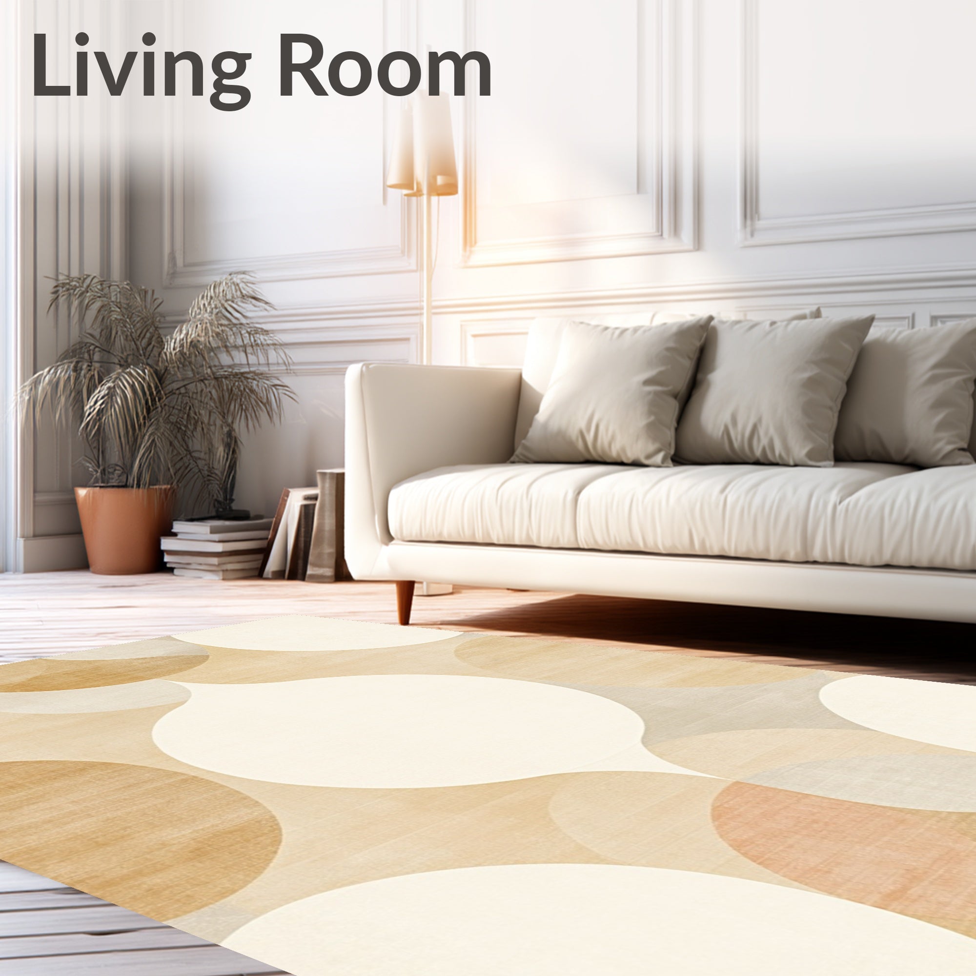 Ultra Soft Area Rug, Non Slip, Stain Resistant, Washable Area Rugs for Living Room, Bedroom, Contemporary Round With Interlaced Geometric Rings In Warm Beige Shades(Beige) Overview: