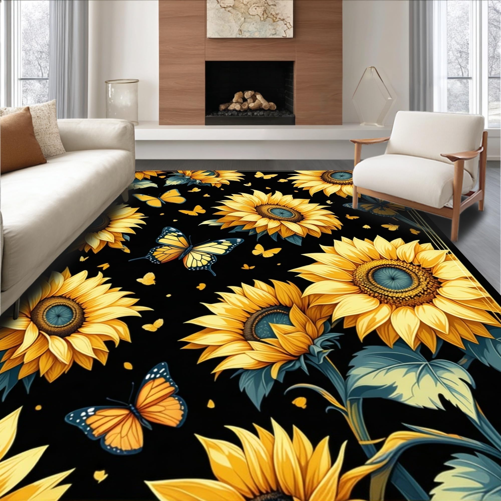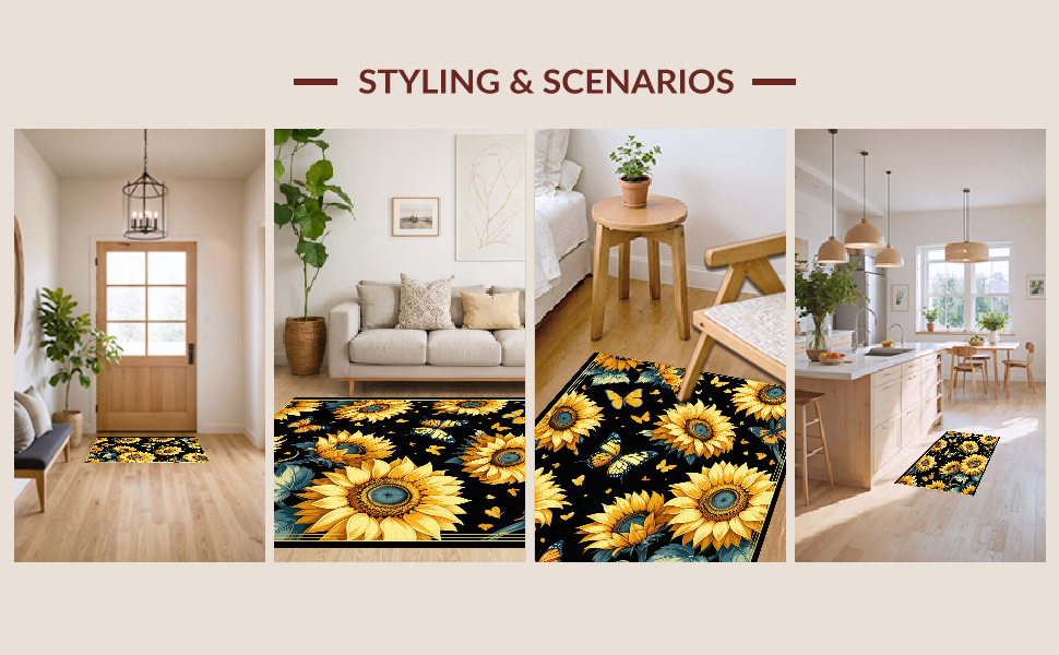 Ultra Soft Area Rug, Non Slip, Stain Resistant, Washable Area Rugs for Living Room, Bedroom, Contemporary Rustic Floral Fusion(Yellow) Overview: