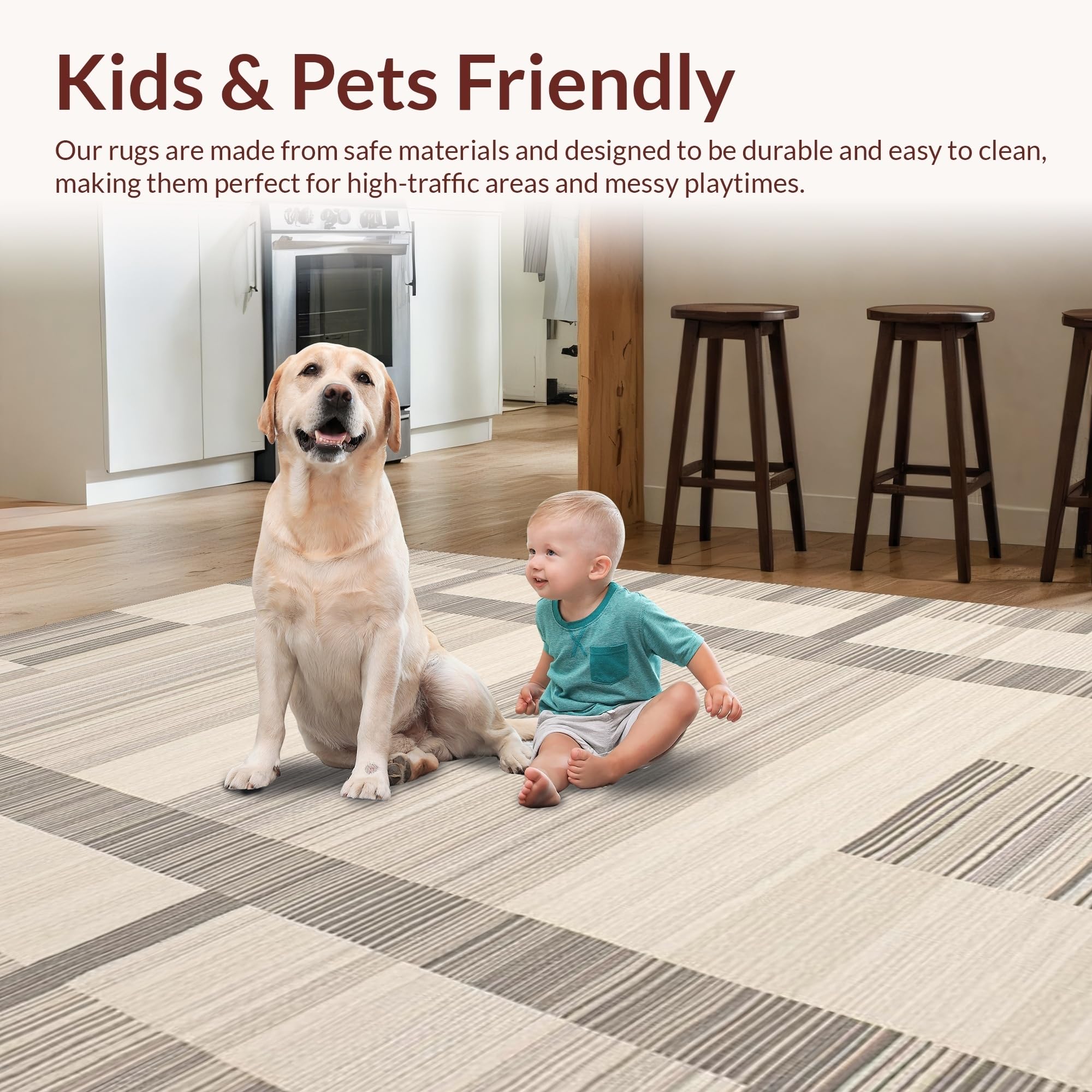 Ultra Soft Area Rug, Non Slip, Stain Resistant, Washable Area Rugs for Living Room, Bedroom, Contemporary Sandstone Abstract Geometry(Beige) Overview: