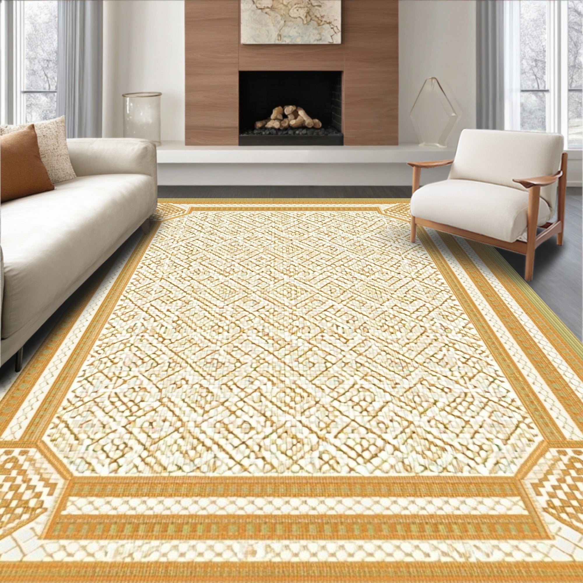 Ultra Soft Area Rug, Non Slip, Stain Resistant, Washable Area Rugs for Living Room, Bedroom, Contemporary Seagrass Motif Area with Dual Tone Basket Borders(Beige) Overview: