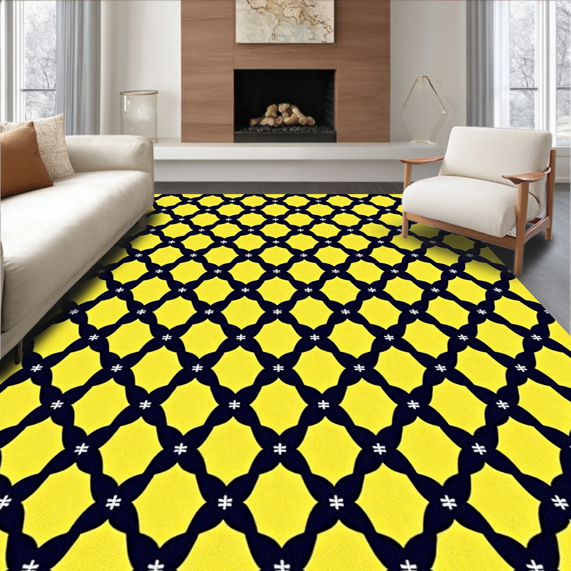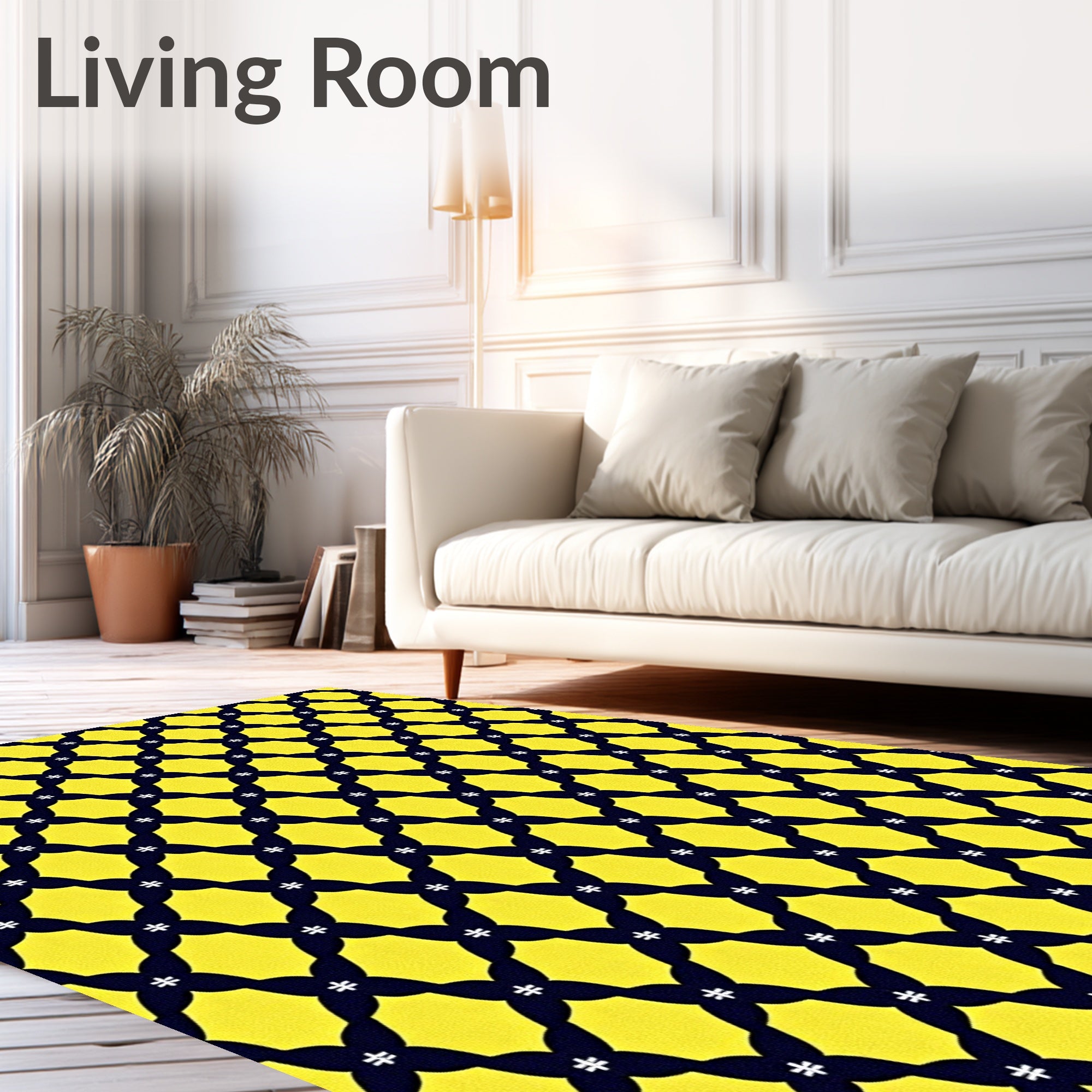 Ultra Soft Area Rug, Non Slip, Stain Resistant, Washable Area Rugs for Living Room, Bedroom, Contemporary Shag with Abstract Cross and Interlocking Design(Yellow) Overview: