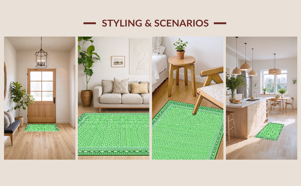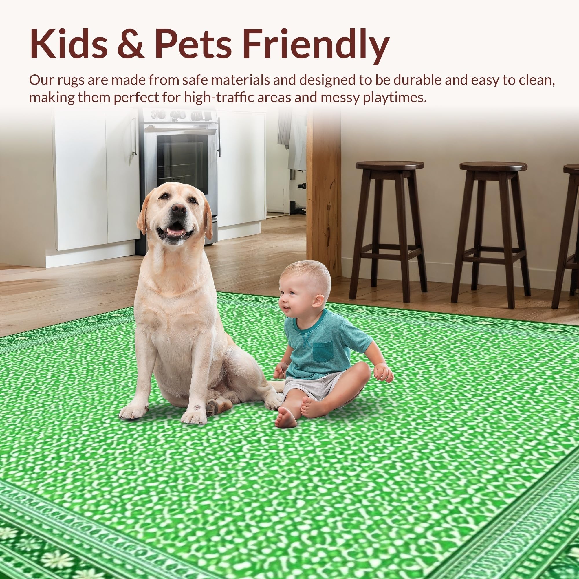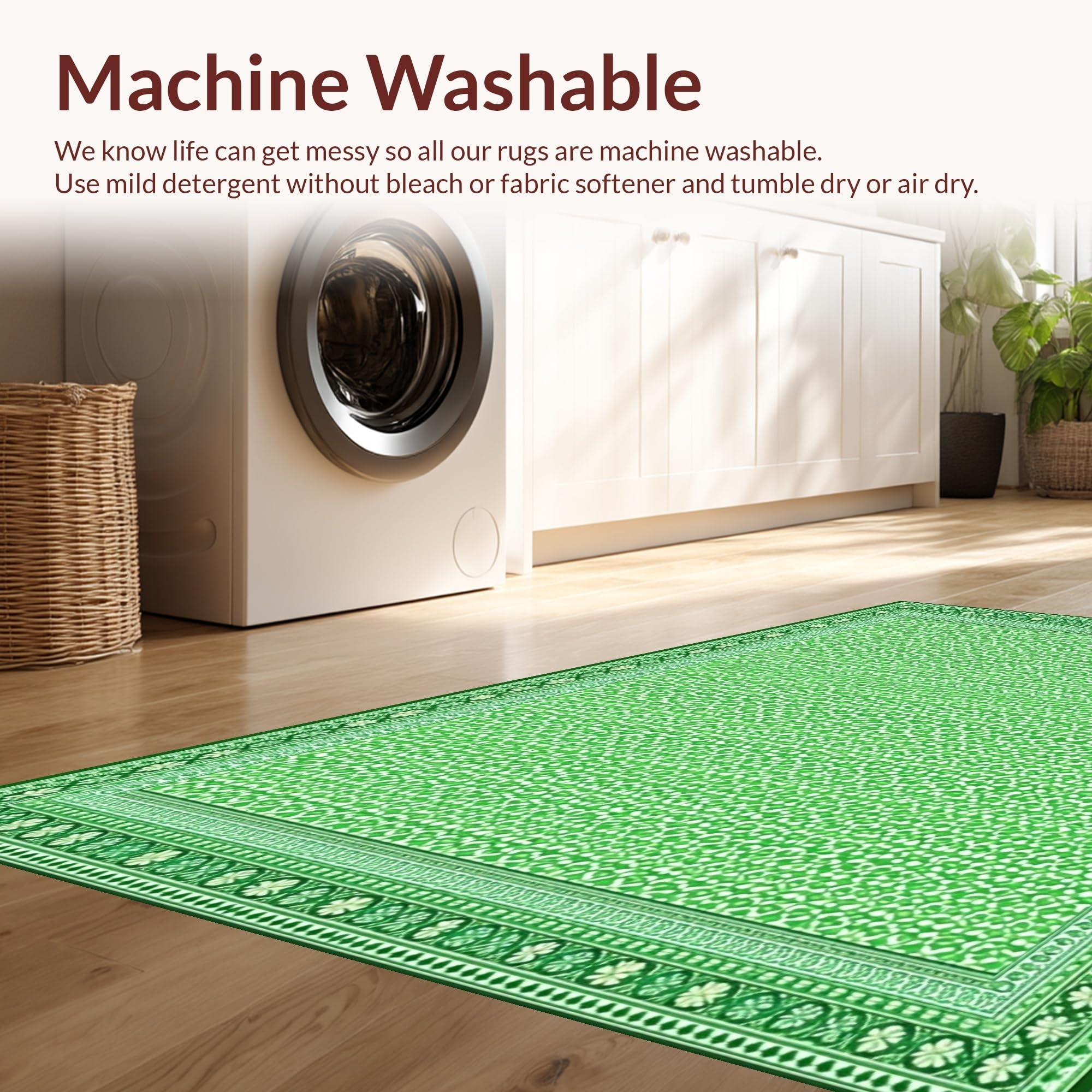 Ultra Soft Area Rug, Non Slip, Stain Resistant, Washable Area Rugs for Living Room, Bedroom, Contemporary Shamrock Visual Appeal(Green) Overview: