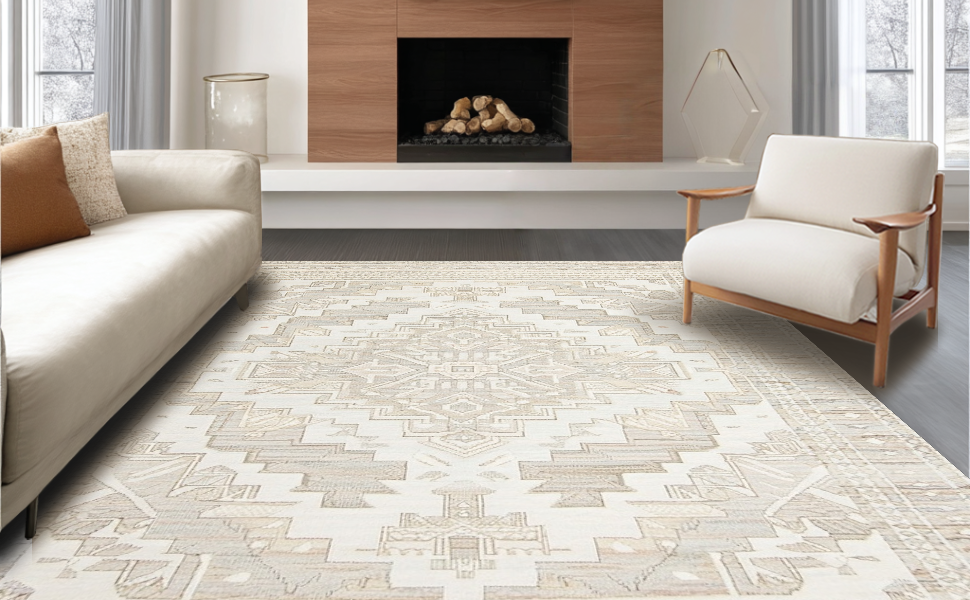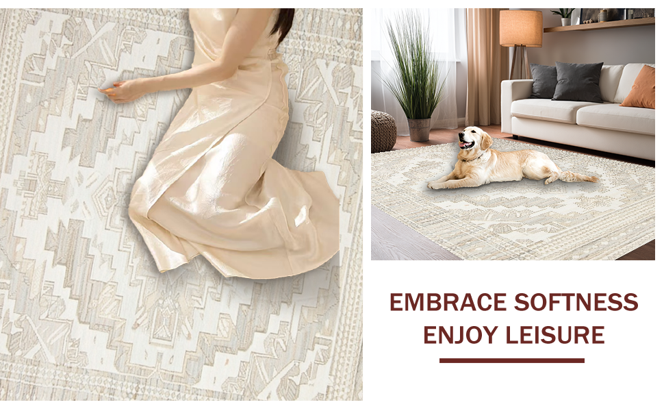 Ultra Soft Area Rug, Non Slip, Stain Resistant, Washable Area Rugs for Living Room, Bedroom, Contemporary Simple Textural Layers(Beige) Overview: