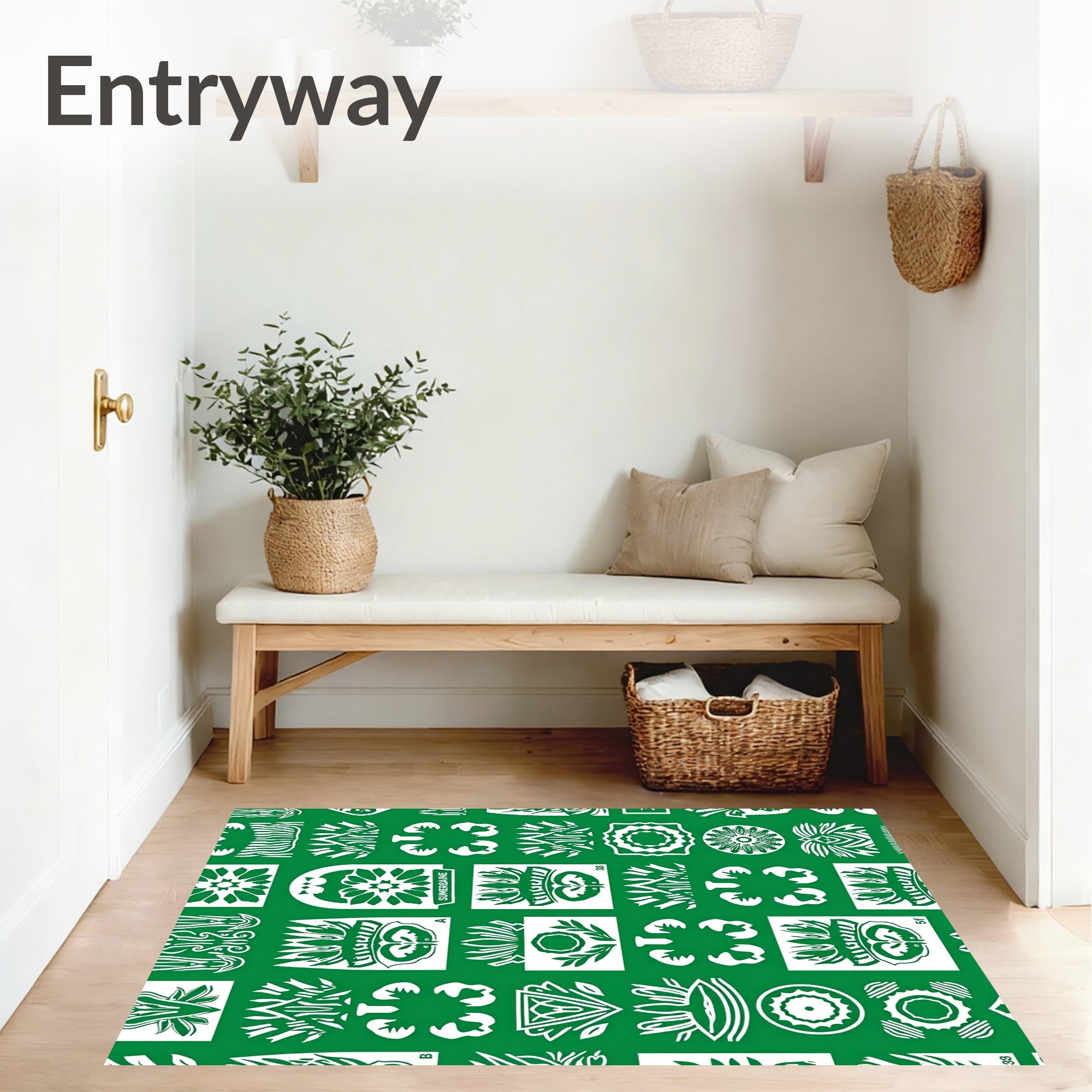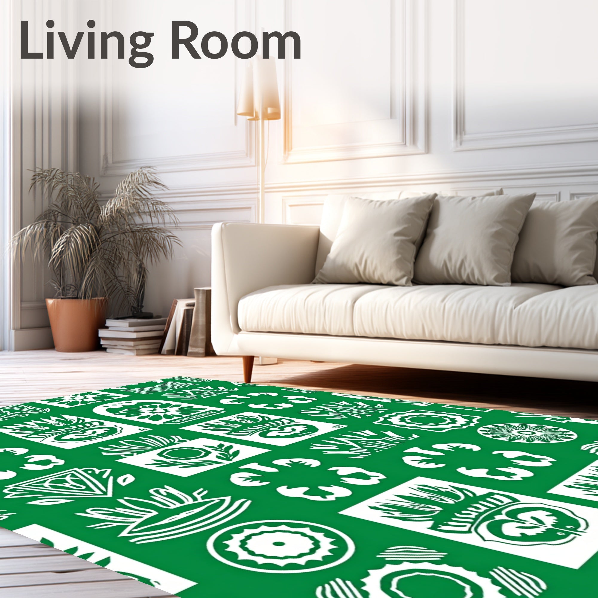 Ultra Soft Area Rug, Non Slip, Stain Resistant, Washable Area Rugs for Living Room, Bedroom, Contemporary Soccer Emblem with Stylized Interlocking Grass Motifs(Green) Overview: