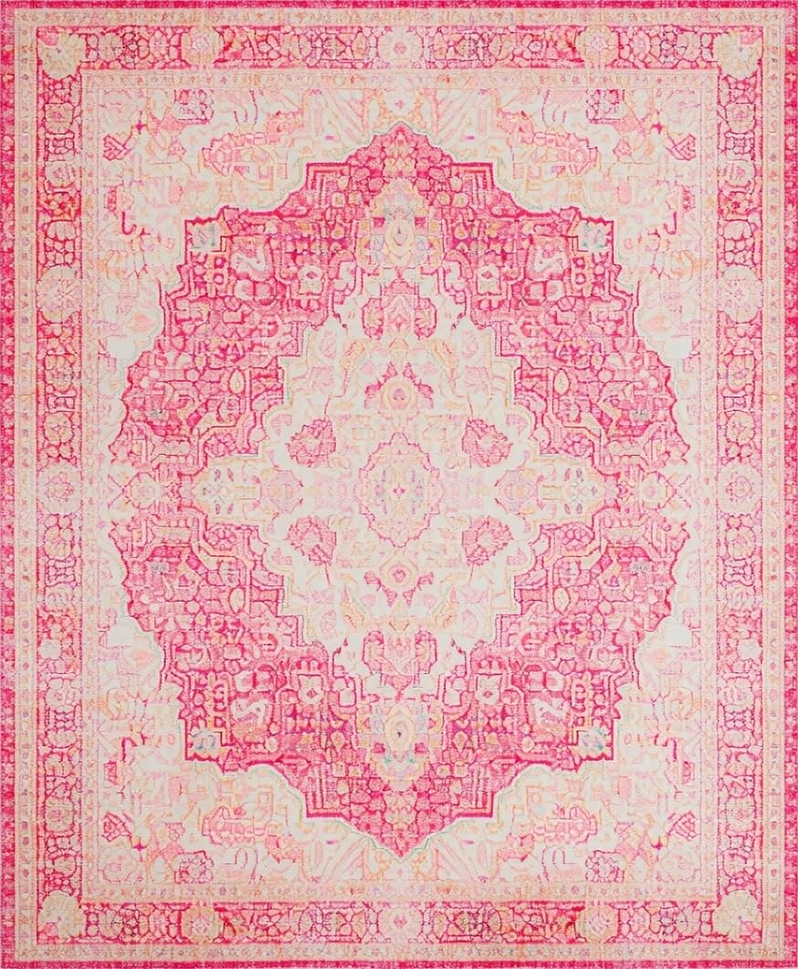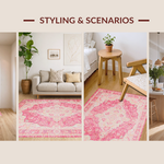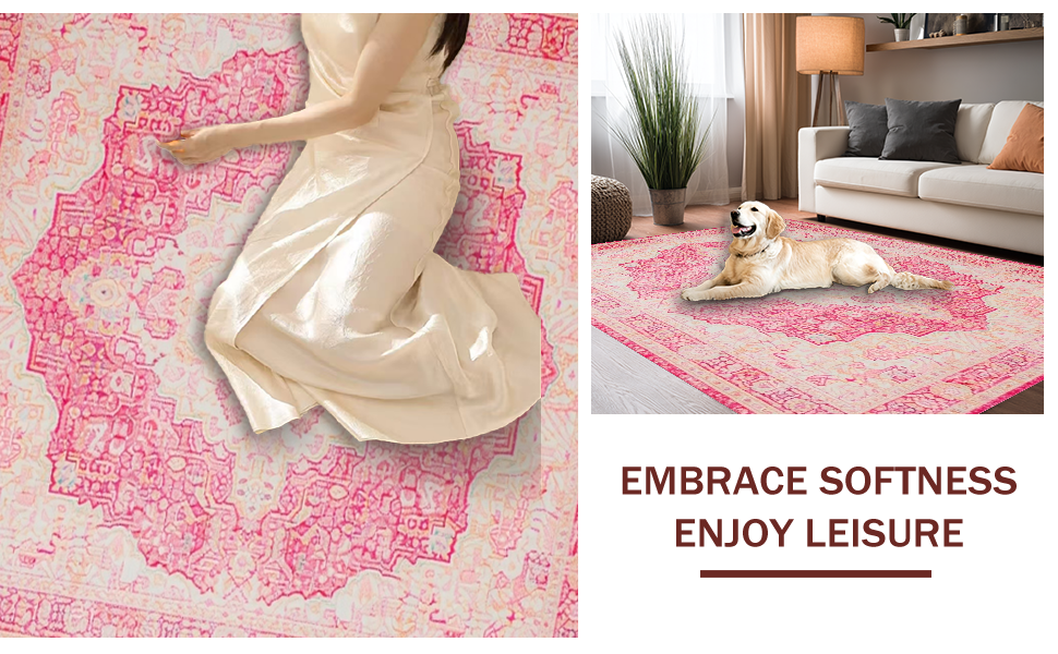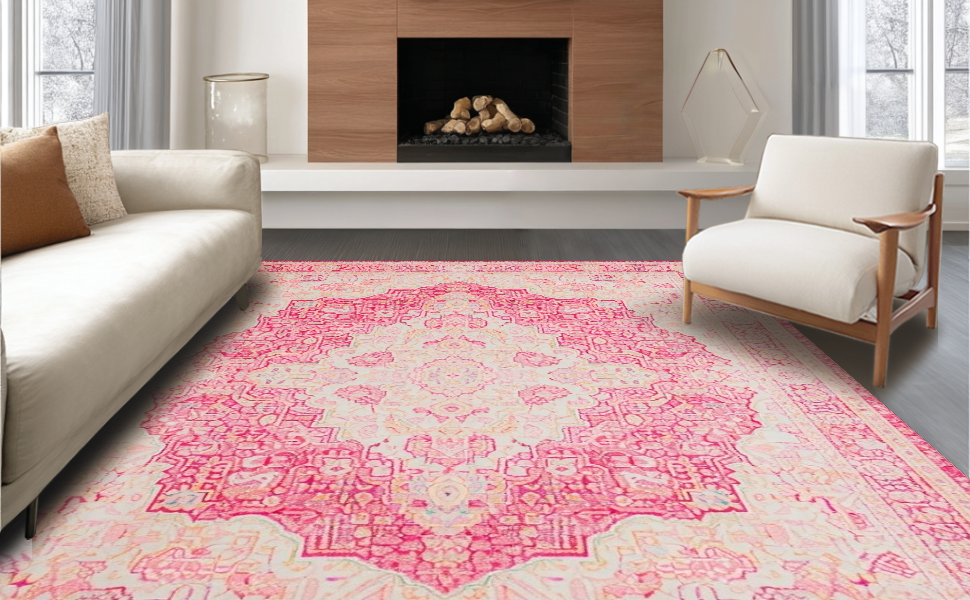 Ultra Soft Area Rug, Non Slip, Stain Resistant, Washable Area Rugs for Living Room, Bedroom, Contemporary Soft Beige Wave Motif(Pink) Overview: