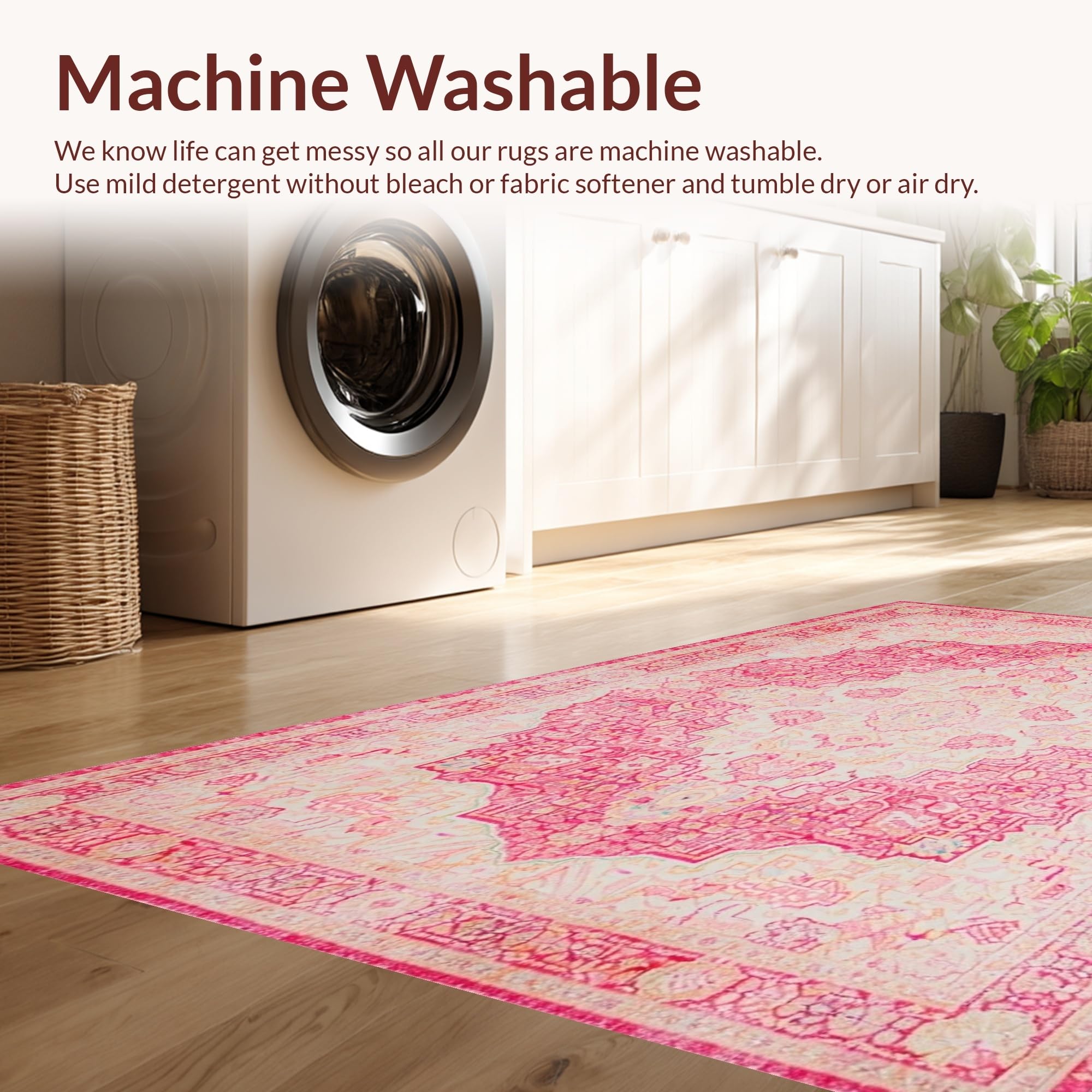 - Machine Washable: Our rugs can be easily thrown in the wash machine.