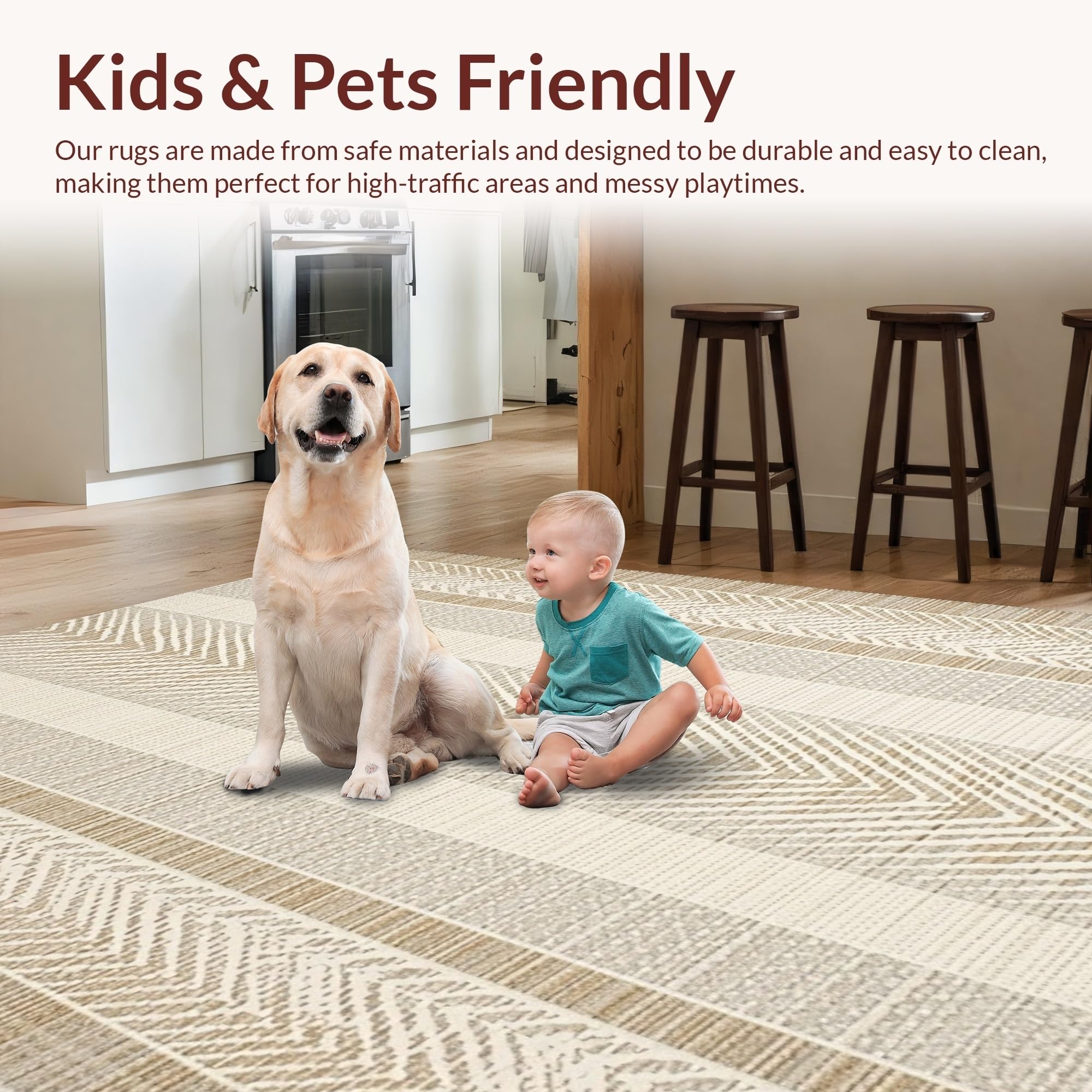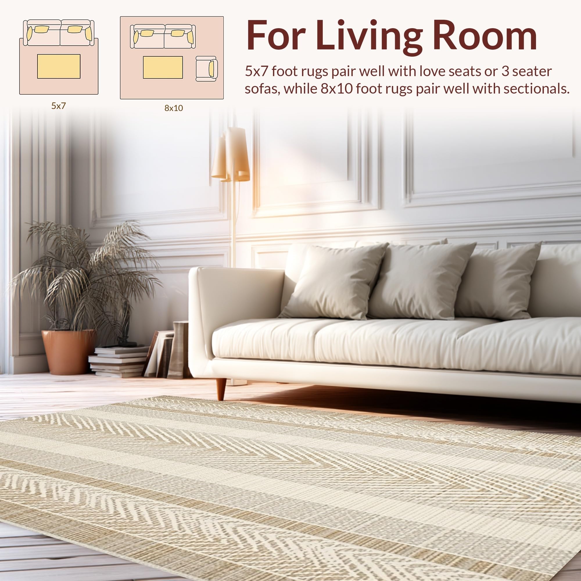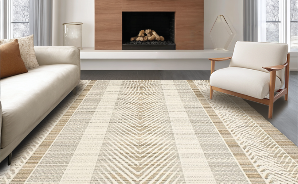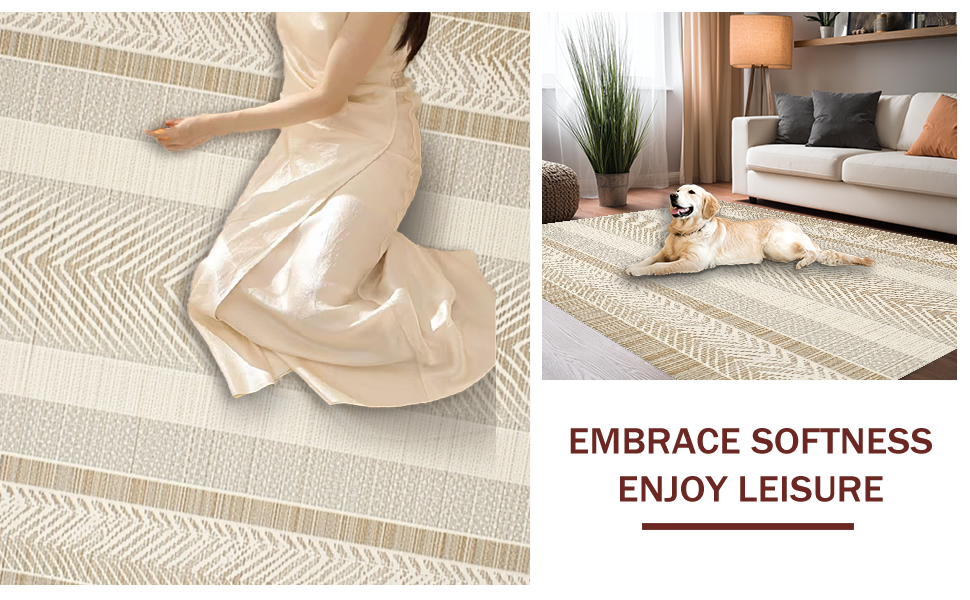 Ultra Soft Area Rug, Non Slip, Stain Resistant, Washable Area Rugs for Living Room, Bedroom, Contemporary Soft Brown Palette(Beige) Overview:
