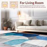 Ultra Soft Area Rug, Non Slip, Stain Resistant, Washable Area Rugs for Living Room, Bedroom, Contemporary Soft Circular Aesthetic(Blue) Overview: