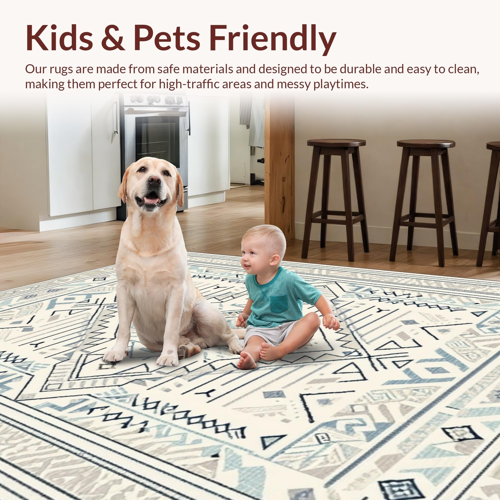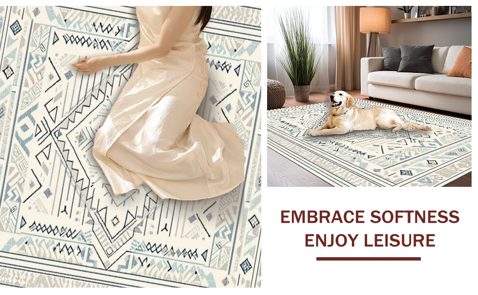 Ultra Soft Area Rug, Non Slip, Stain Resistant, Washable Area Rugs for Living Room, Bedroom, Contemporary Soft Cream Patterns(Beige) Overview: