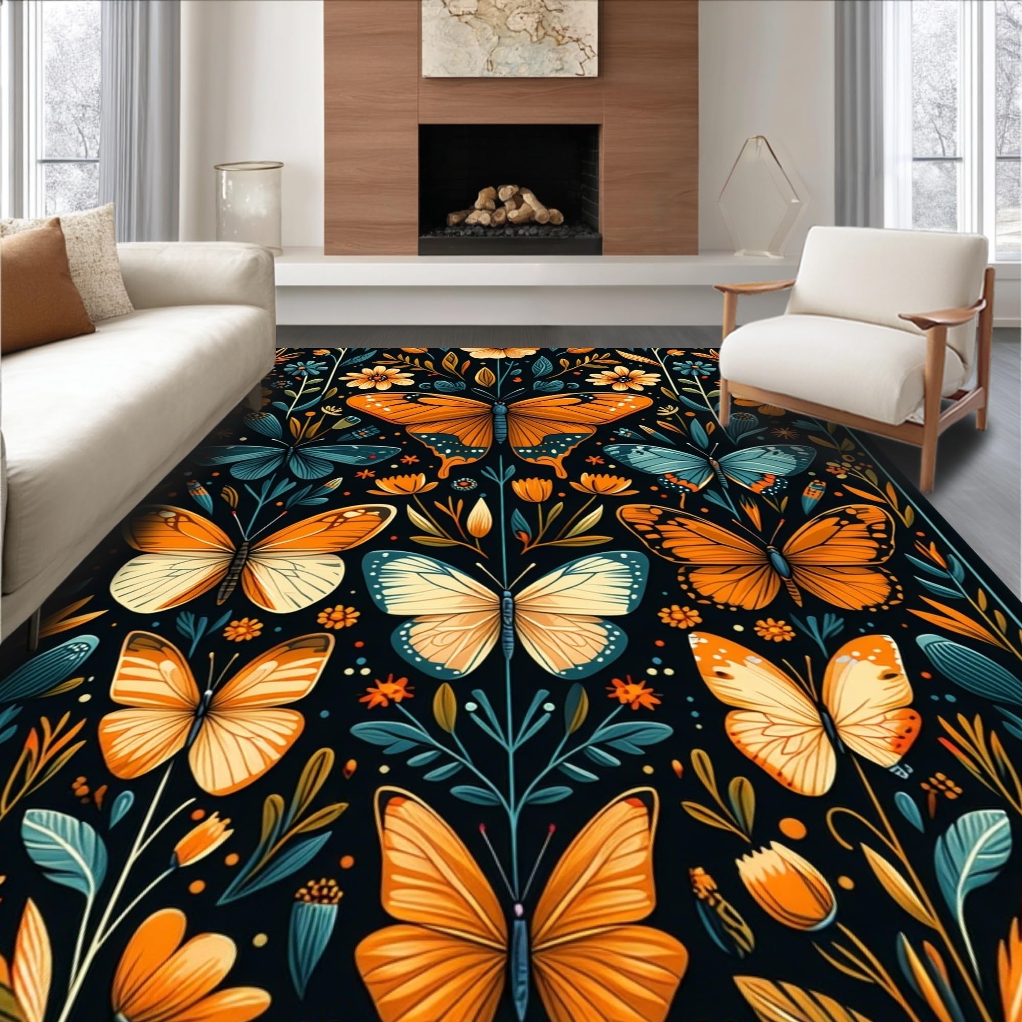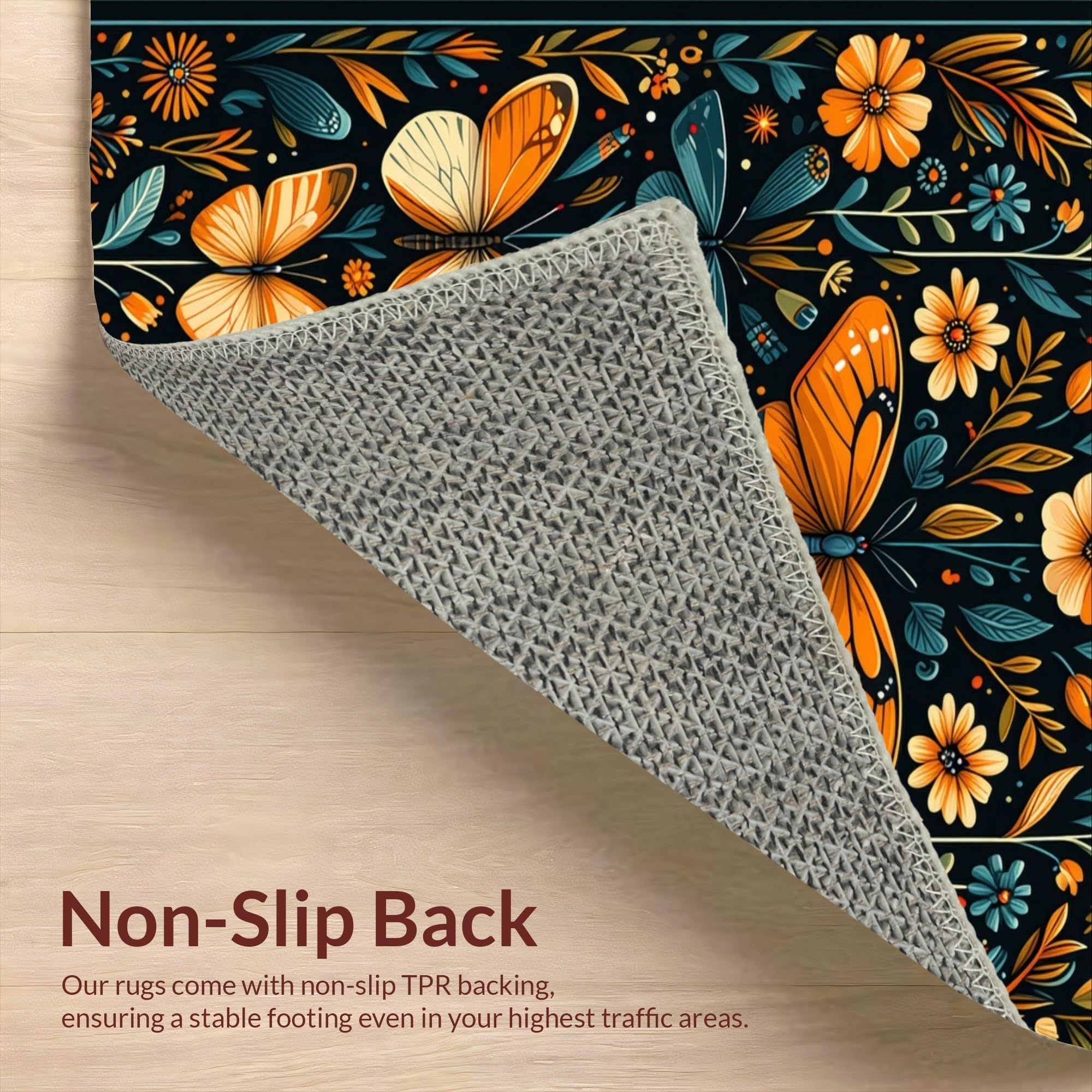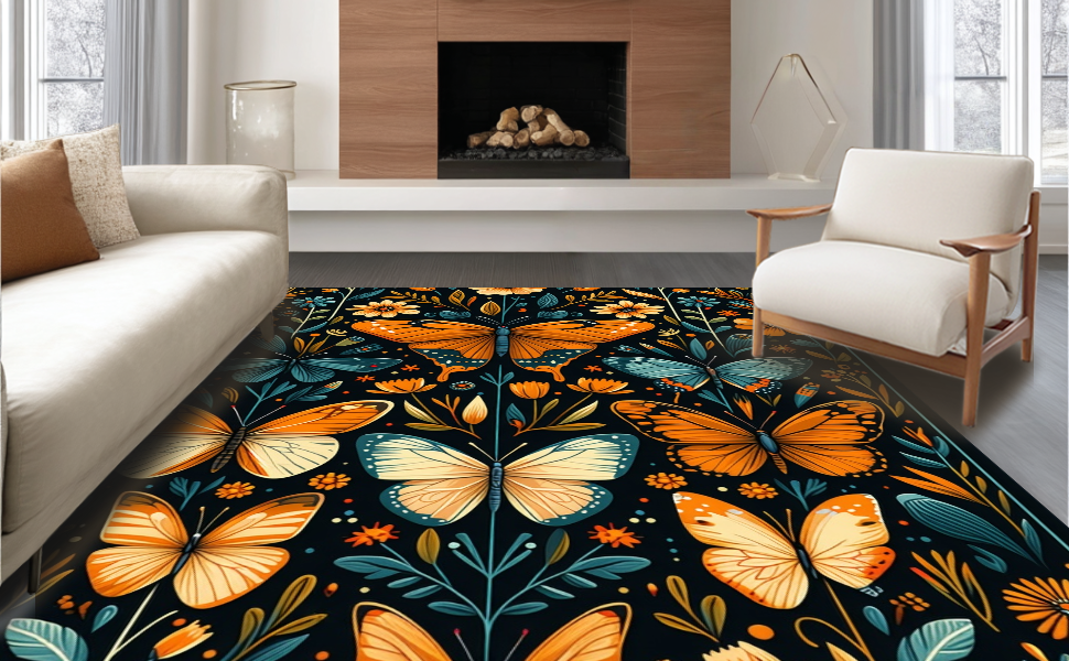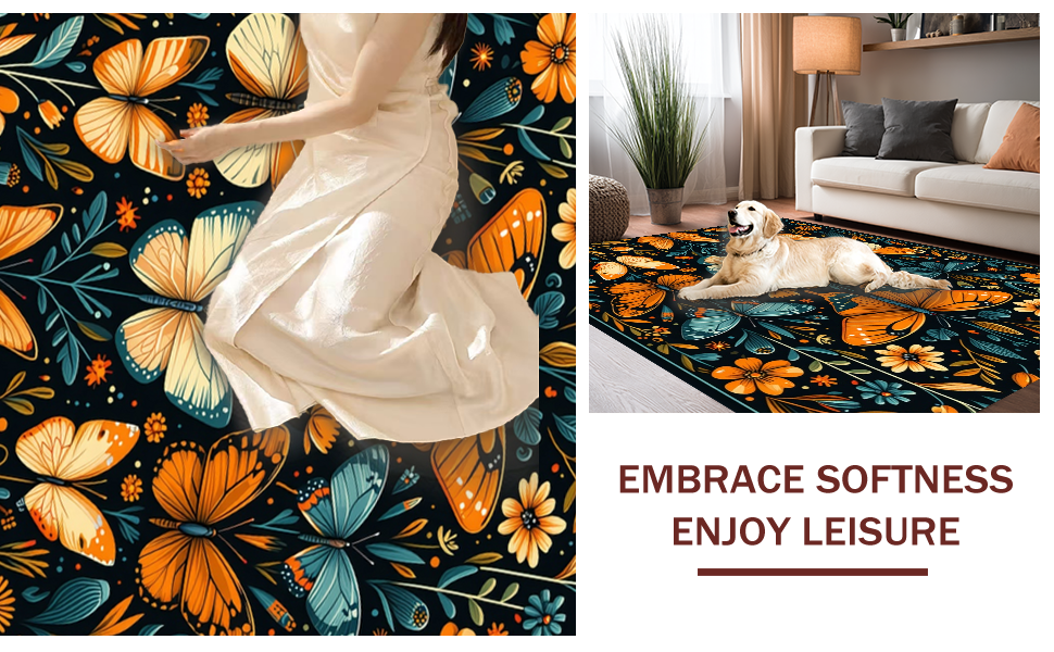 Ultra Soft Area Rug, Non Slip, Stain Resistant, Washable Area Rugs for Living Room, Bedroom, Contemporary Soft Floral Patterns(Black) Overview:
