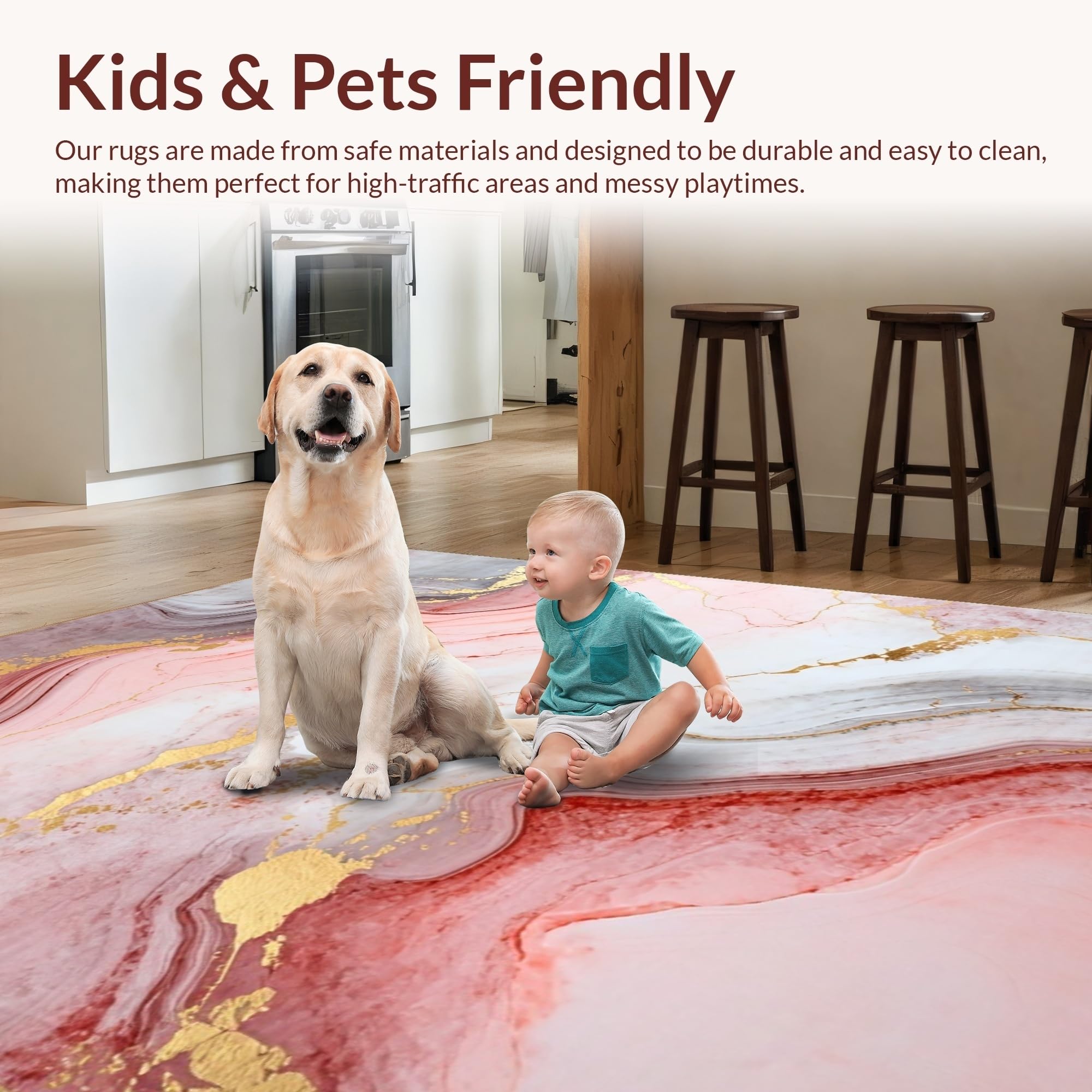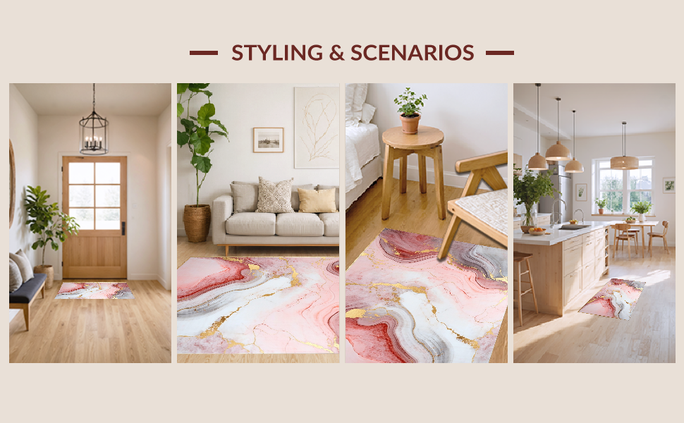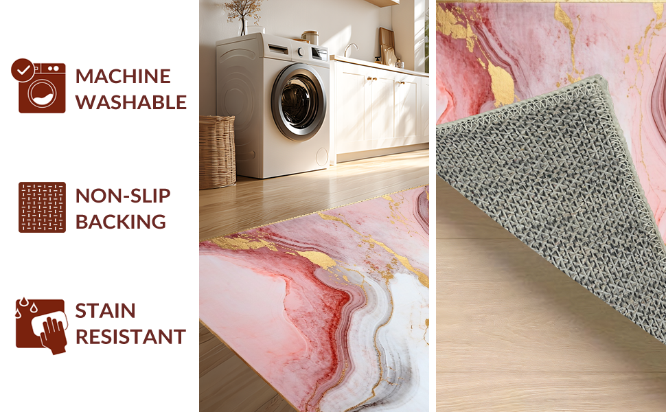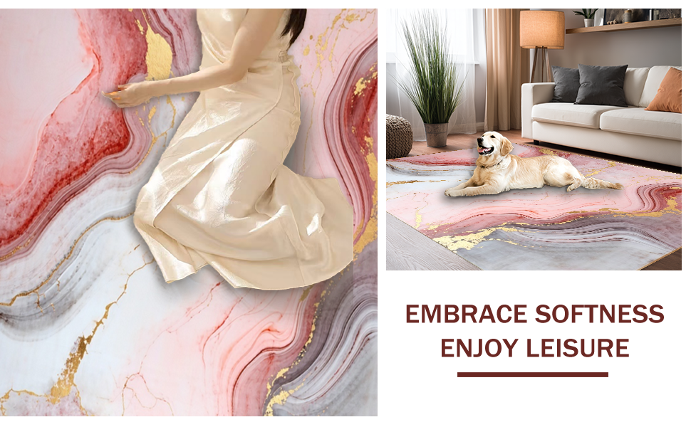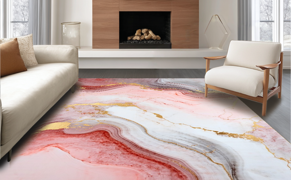 Ultra Soft Area Rug, Non Slip, Stain Resistant, Washable Area Rugs for Living Room, Bedroom, Contemporary Soft Marble Fusion(Pink) Overview: